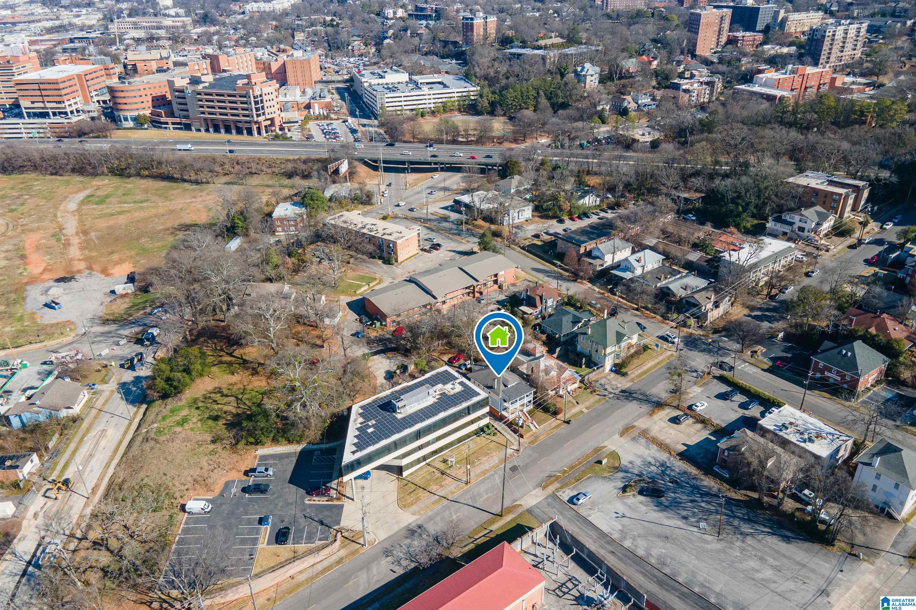 Two-story office building in downtown Birmingham's Southside area.