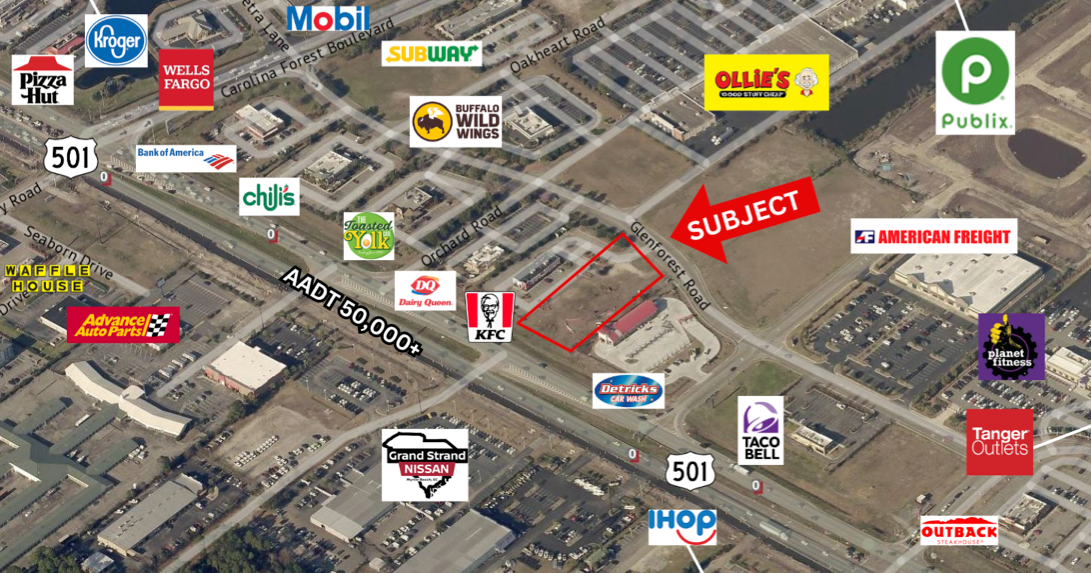 Development-ready outparcel with frontage on Highway 501 and Glenforest Road.