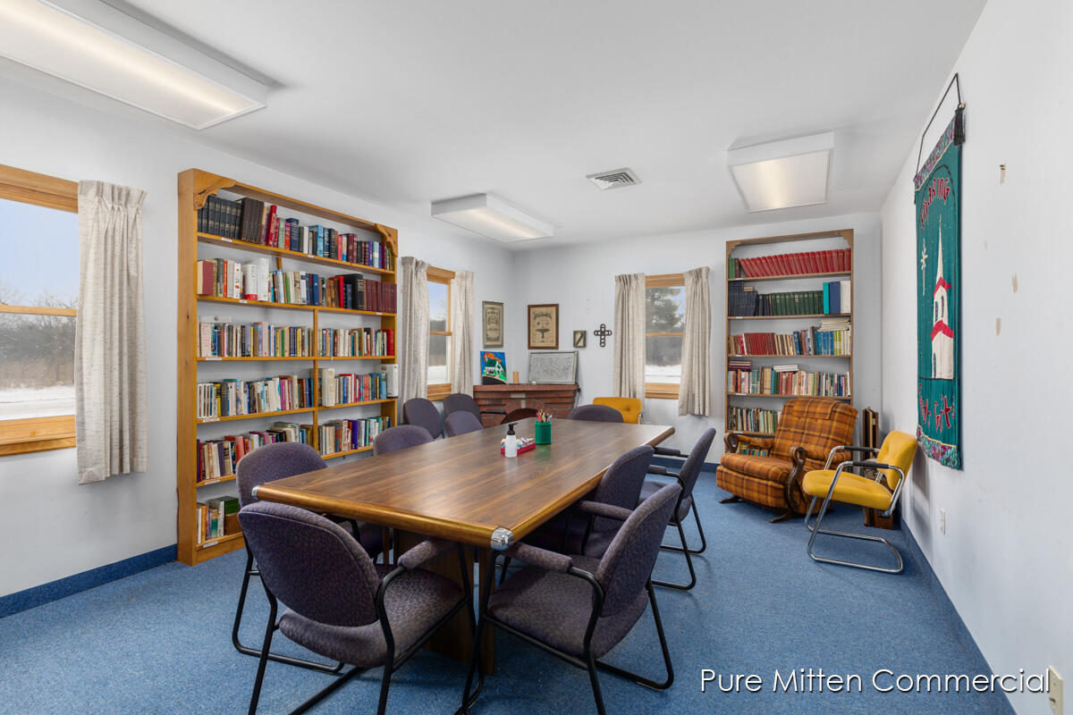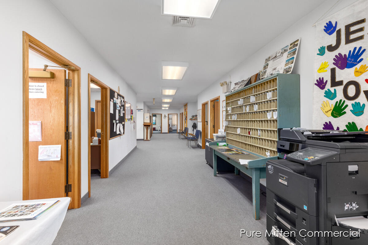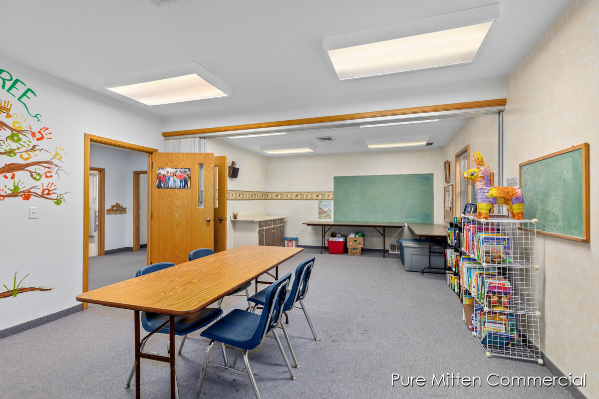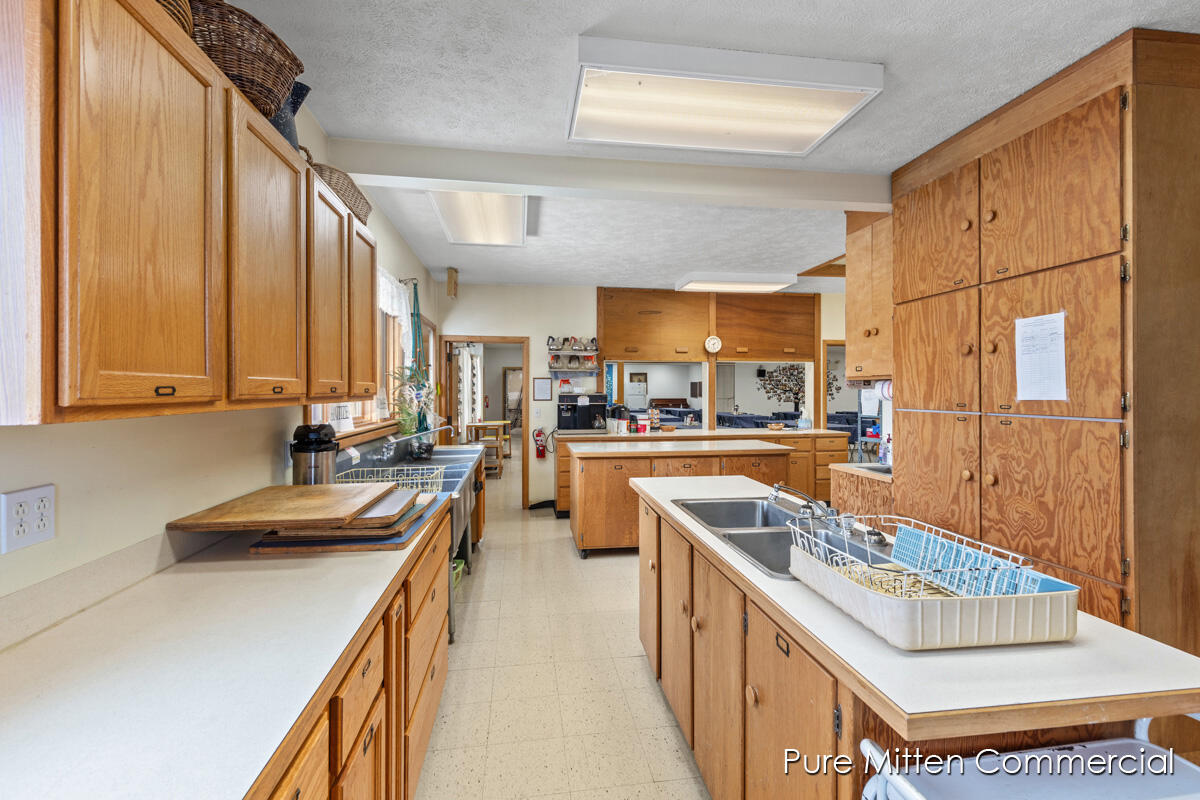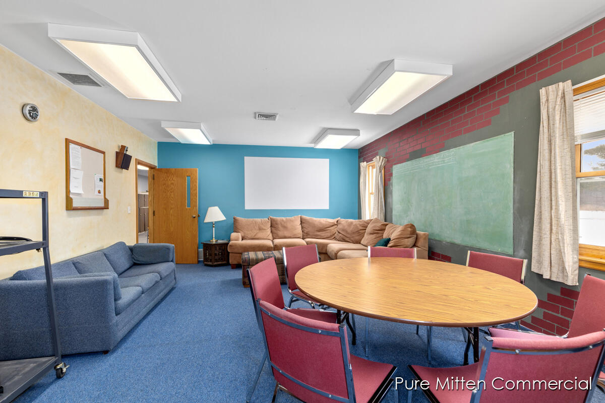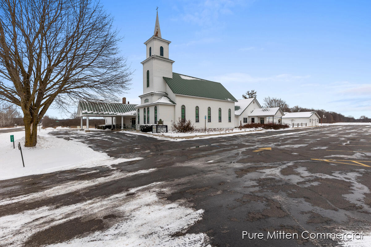 Versatile church property with commercial kitchen and ample parking.