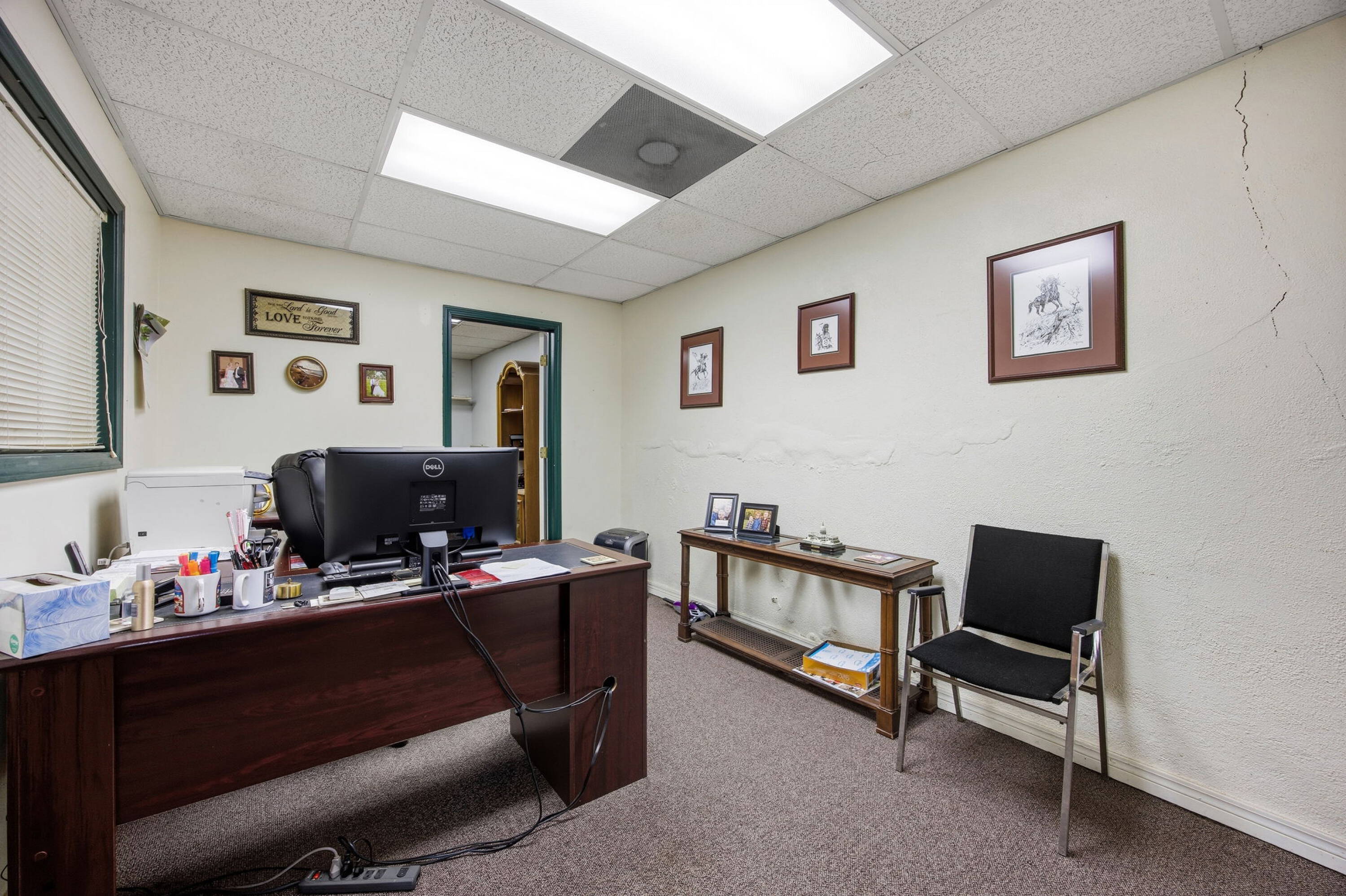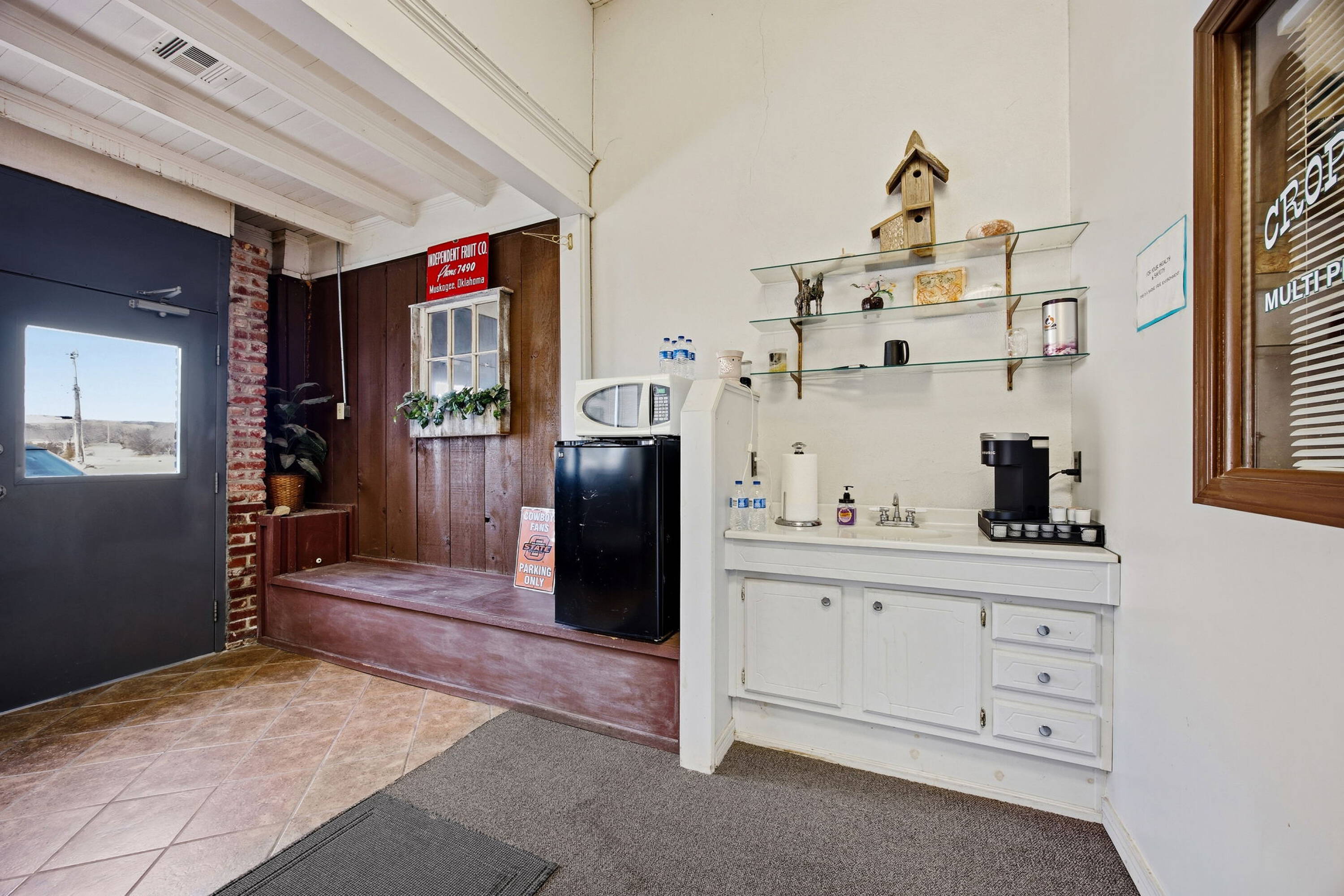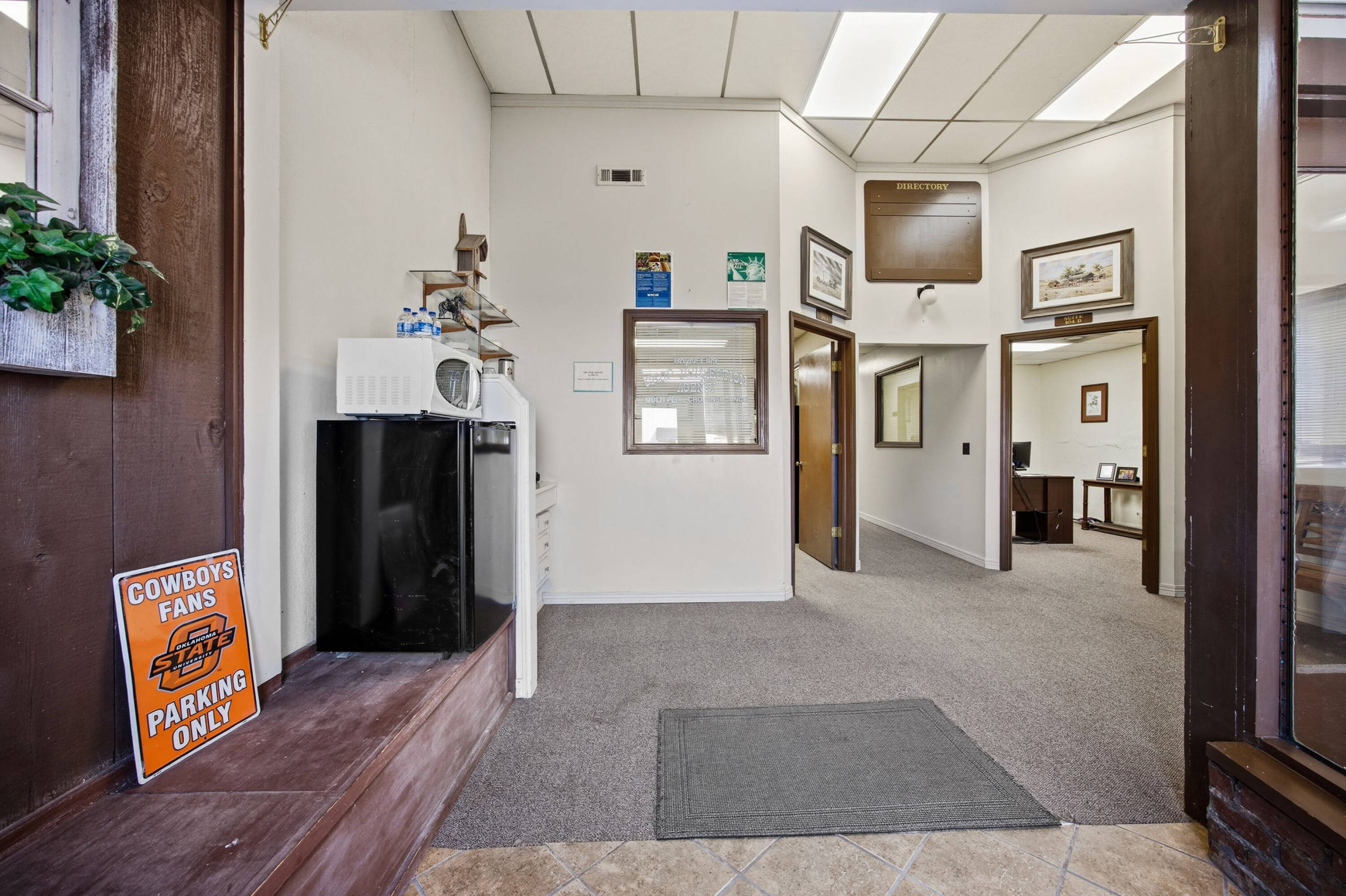 Versatile commercial building in downtown Haskell with office buildout.