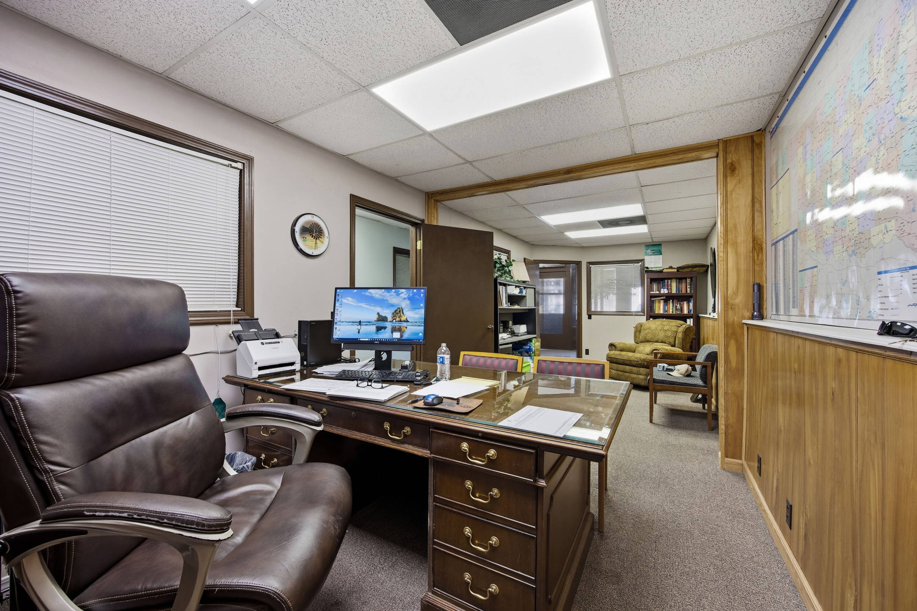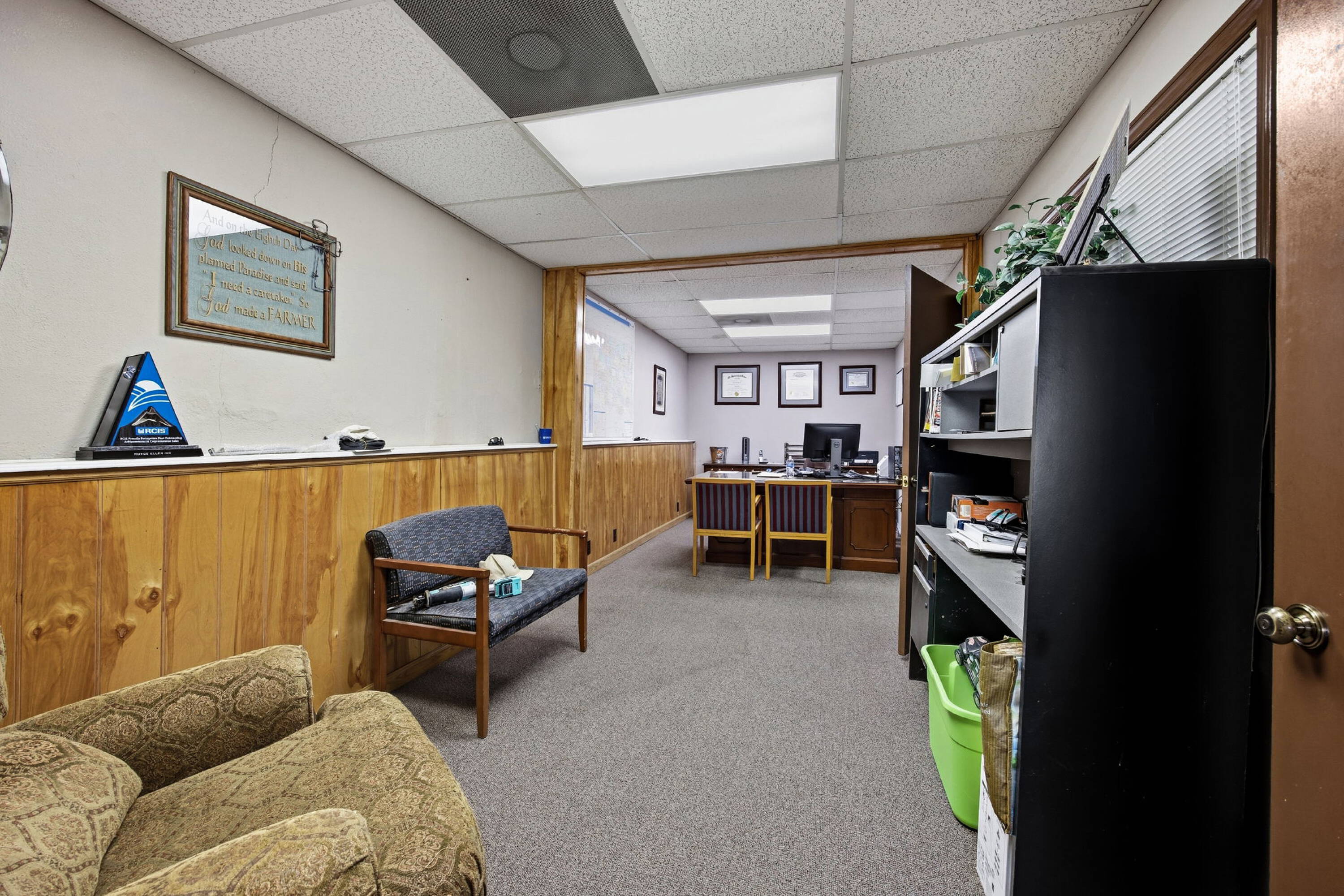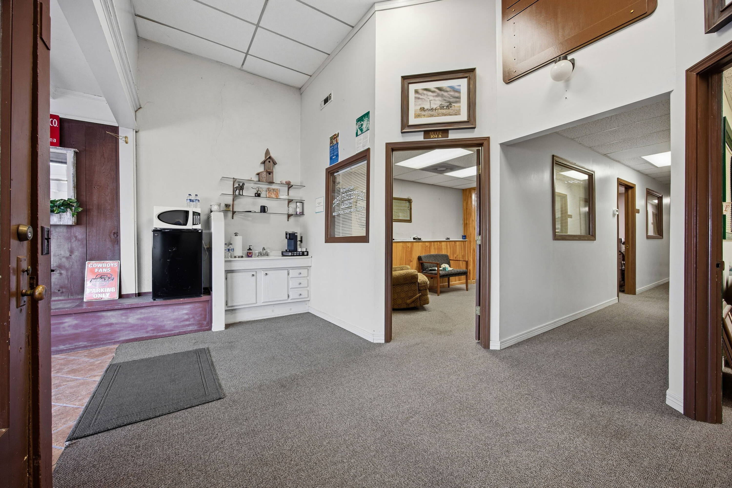 Versatile commercial building in downtown Haskell with office buildout.