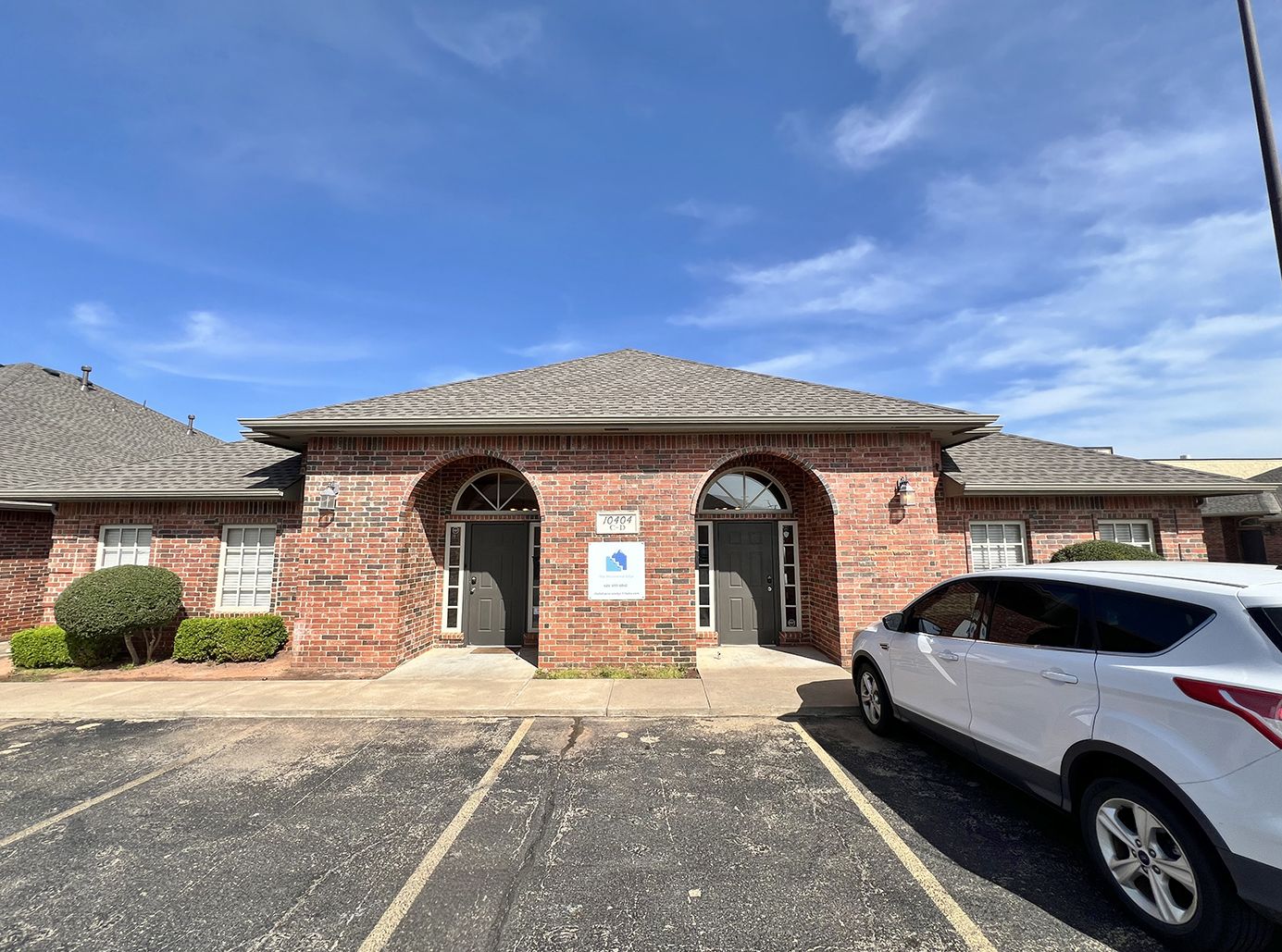 Red brick office with updated interiors and ample parking.