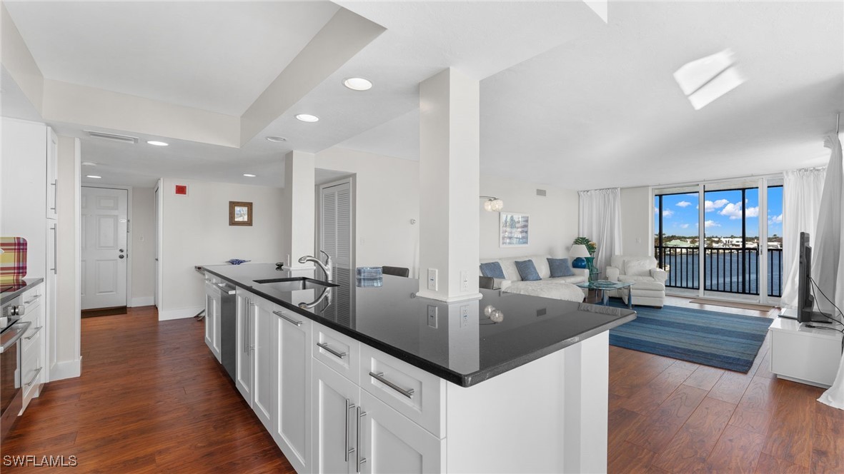 Remodeled corner unit with panoramic views and deeded beach access.