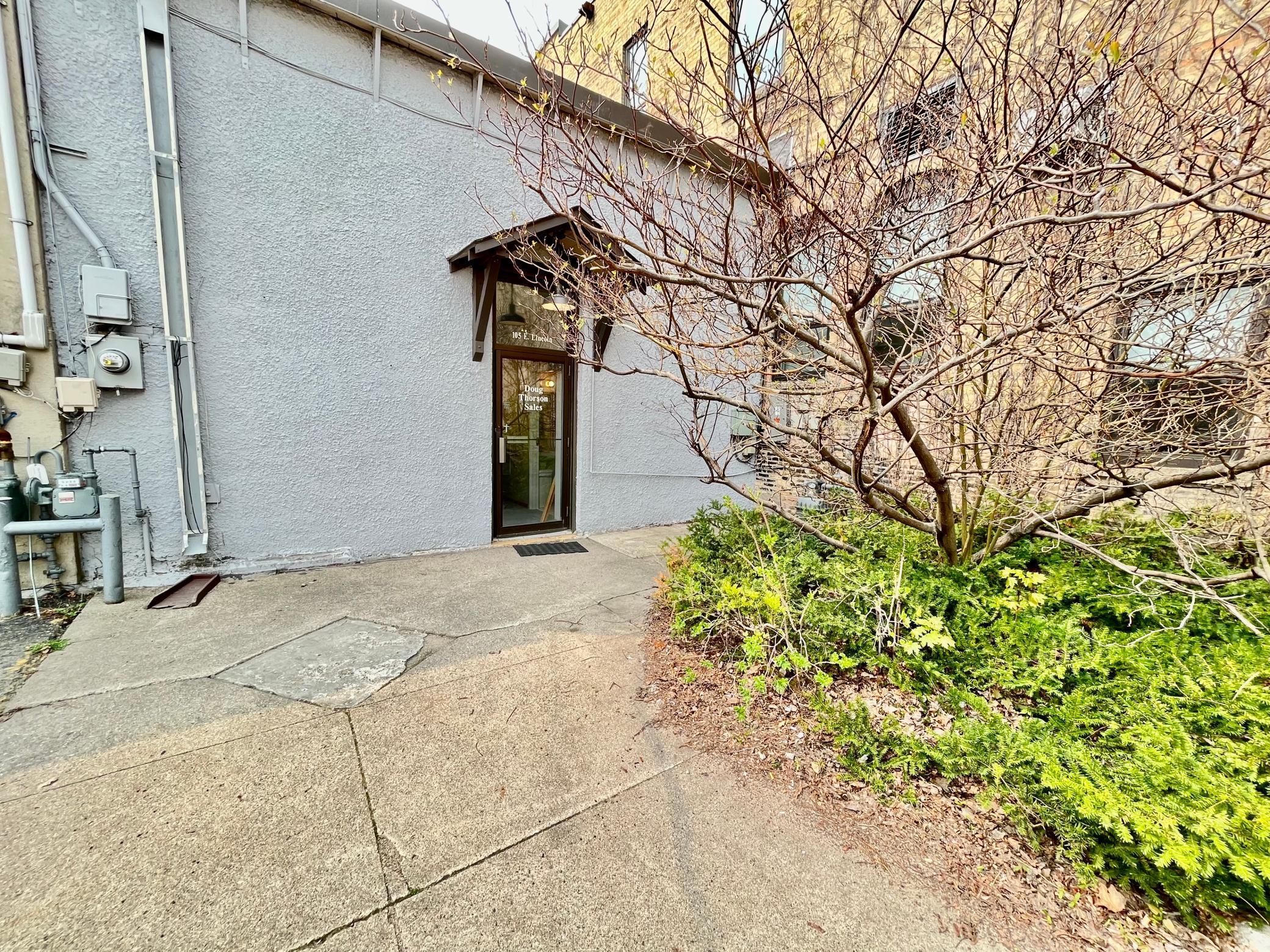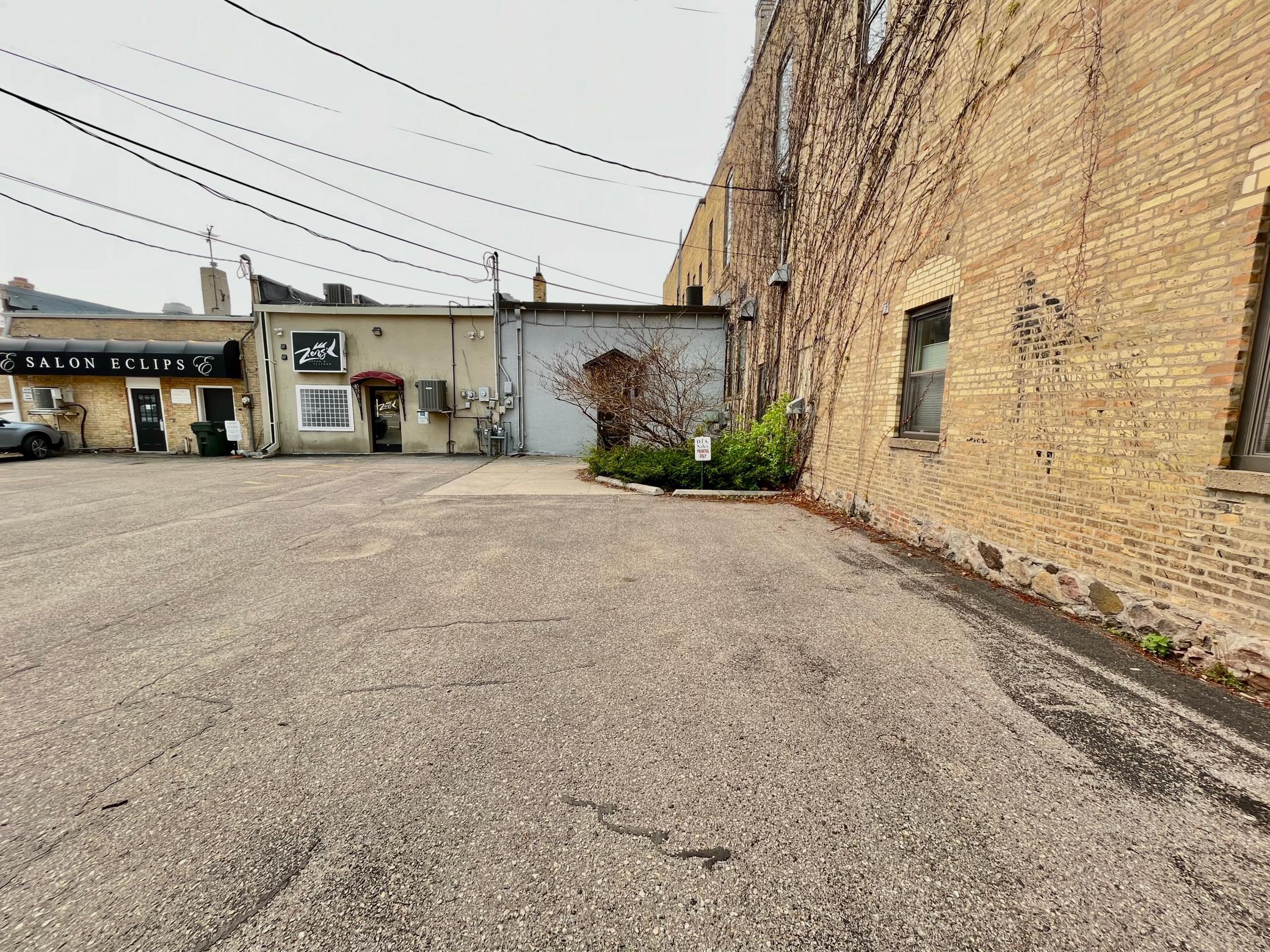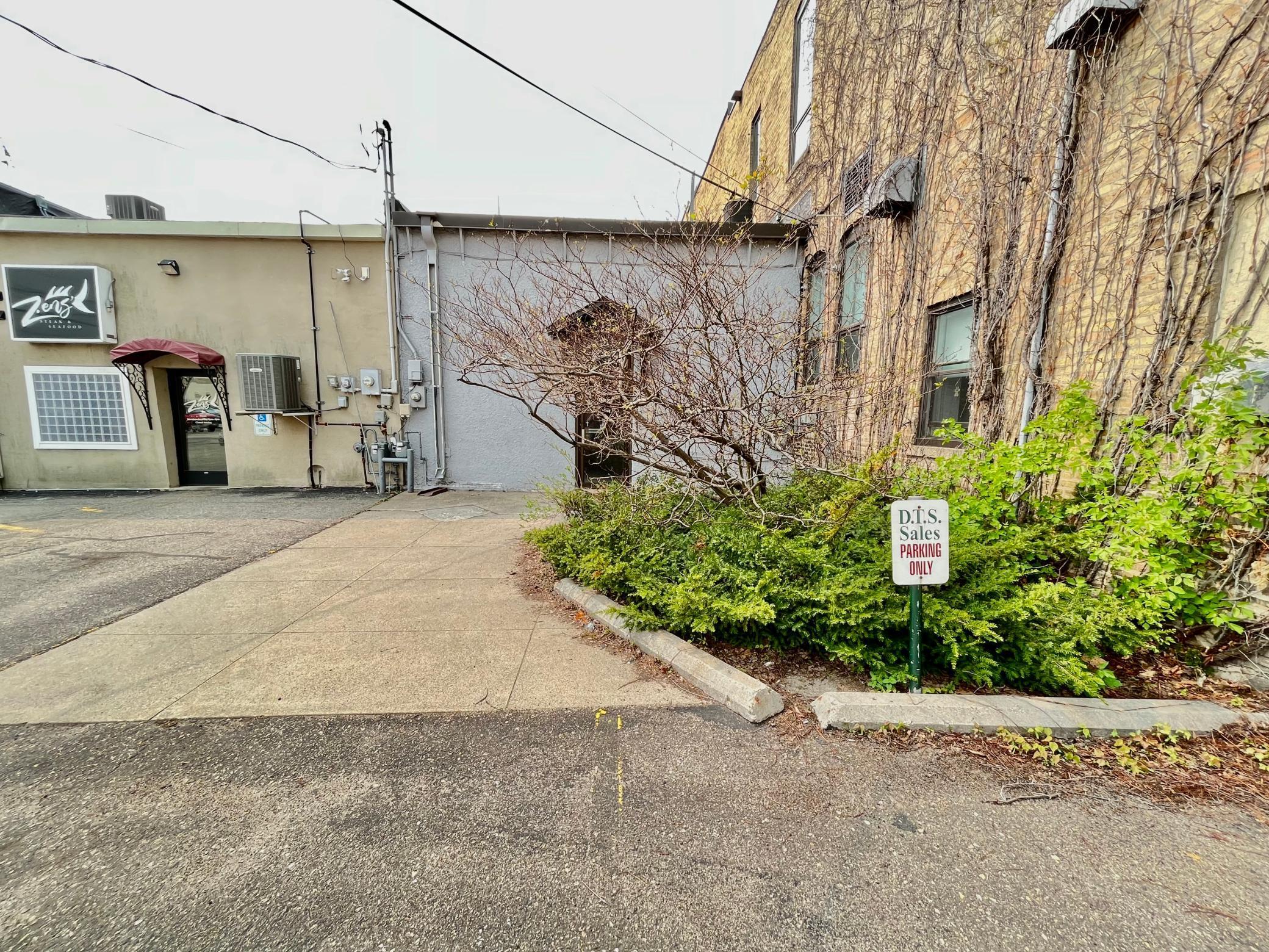 Commercial space in downtown Fergus Falls with parking lot.