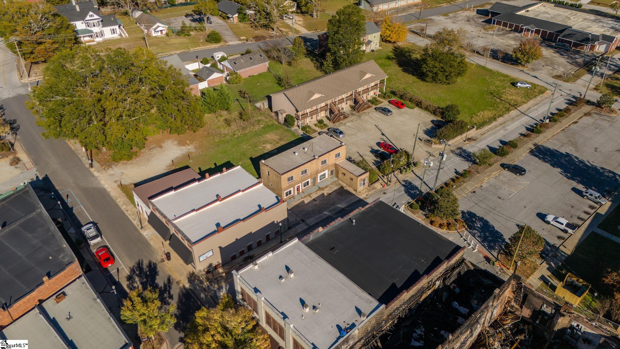 Located in downtown Clinton, this two-story commercial property offers 2,621 square feet of space. The layout includes four separate entrances, making it suitable for single or multi-tenant use, with completely separate access for upstairs. Five dedicated parking spaces are included. Situated near Presbyterian College, Presbyterian Pharmacy School, and Thornwell Charter School, the property benefits from regular foot traffic. The building, constructed by the local Dendy family, has historic character. The property's condition, including asbestos removal, allows design freedom, making it suitable for retail, office space, restaurant, or mixed-use development. Positioned in Clinton's business district, this property is well placed to capture local commercial activity.