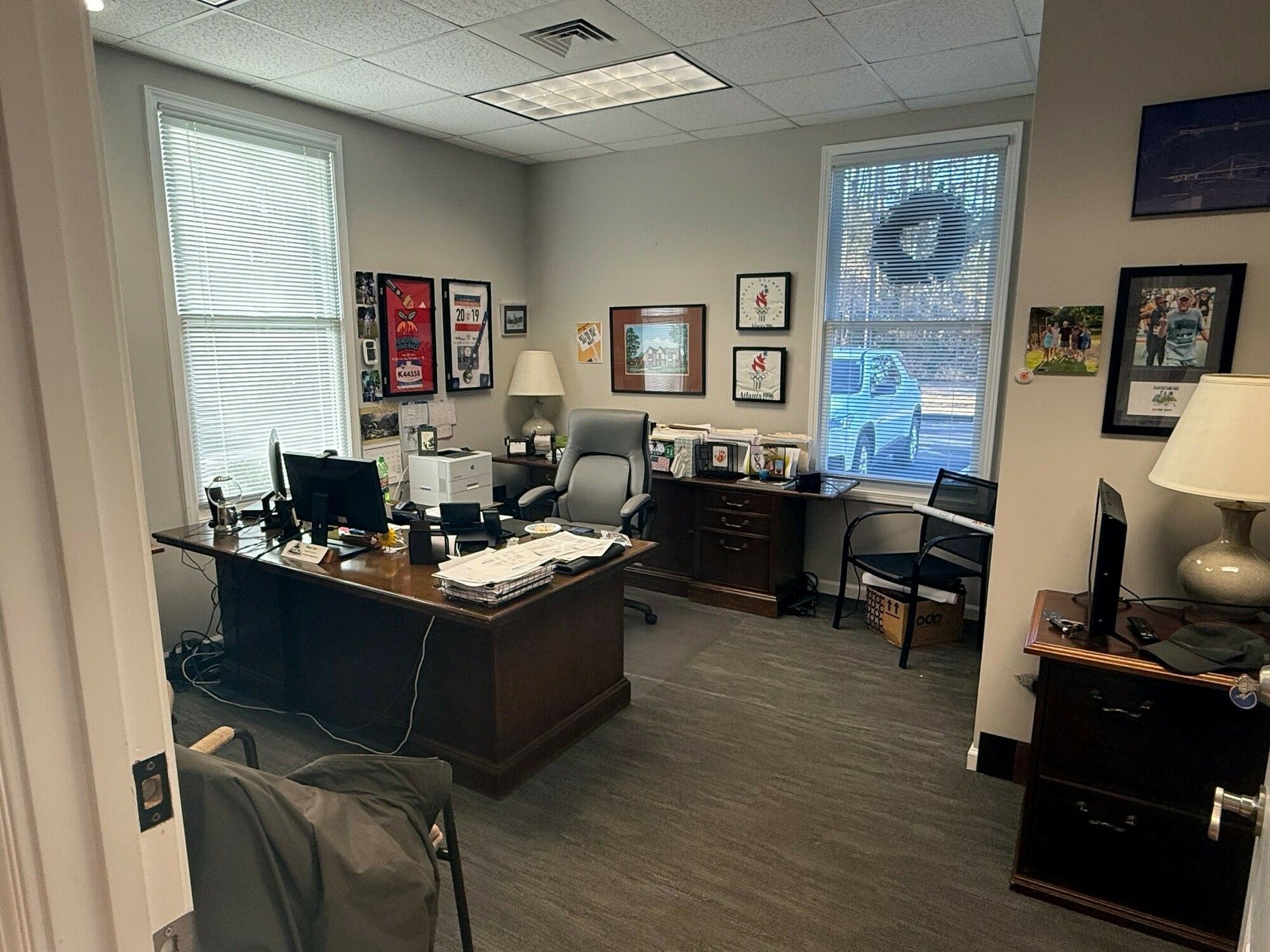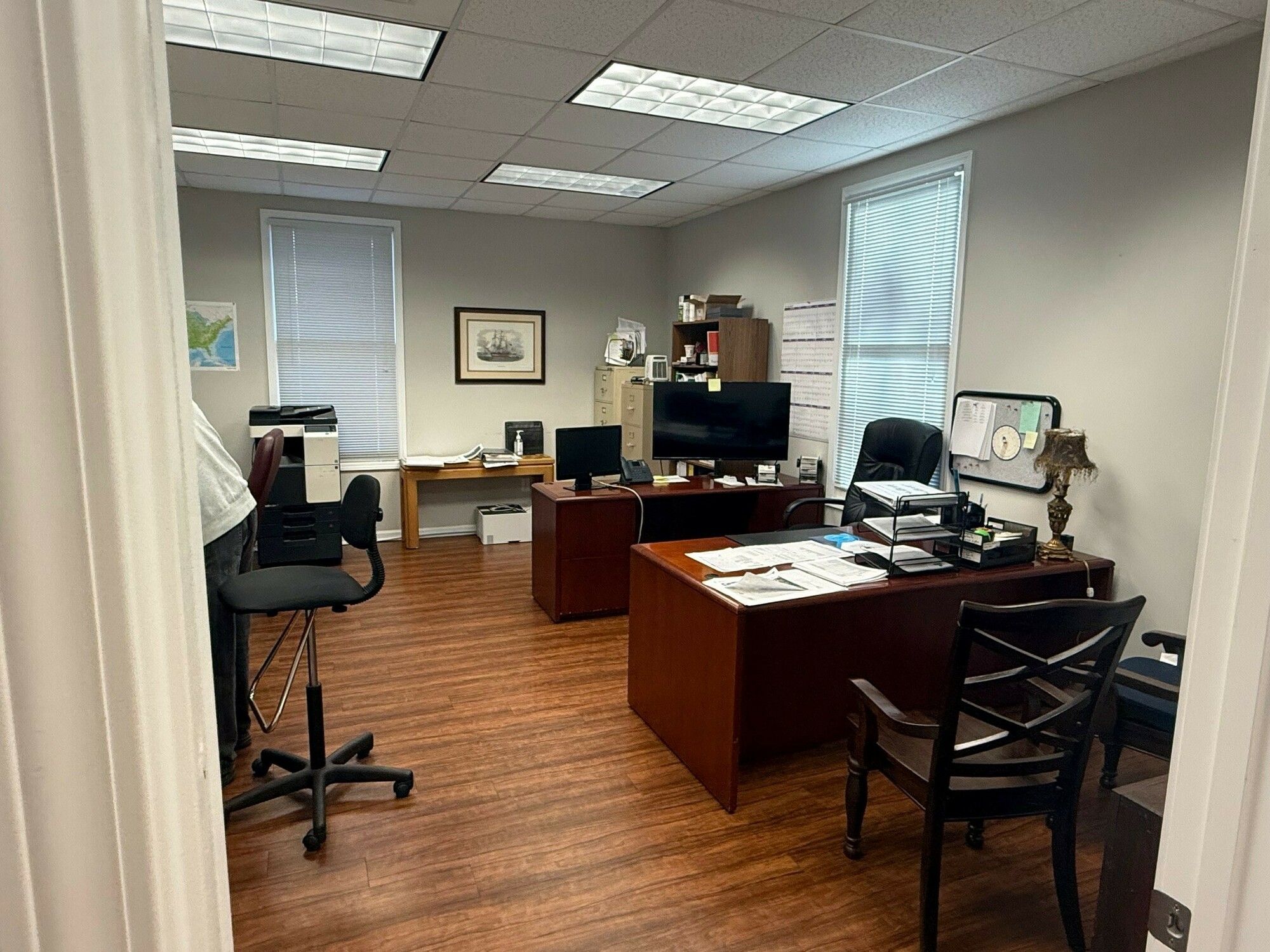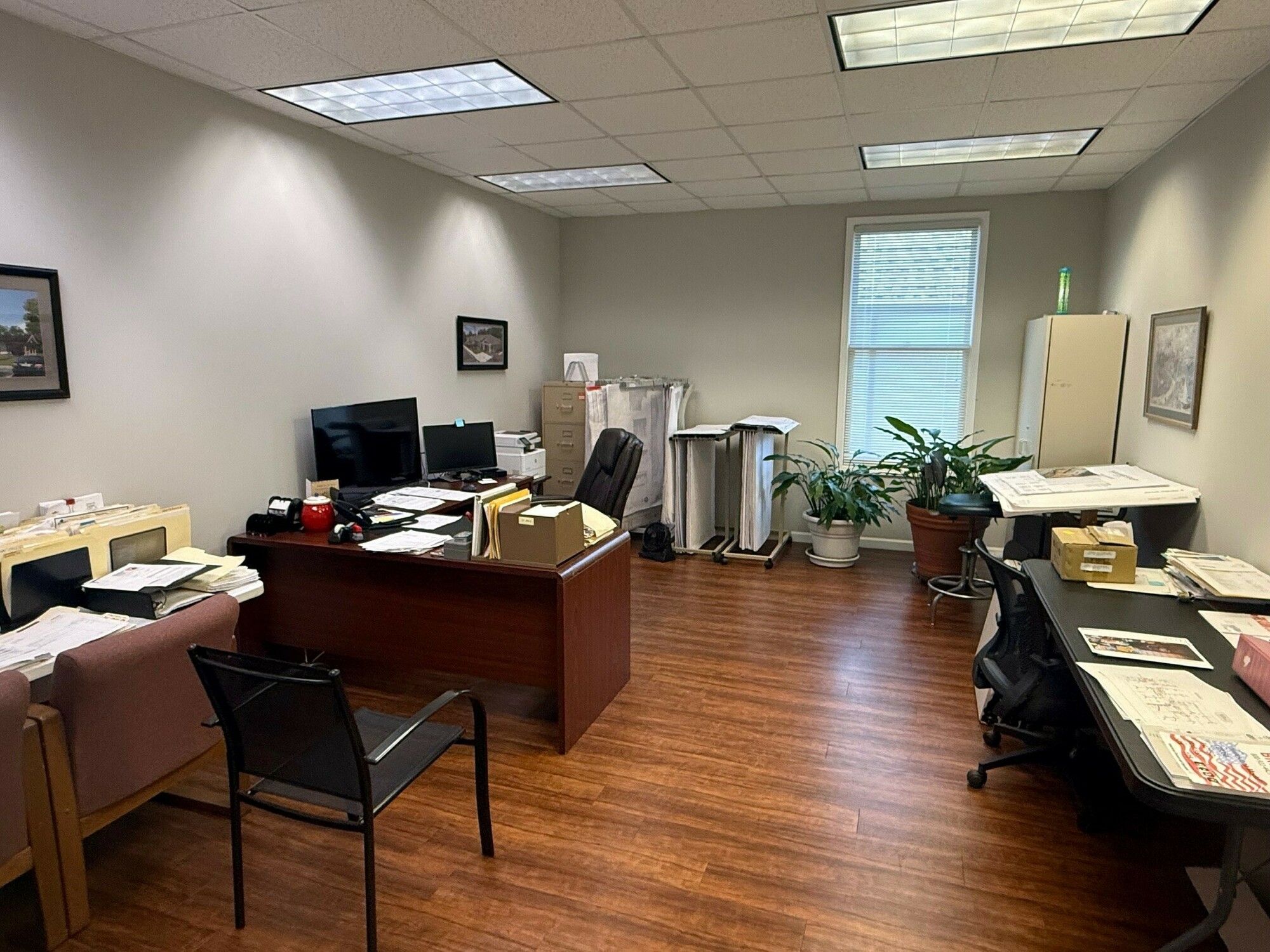 Office space with ample parking and private offices for sale.