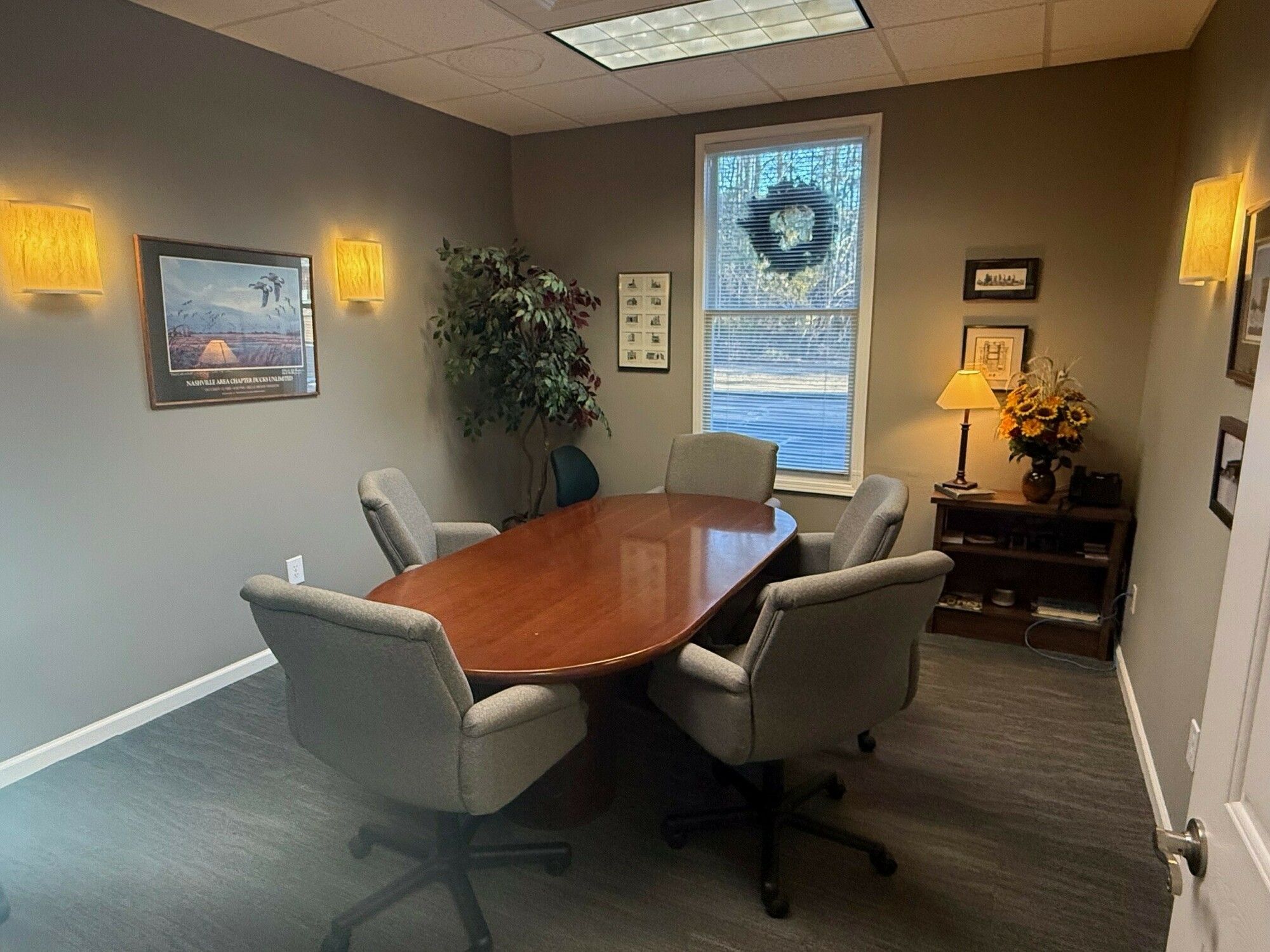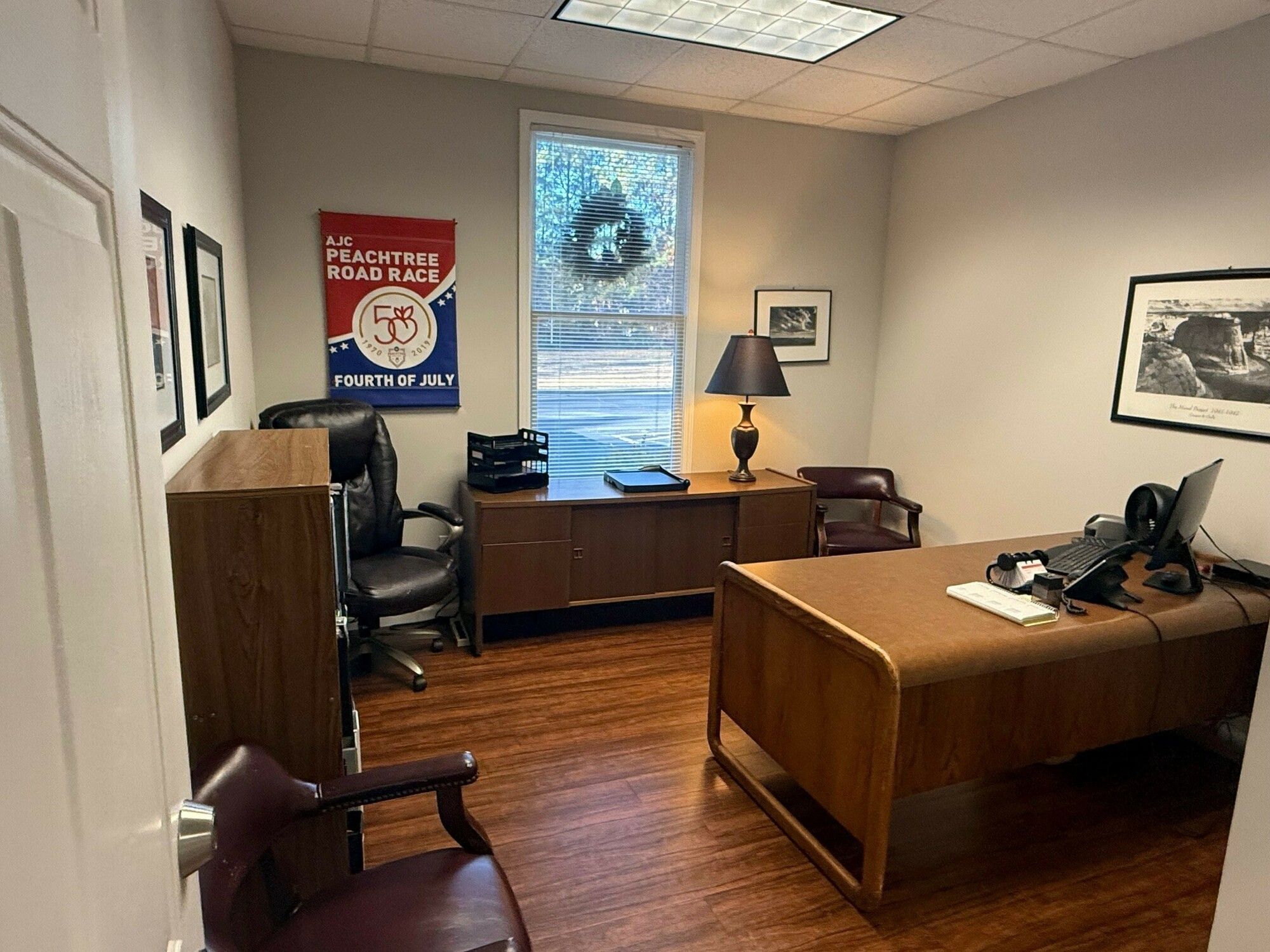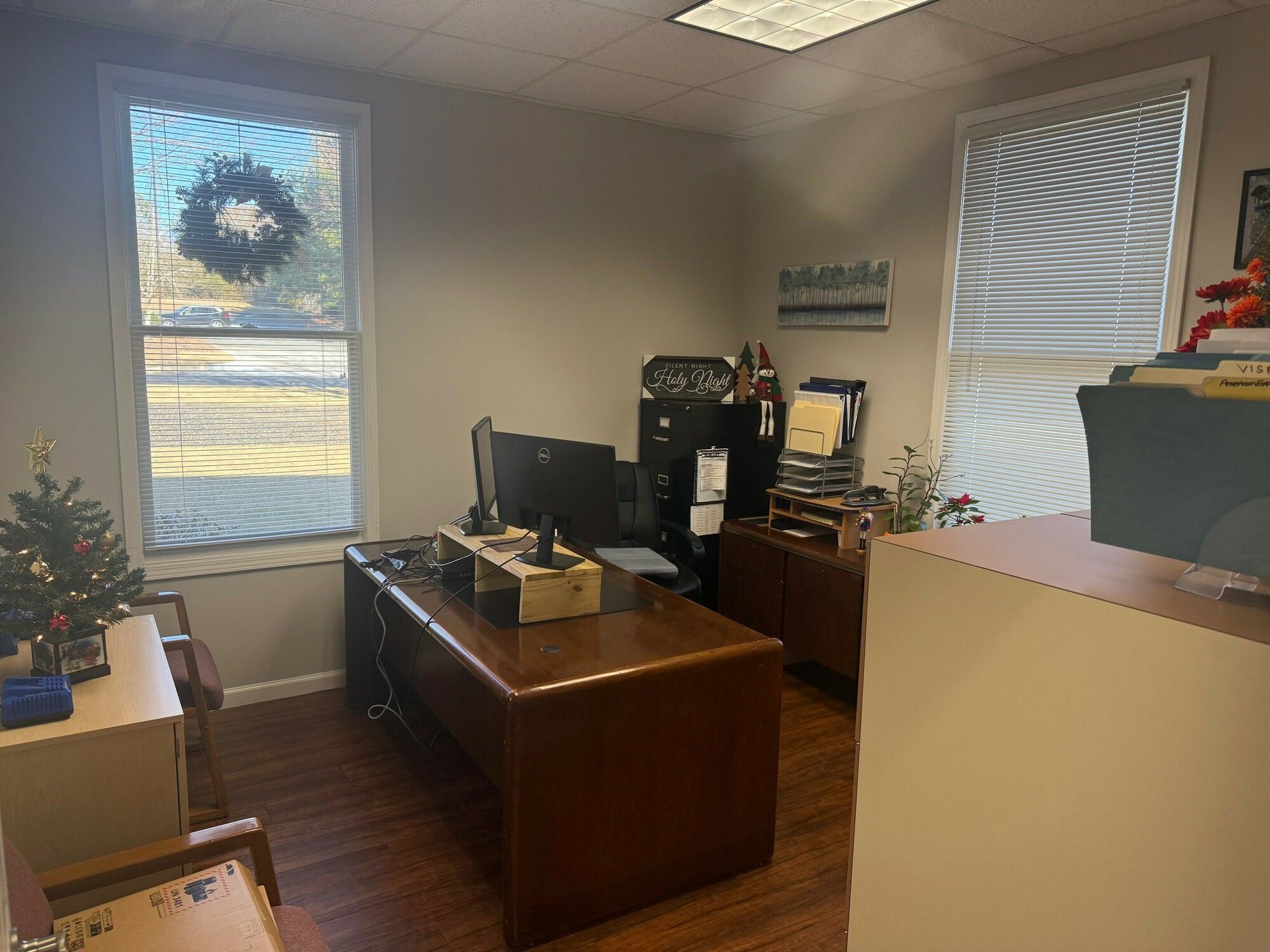 Office space with ample parking and private offices for sale.