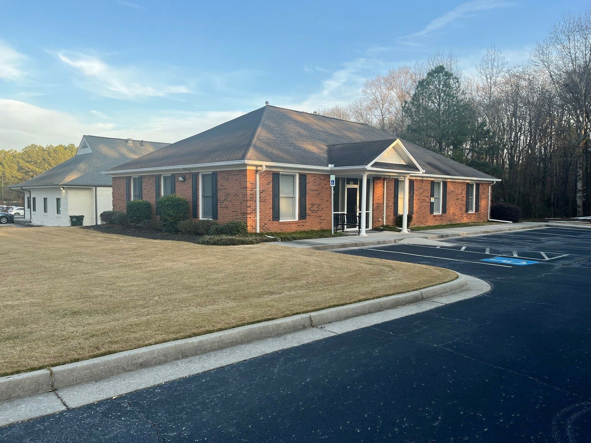 Located on Grayson Industrial Parkway, this property features ample parking. The interior includes eight private offices and three restrooms. The property is zoned for light industrial use and operates on a septic system. An adjacent vacant property may also be available.