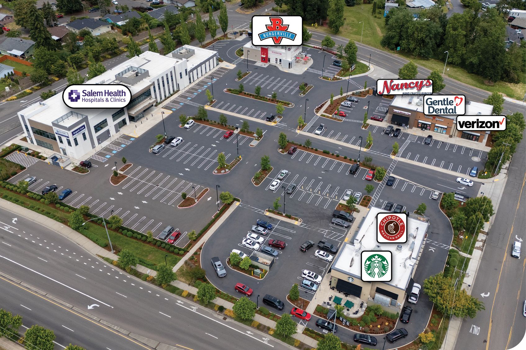 100% leased retail property near Woodburn Premium Outlets.