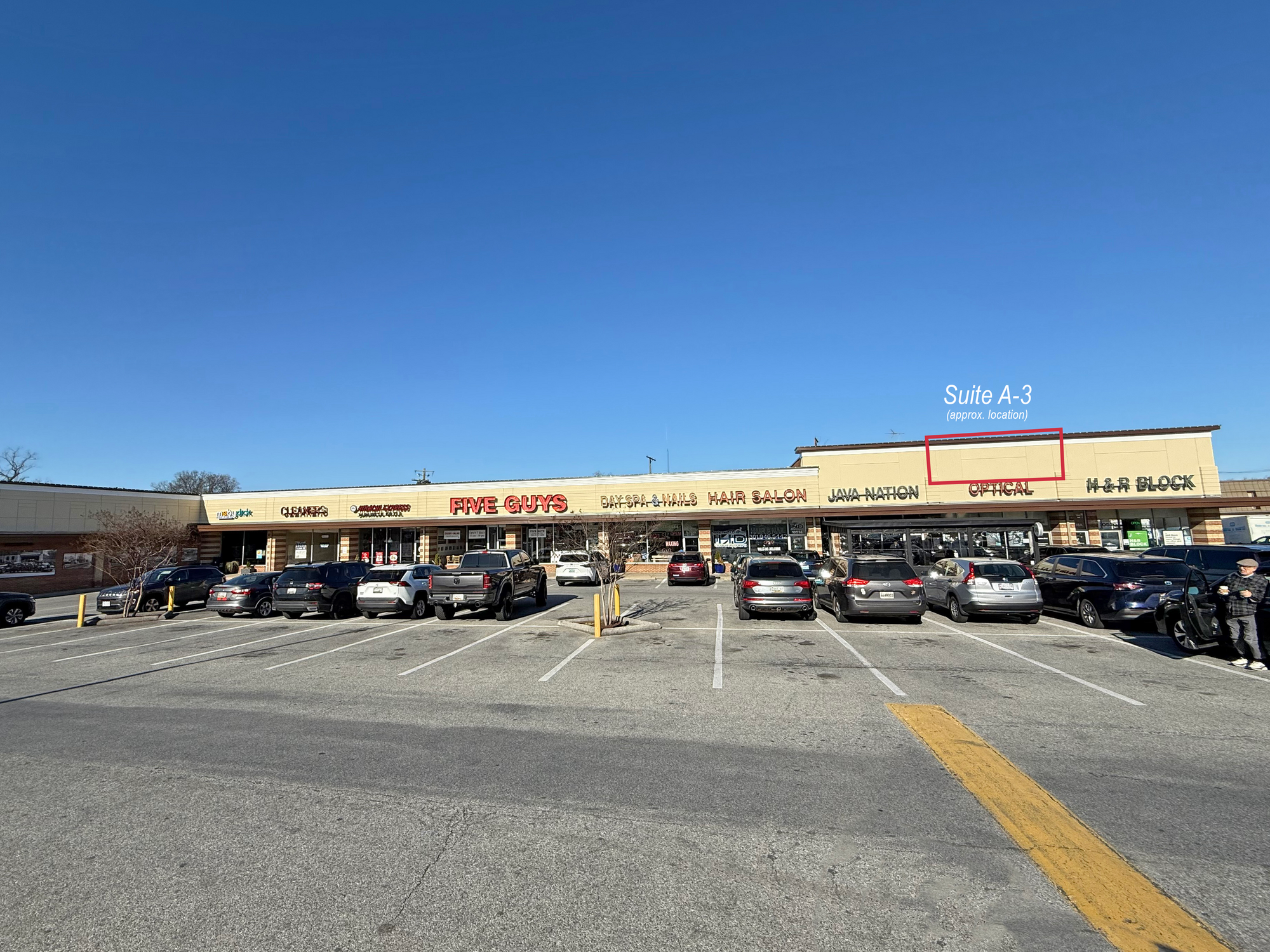 Second-floor office space in a retail center with ample parking.