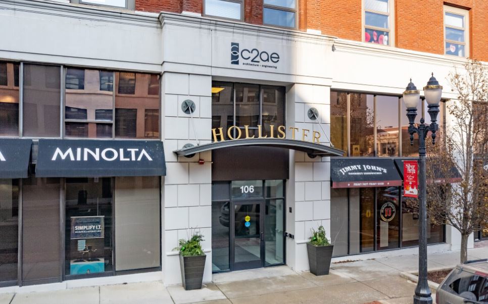 Six-story mixed-use building in downtown Lansing with retail and office.