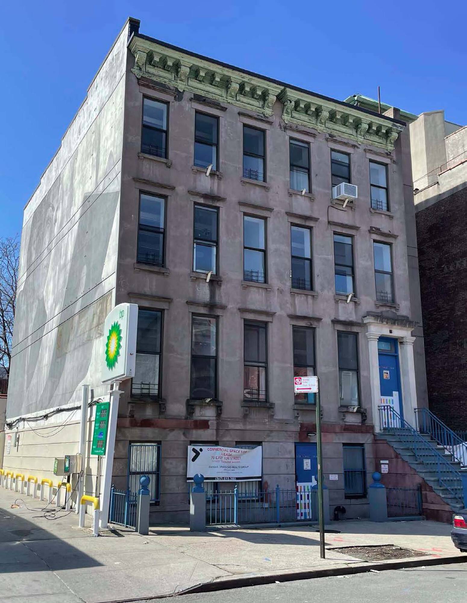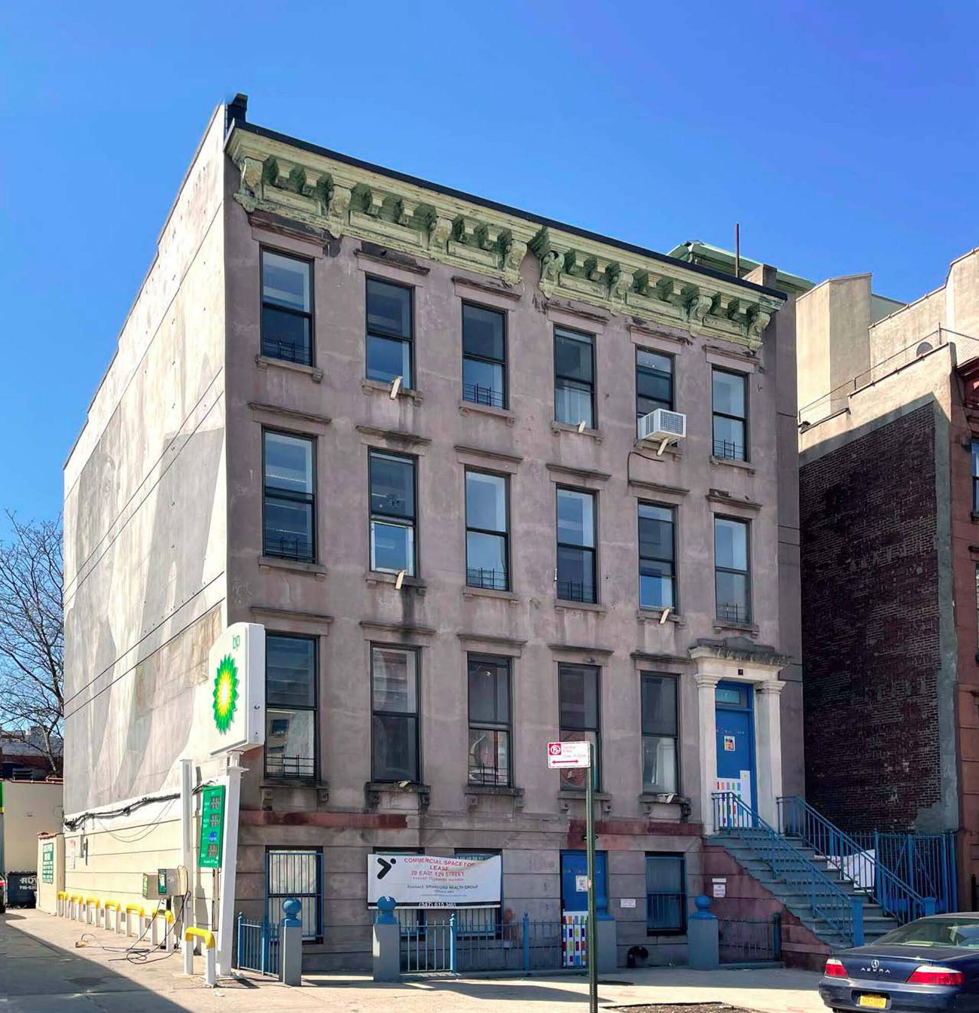 Vacant school building in East Harlem with redevelopment potential.