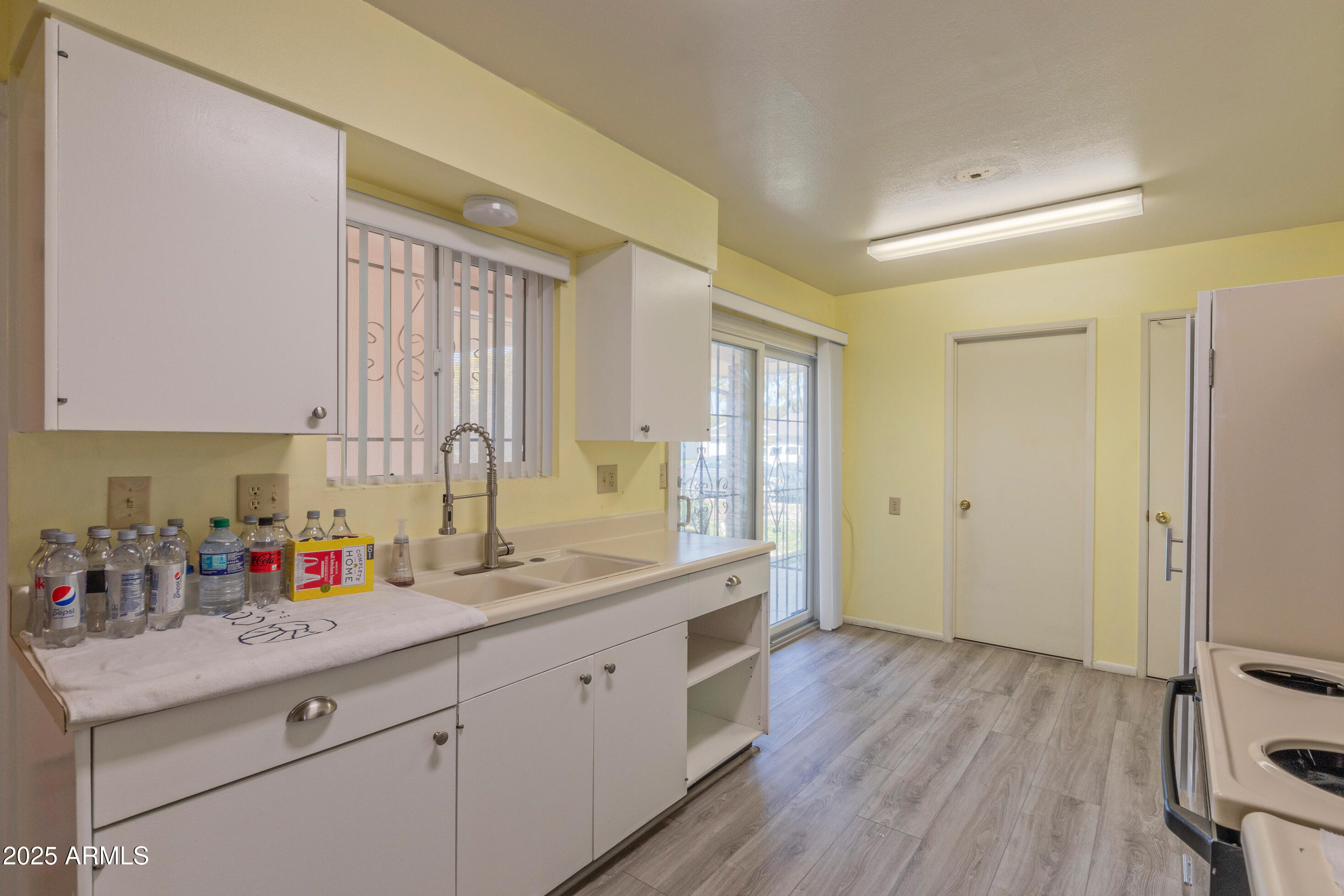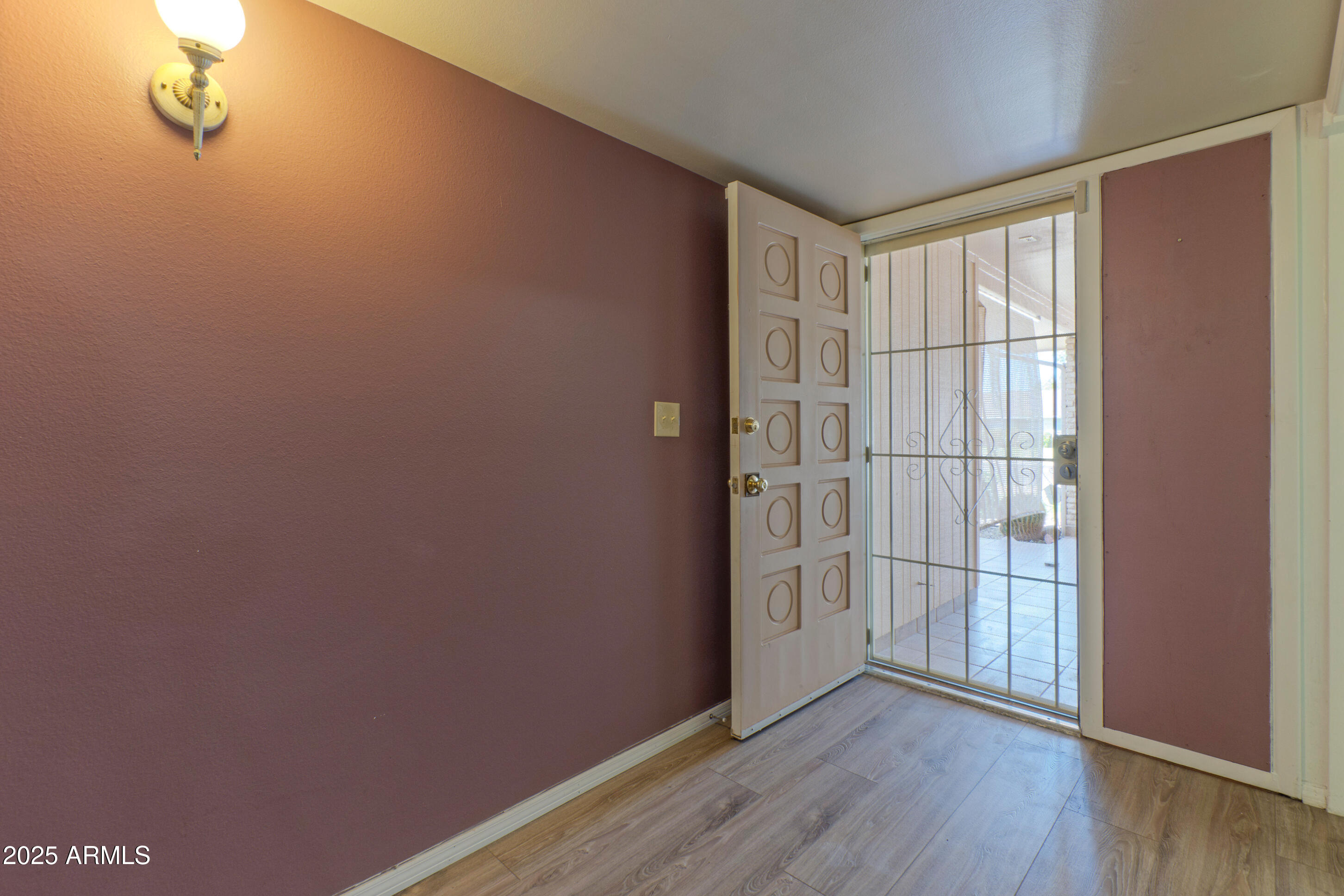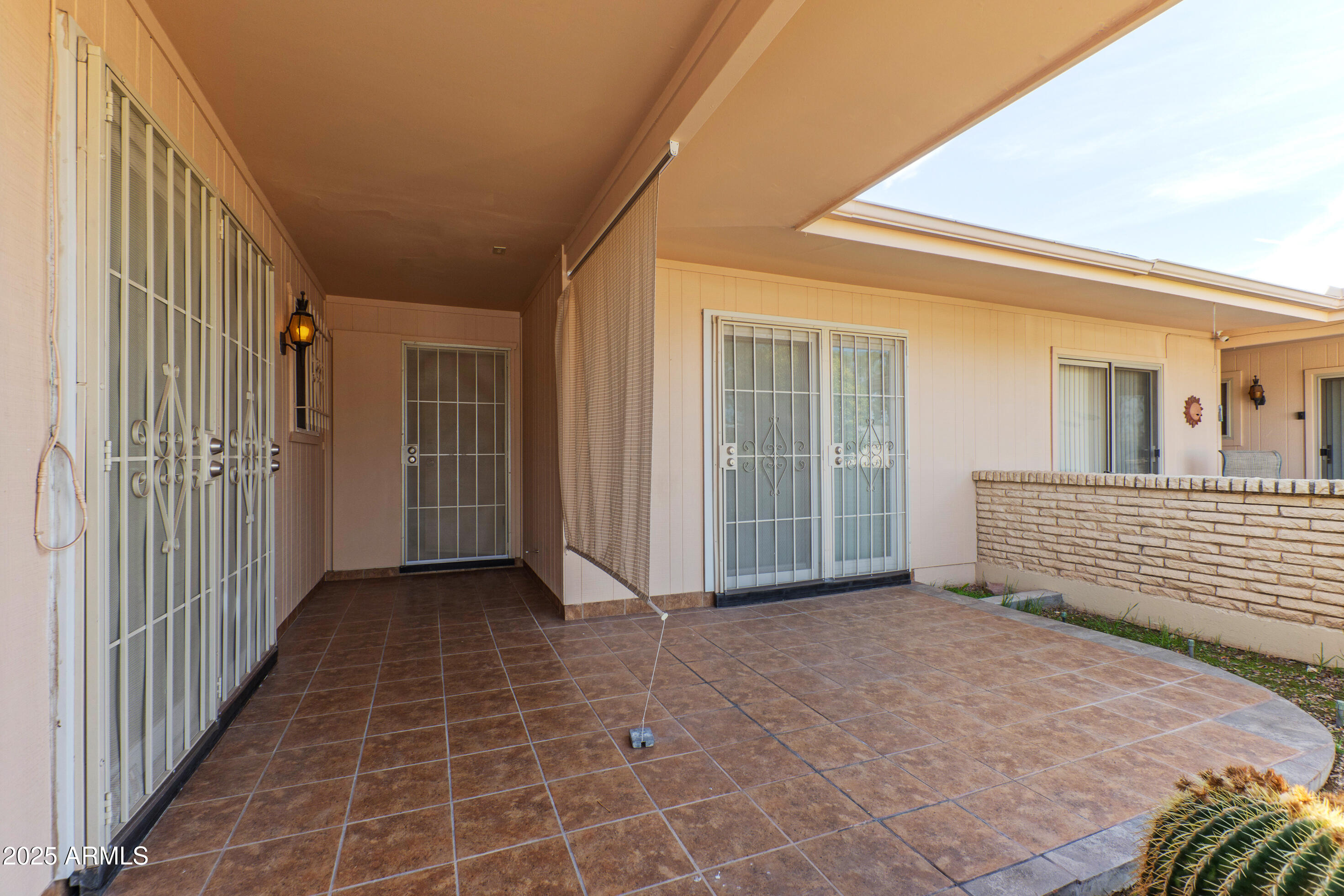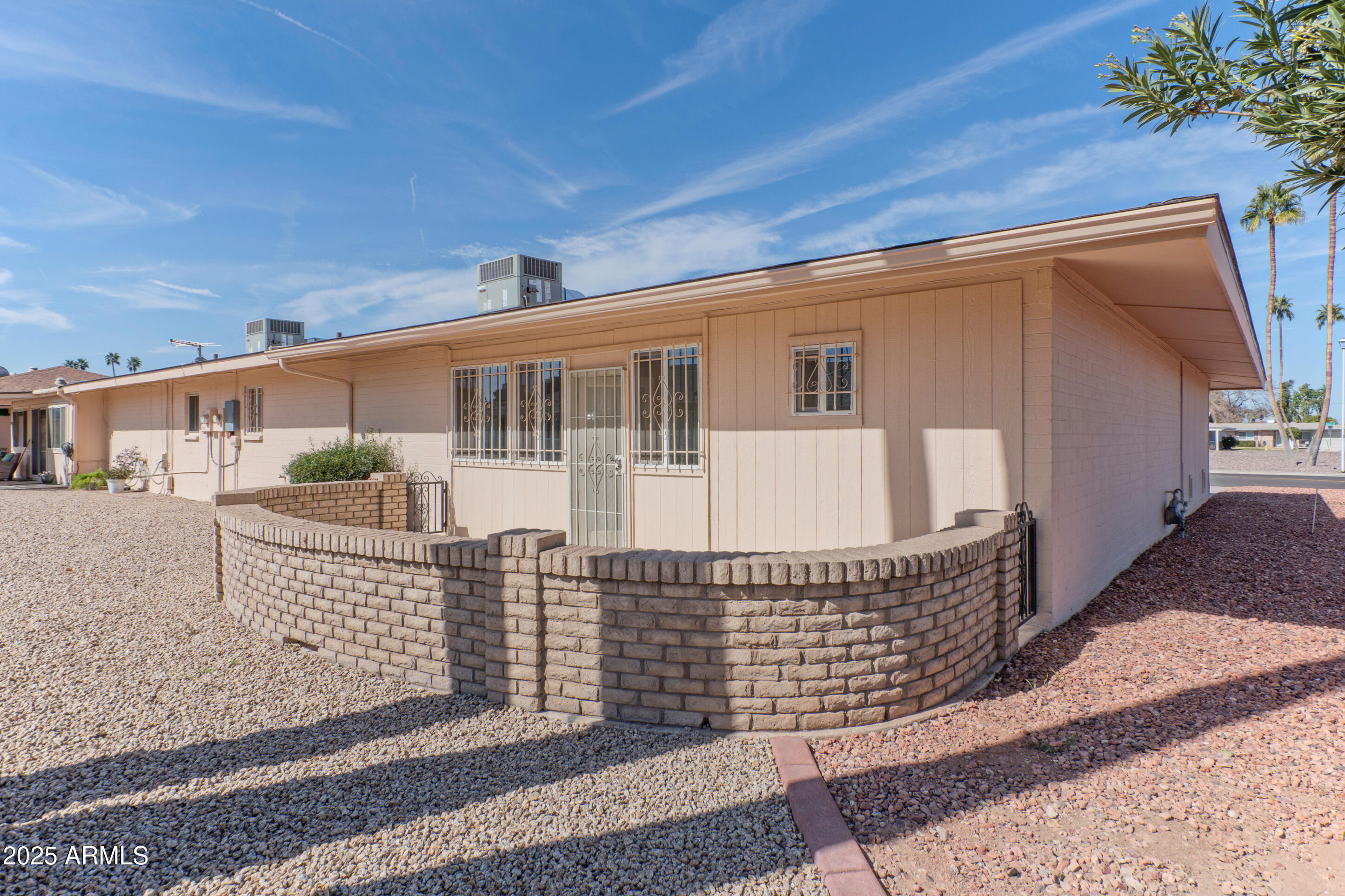 This meticulously maintained home features 2 bedrooms and 1.75 baths. Recent updates include new flooring, fresh paint, a modern roof, and an updated water heater. The property includes spacious dining and living areas suitable for entertaining. The kitchen is well-appointed with ample cabinetry, generous counter space, and built-in appliances. The primary bedroom includes a private ensuite. Natural light enters through four sliding glass doors that connect every room to outdoor spaces. The property features private front and back patios, and a backyard with a screened-in area. Additional features include a two-car garage and an interior laundry area. The property is situated near Olive, Peoria, Grand, Thunderbird, and Bell, and is a 10-minute drive from Glendale Stadium. Fairway Recreation Centers, Sun Bowl, and Sun City golf courses are also nearby. The property size is 1471 square feet.