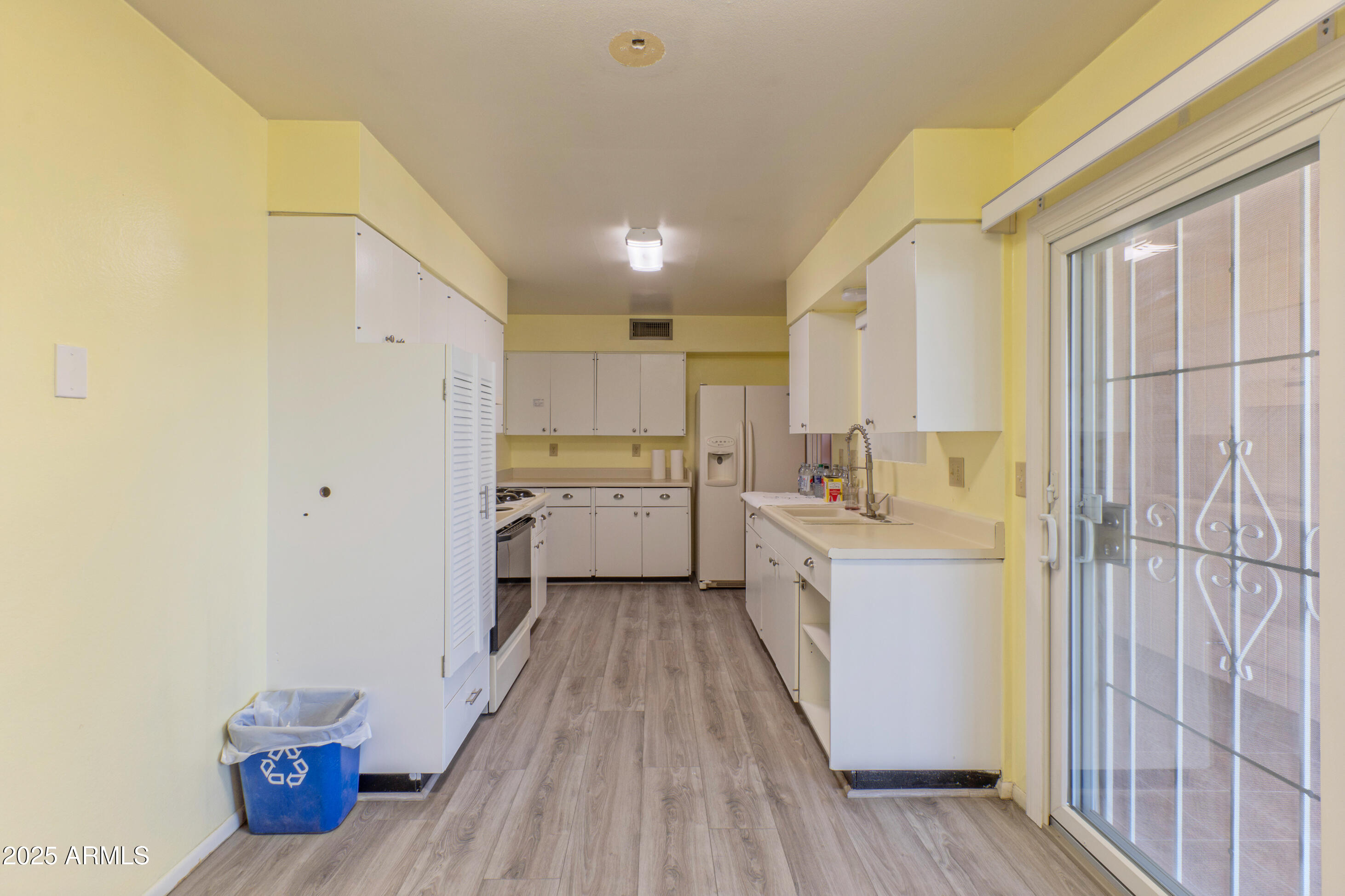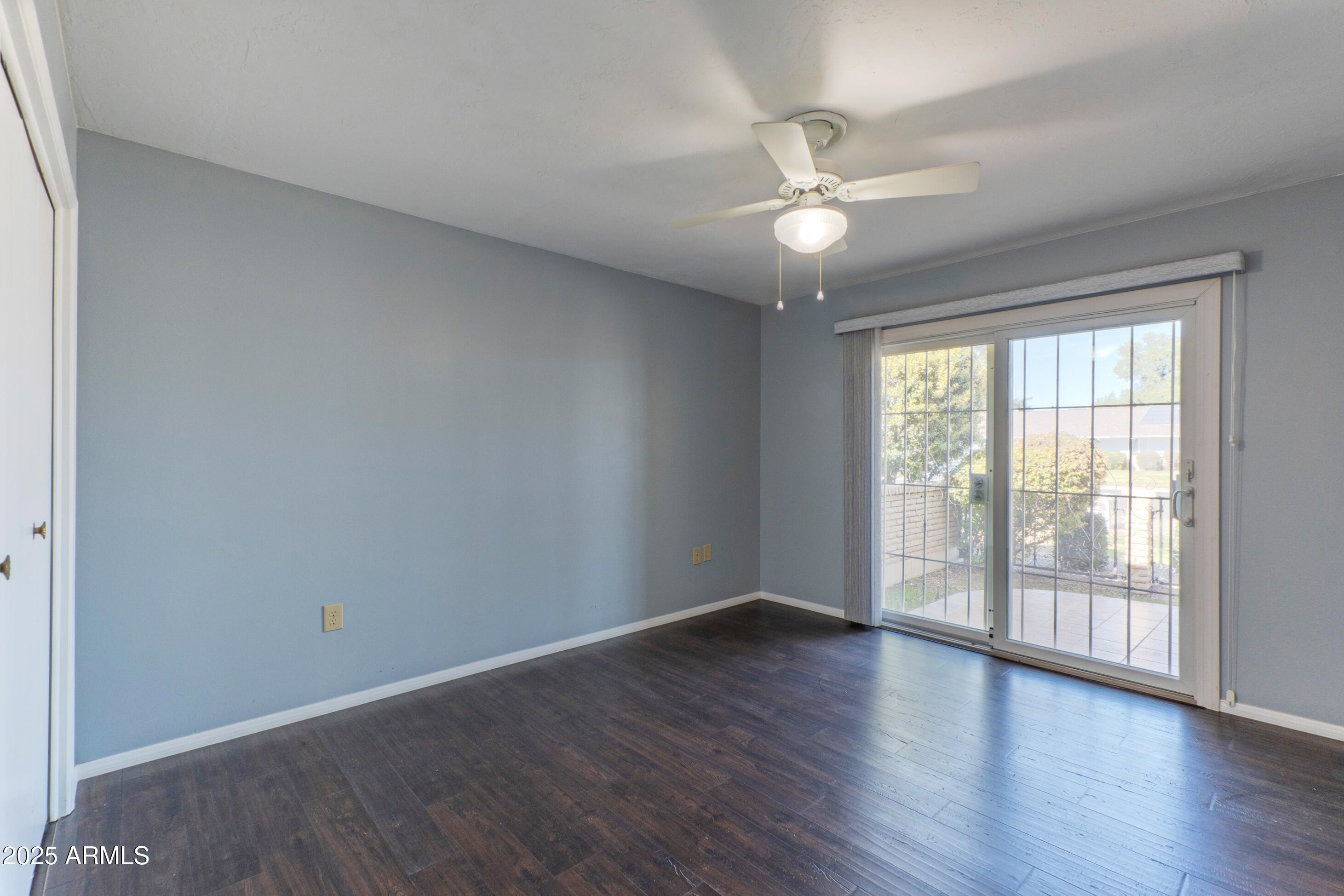 This property features: Recently updated with new flooring, fresh paint, modern roof, and updated water heater.; Four sliding glass doors connect every room to **private front and back patios and a charming backyard with a screened‑in area.**; Primary bedroom features a **private ensuite bathroom.**