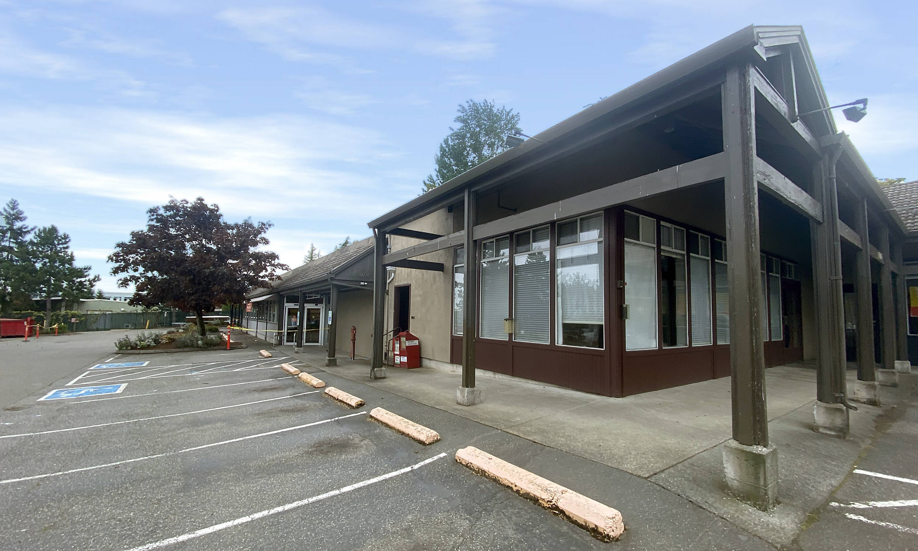 Retail and office spaces for rent with ample parking.