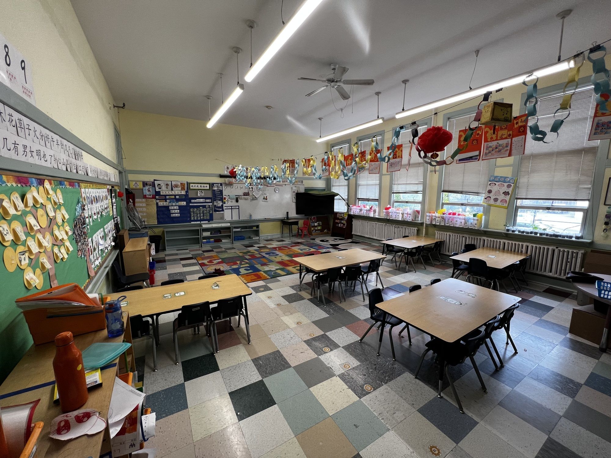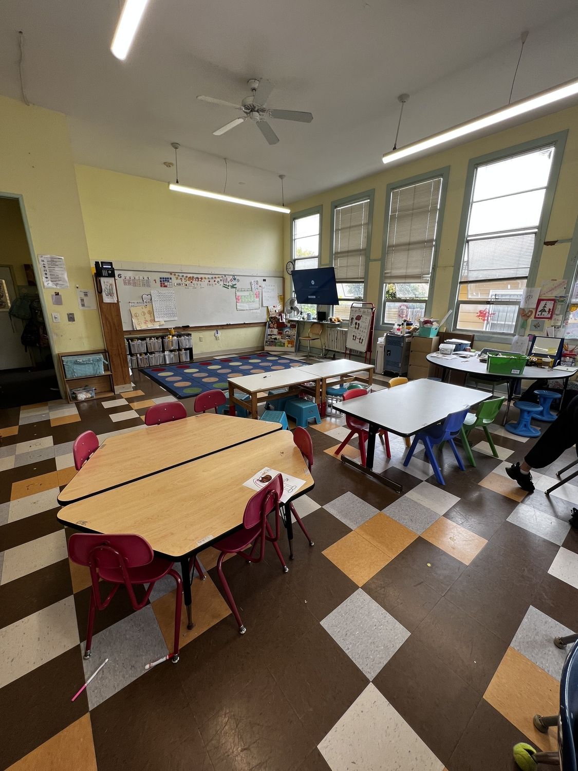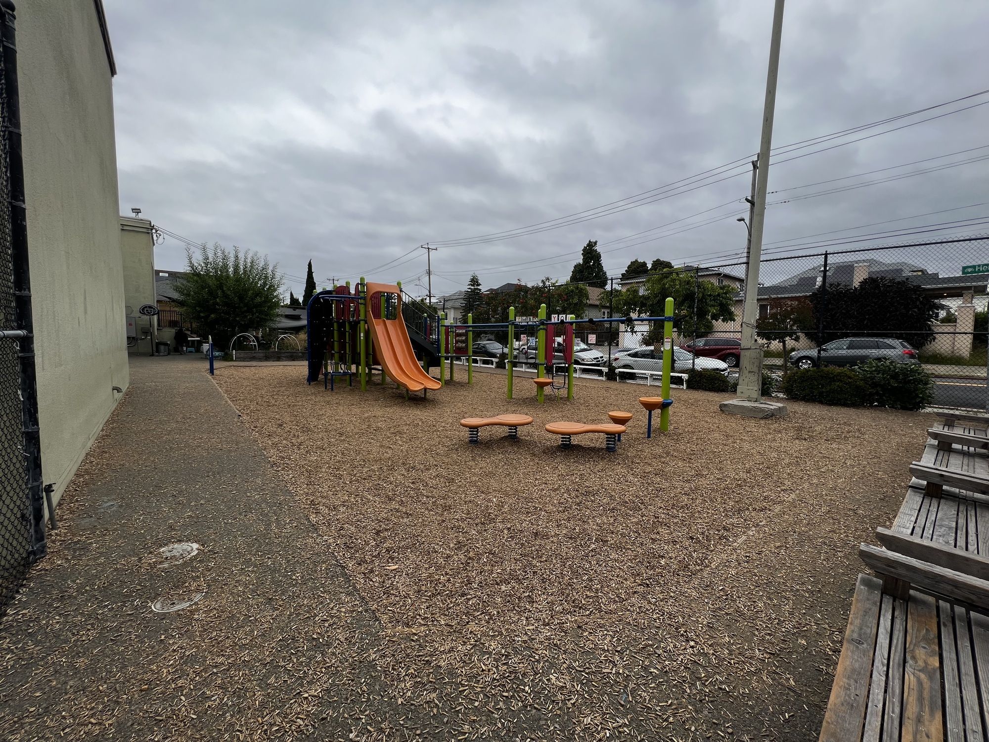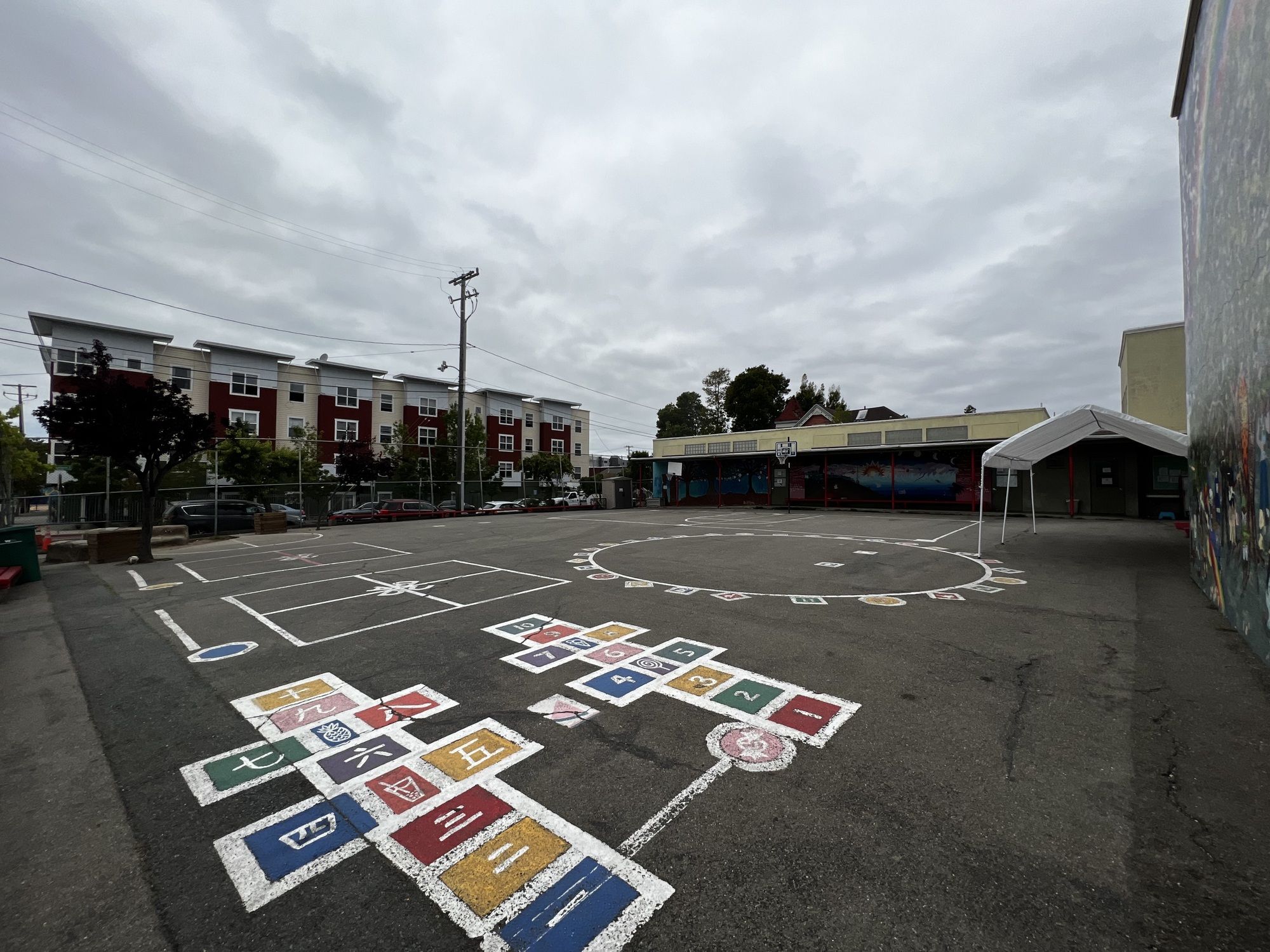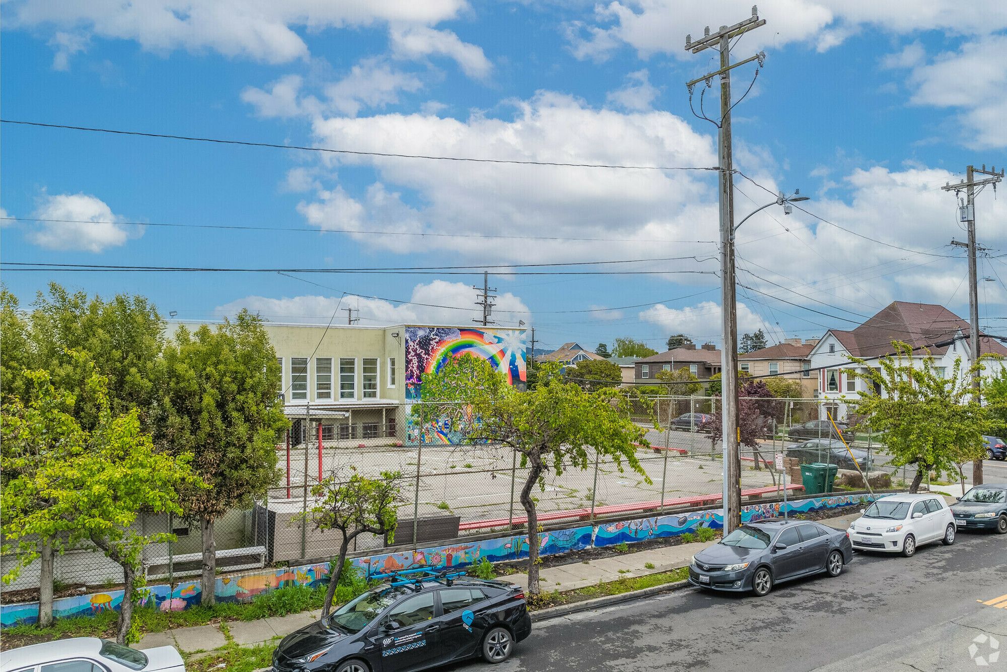 North Oakland school building with classrooms and outdoor play areas.