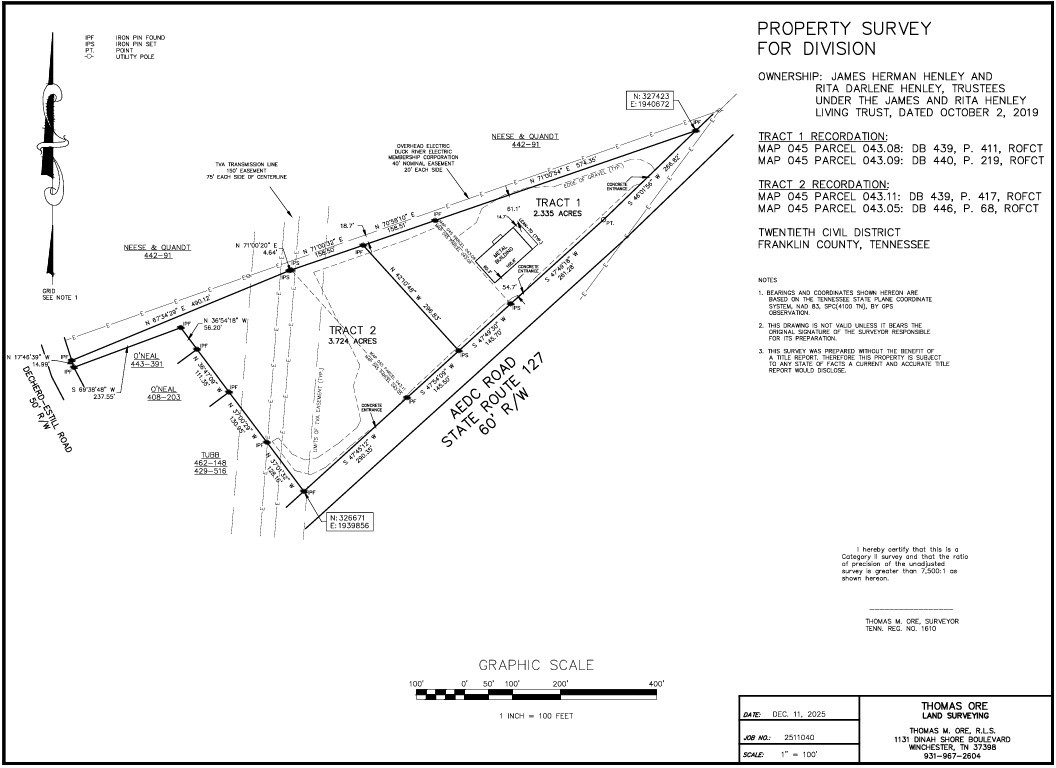 Commercial land available near AEDC Road in Winchester, Tennessee.