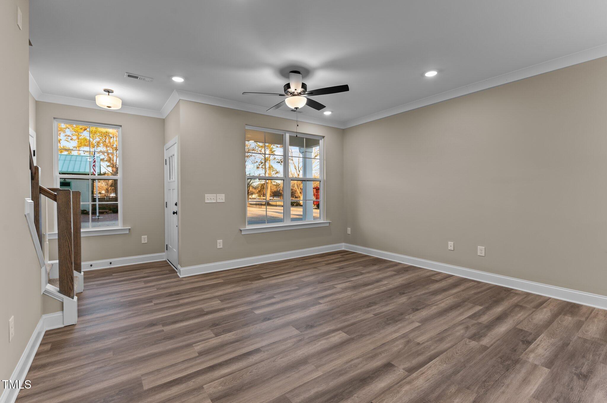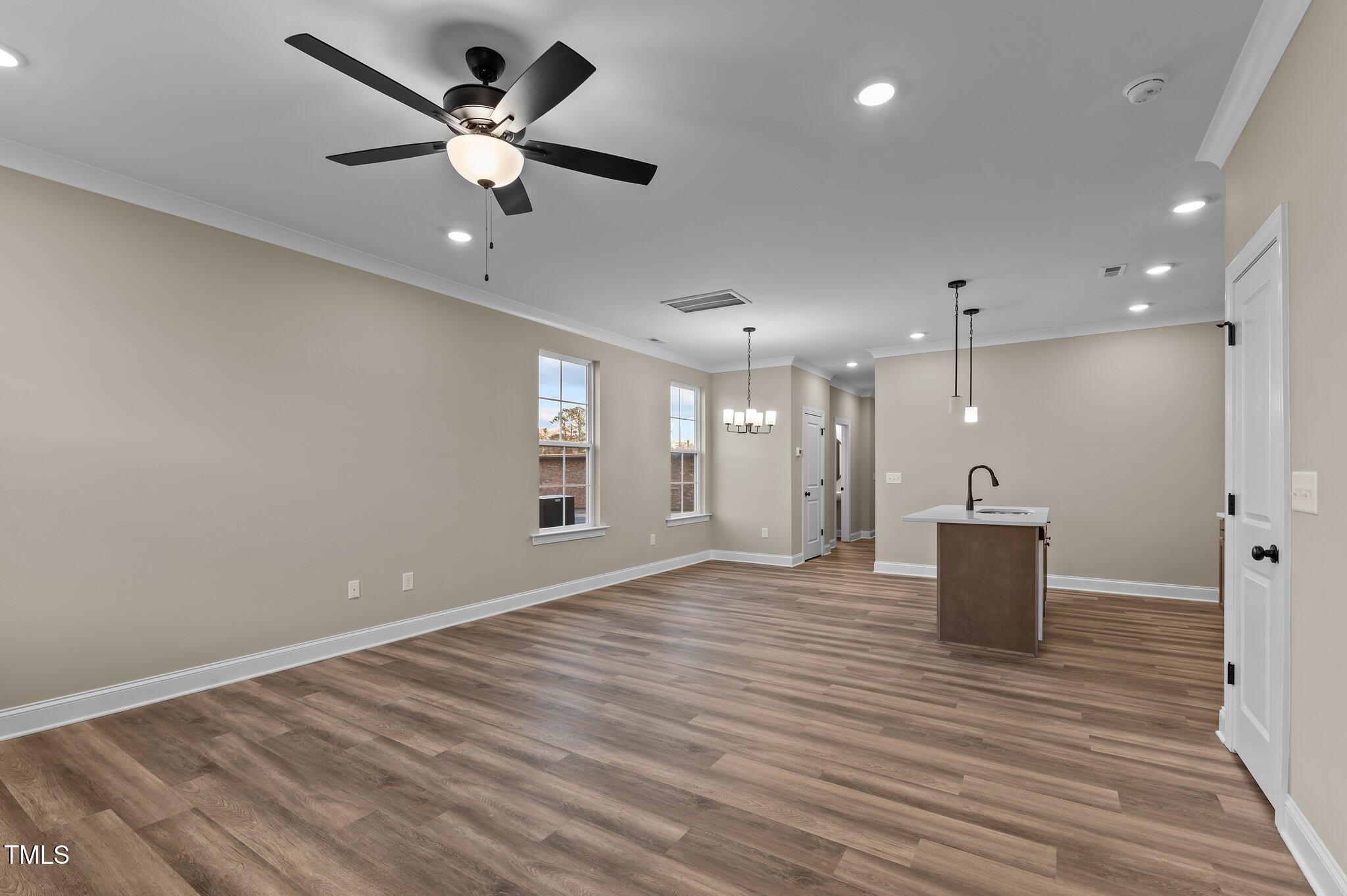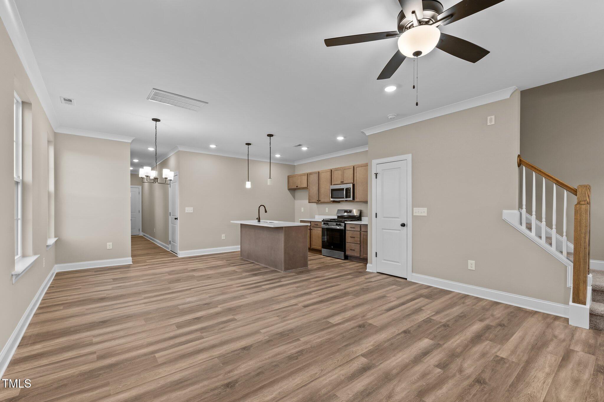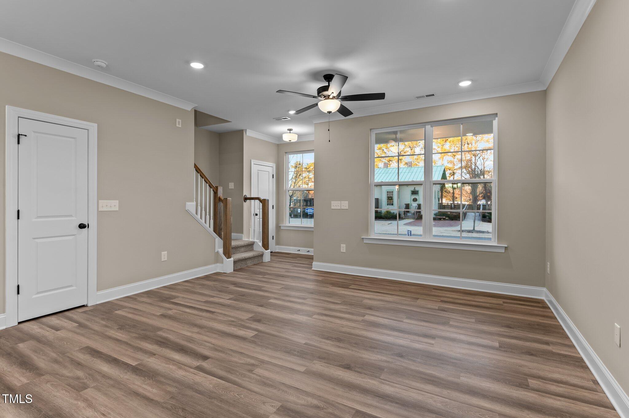 This property features: New construction (2024) custom townhome in Downtown Garner; Upgraded LVP flooring and open concept family room; Kitchen with quartz countertops, custom cabinetry, and stainless steel appliances