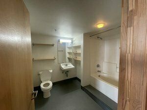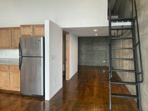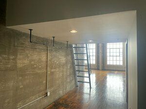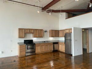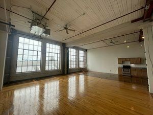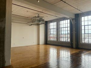 Office space with high ceilings, natural light, and easy access.