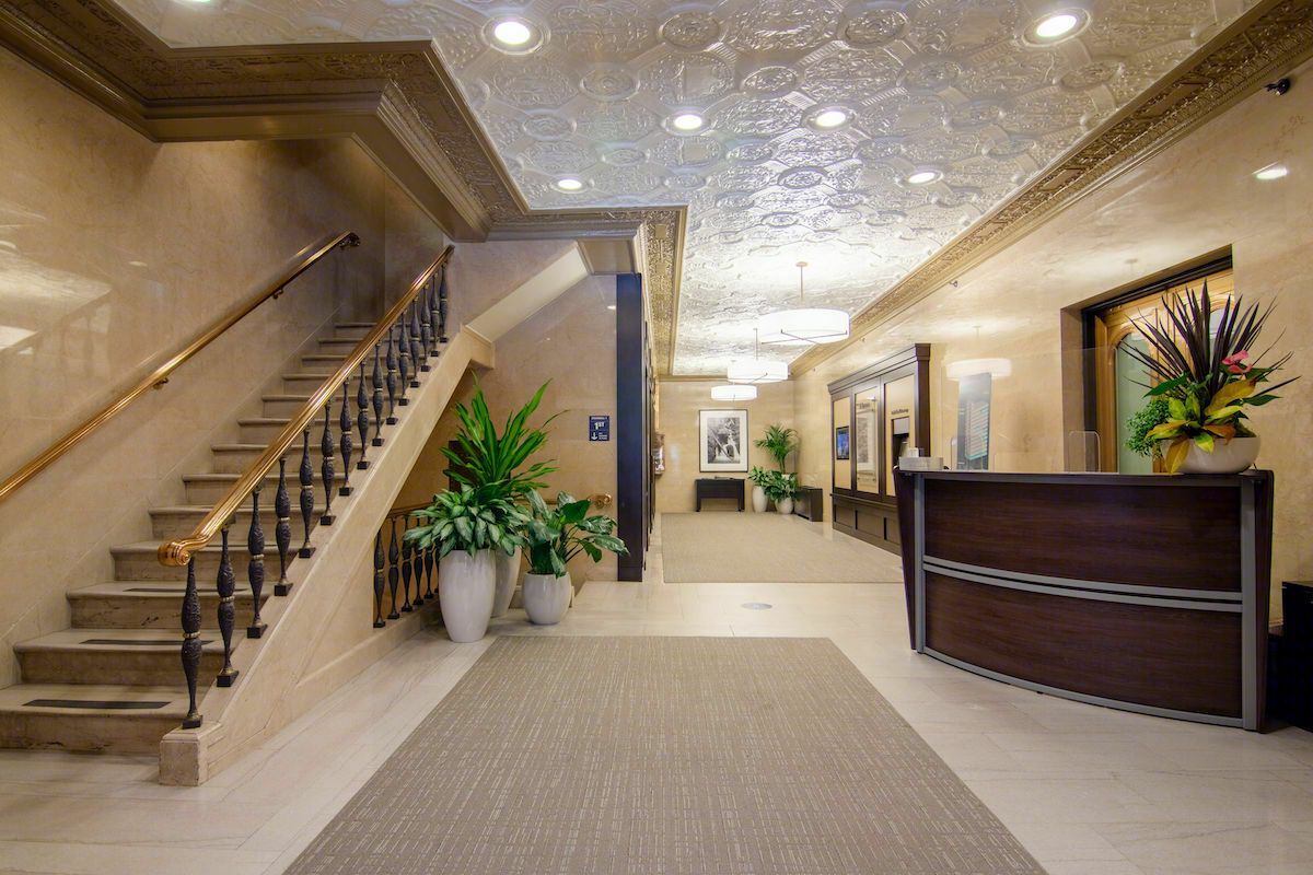 14-story building with renovated amenities and excellent transit access.