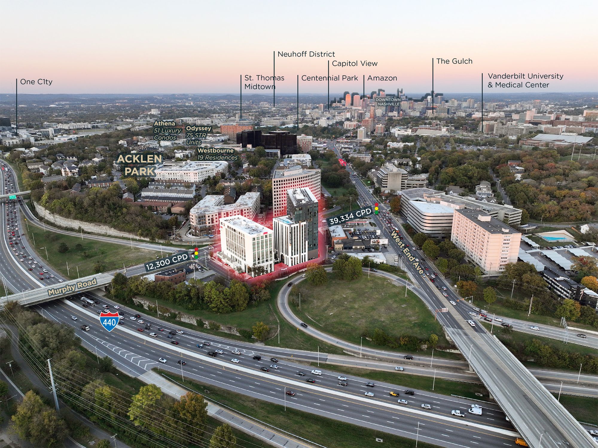 Vibrant West End location with high visibility and accessibility.