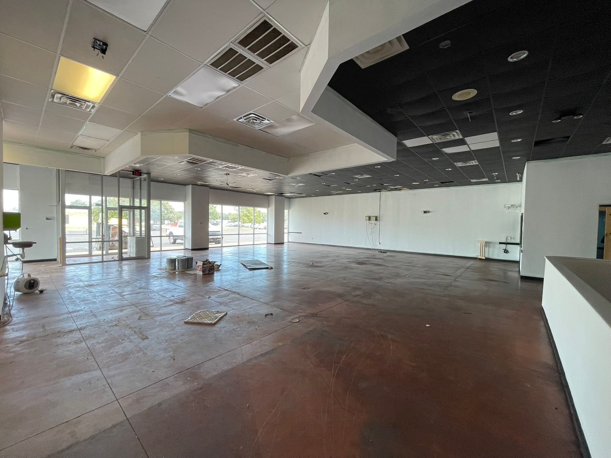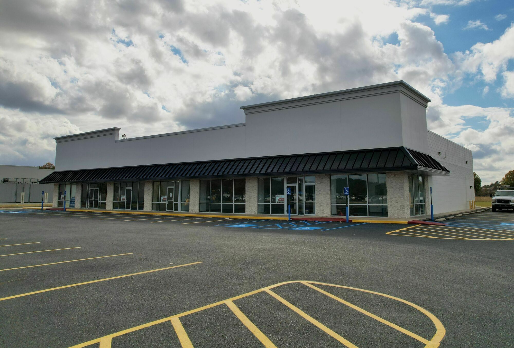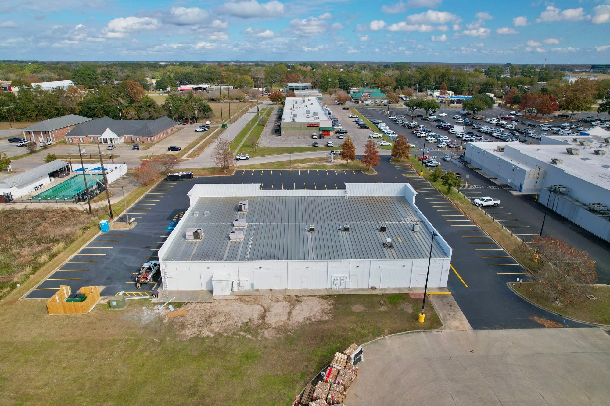 Retail center undergoing renovations, adjacent to high-traffic Walmart Supercenter.