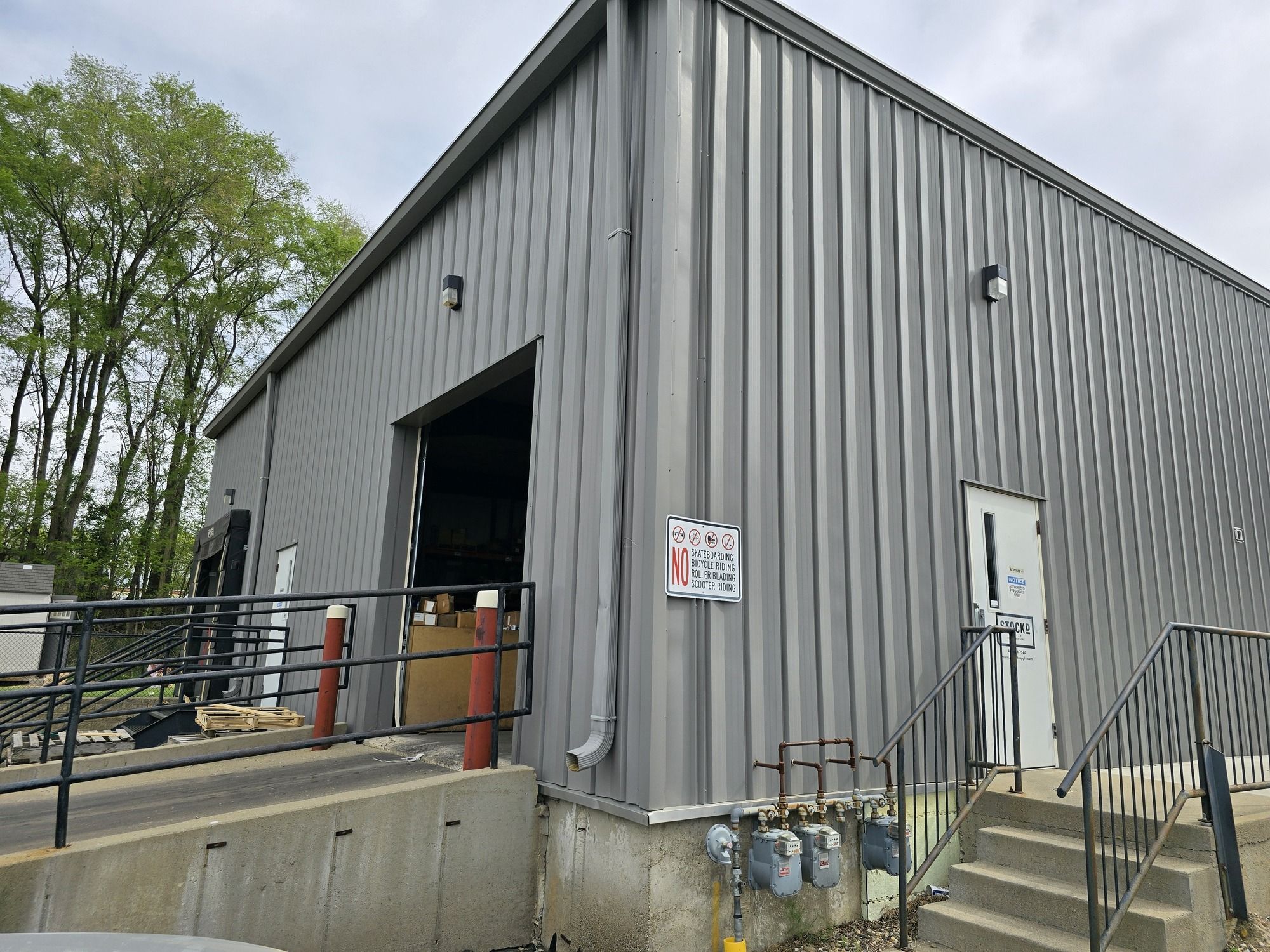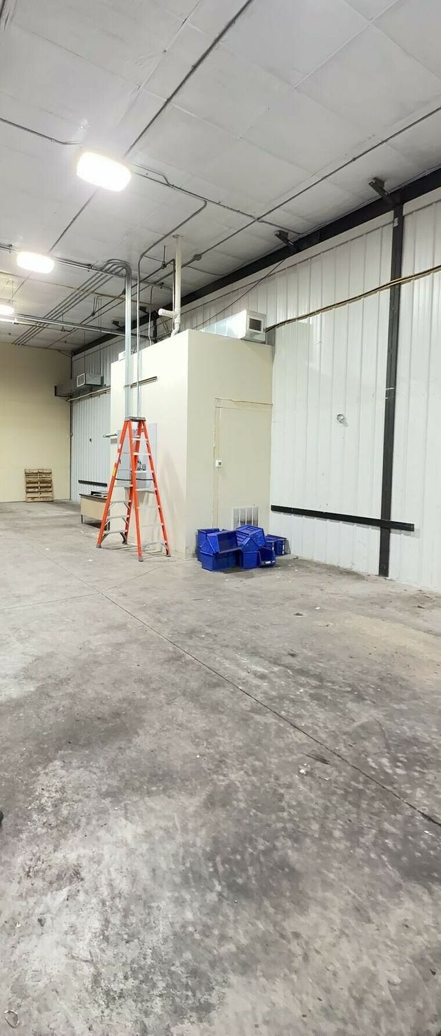 Open warehouse/distribution space with private restroom and overhead doors.