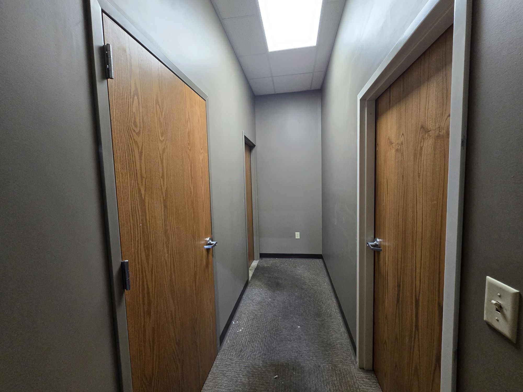 Available for rent is a 3,030 square foot industrial/flex space located within Morgan Square. The space is configured as an open warehouse or distribution center and includes a private restroom. It features two 14-foot overhead doors. Building signage is available. The property is located at 1101 Broadway Avenue, Yankton, SD 57078.