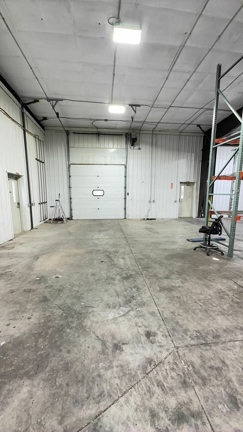Flex space - Open warehouse/distribution space with private restroom and overhead doors.