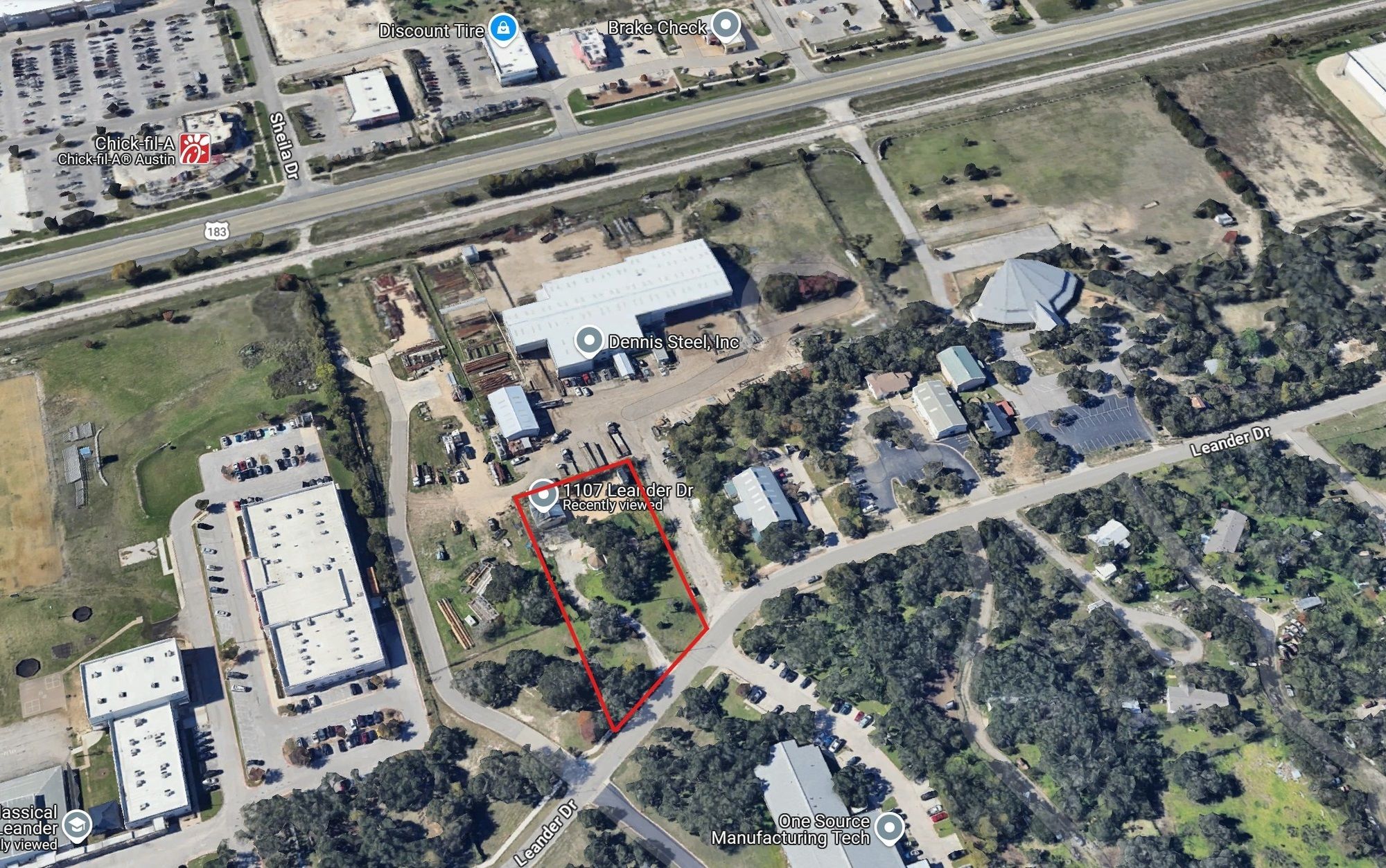 One-acre heavy commercial property in rapidly growing Leander, Texas.