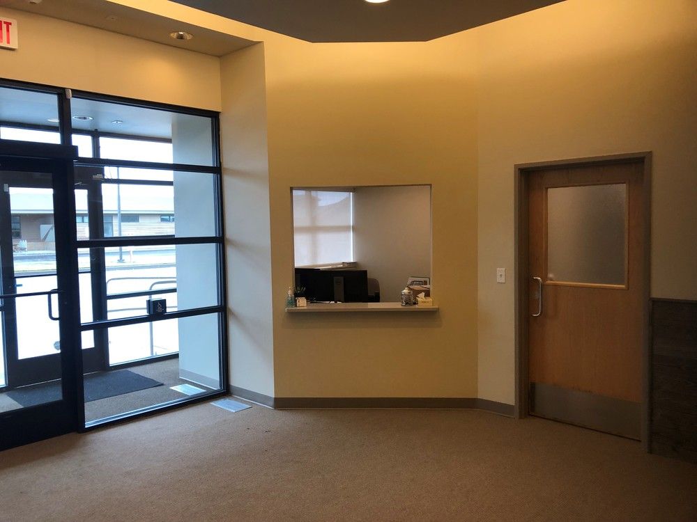 Medical office building with clinical treatment rooms and ample parking.