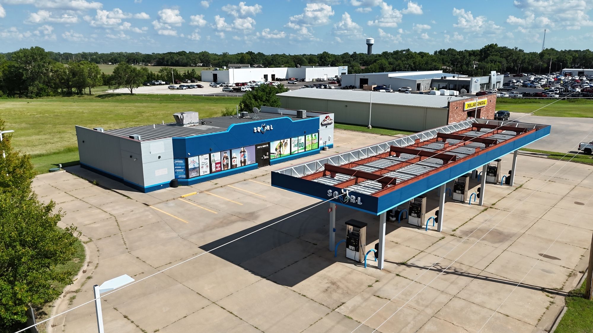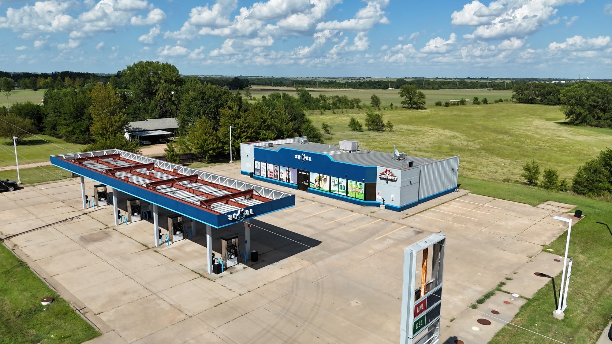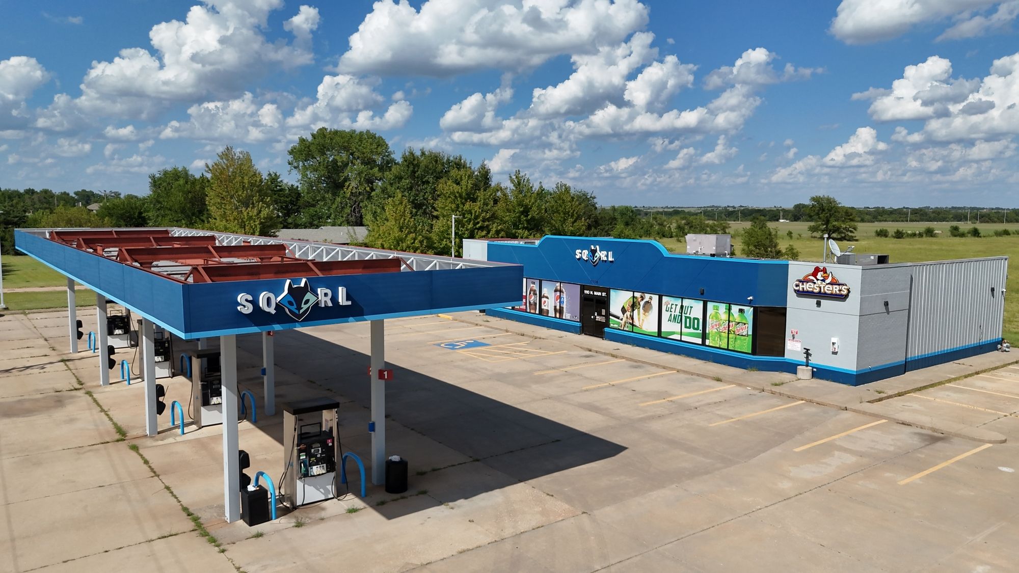 Recently remodeled gas station and convenience store with modern finishes.