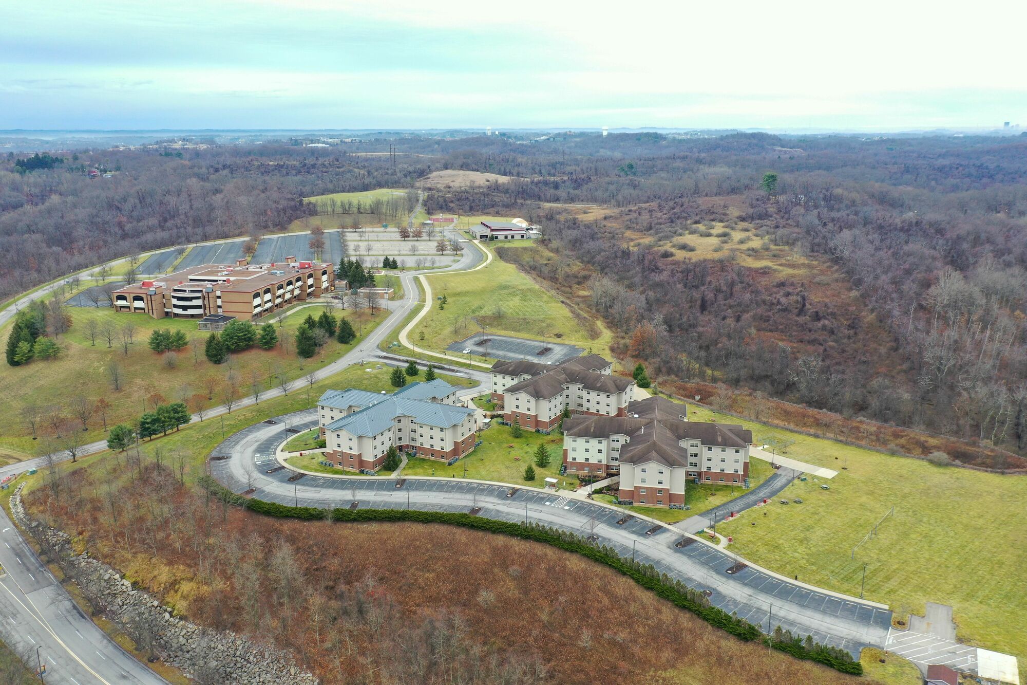 Three-story educational facility, industrial building, student housing, and excess land.