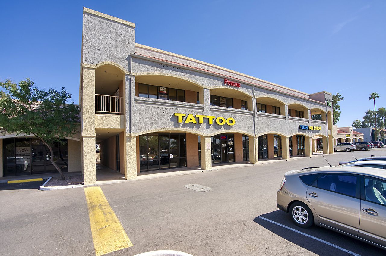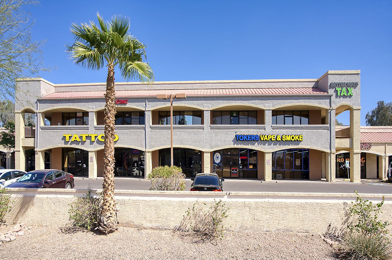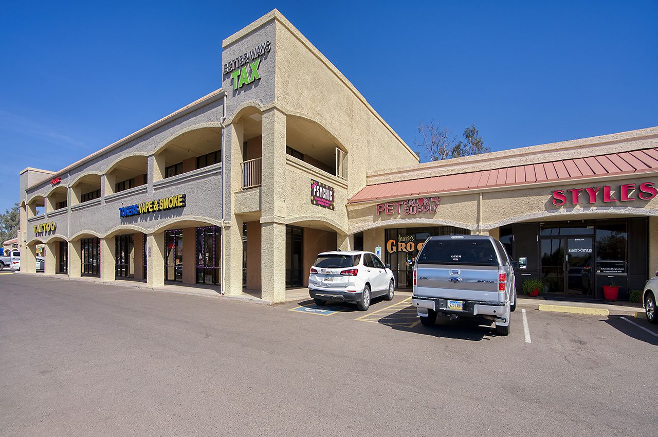 Mixed-use property with office and retail spaces in Gilbert, AZ.