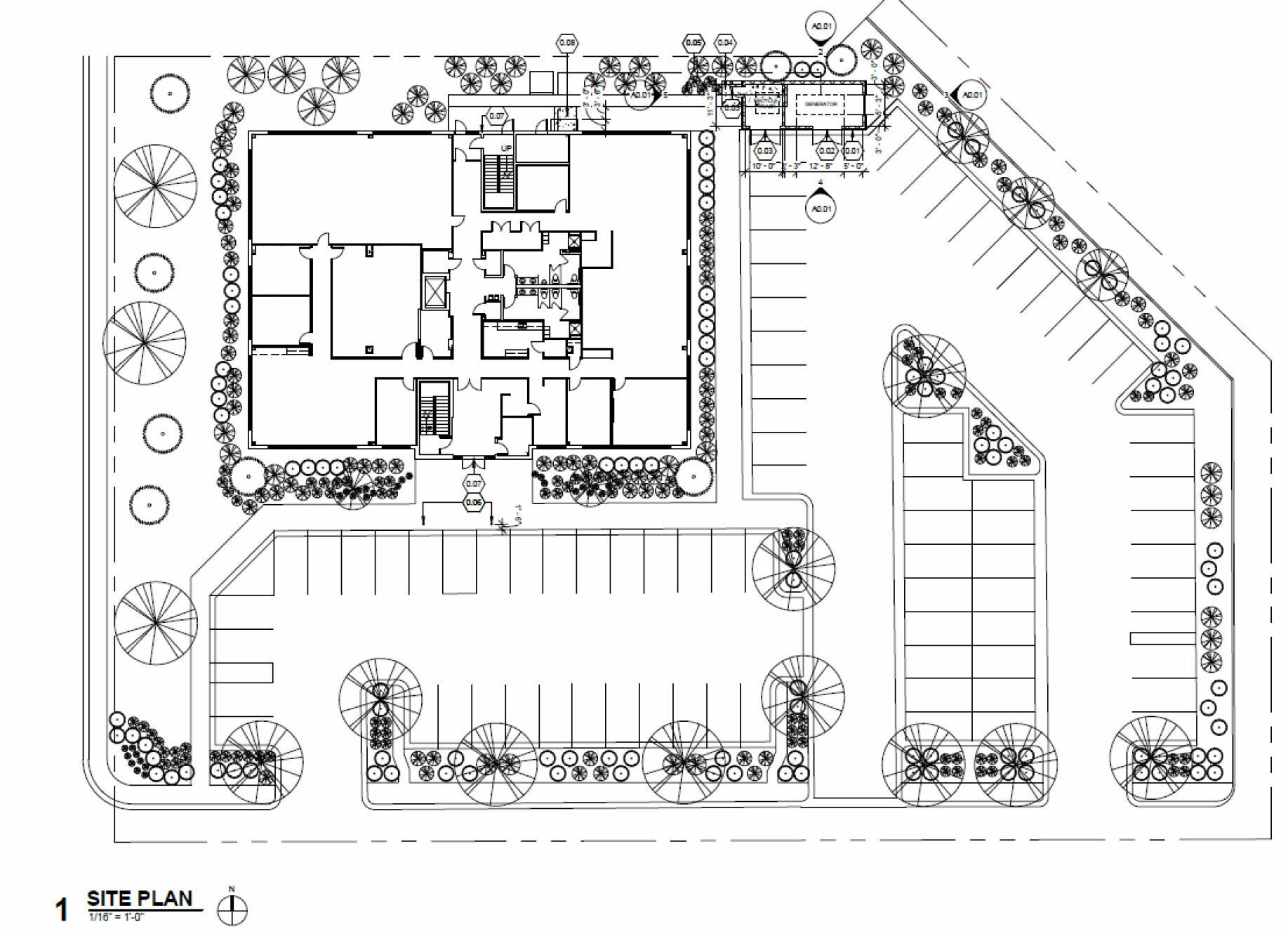 Two-story office building with data center and backup generator.