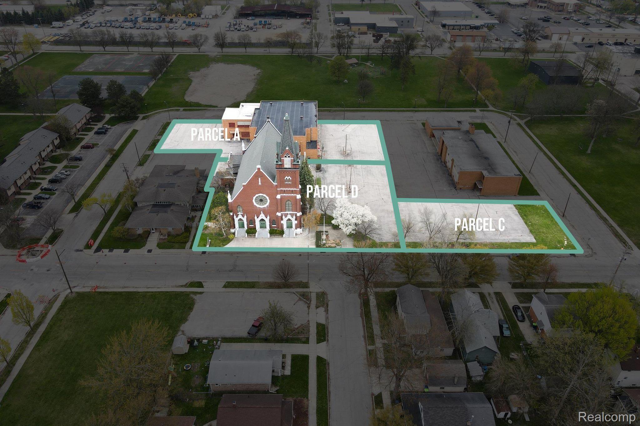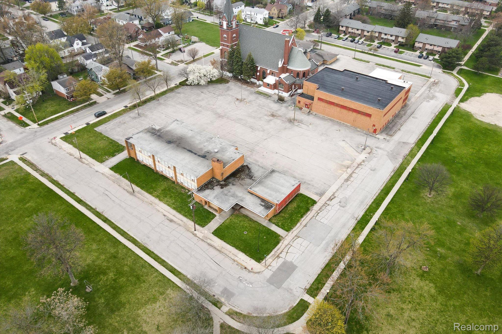 This property features: Large combined square footage (approx. 28,300 sq ft) offering substantial space for redevelopment.; Includes three distinct parcels: church, gymnasium, and parking lot.; Land contract/seller financing available.