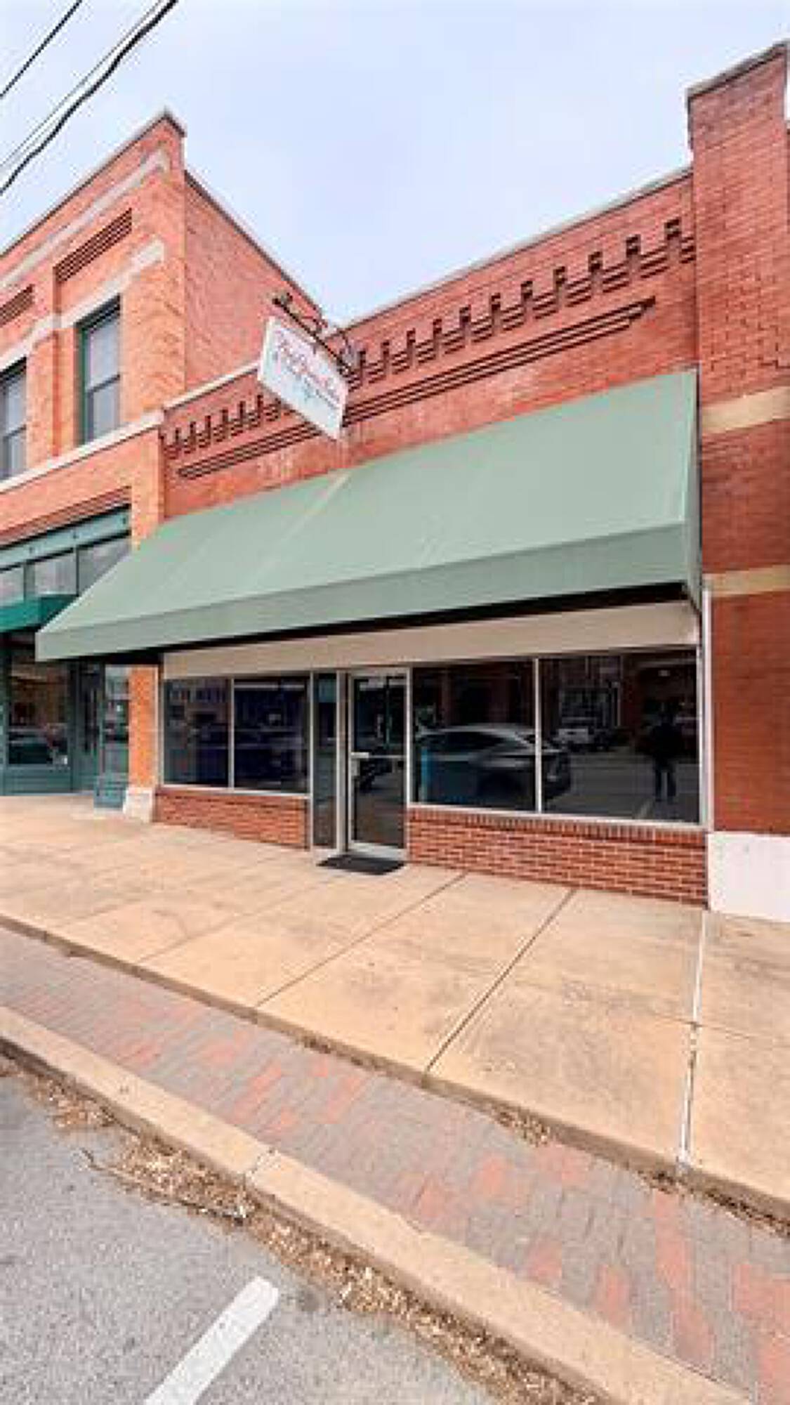 Classic brick storefront in Okmulgee's historic district.