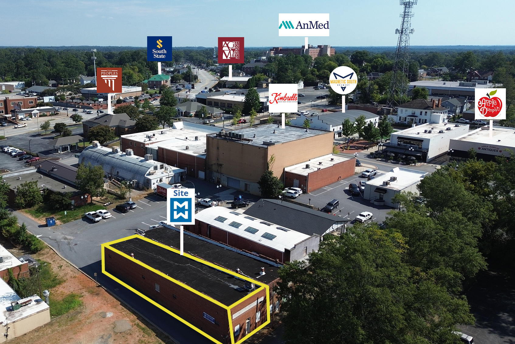 Flex space for lease in downtown Anderson near redevelopments.
