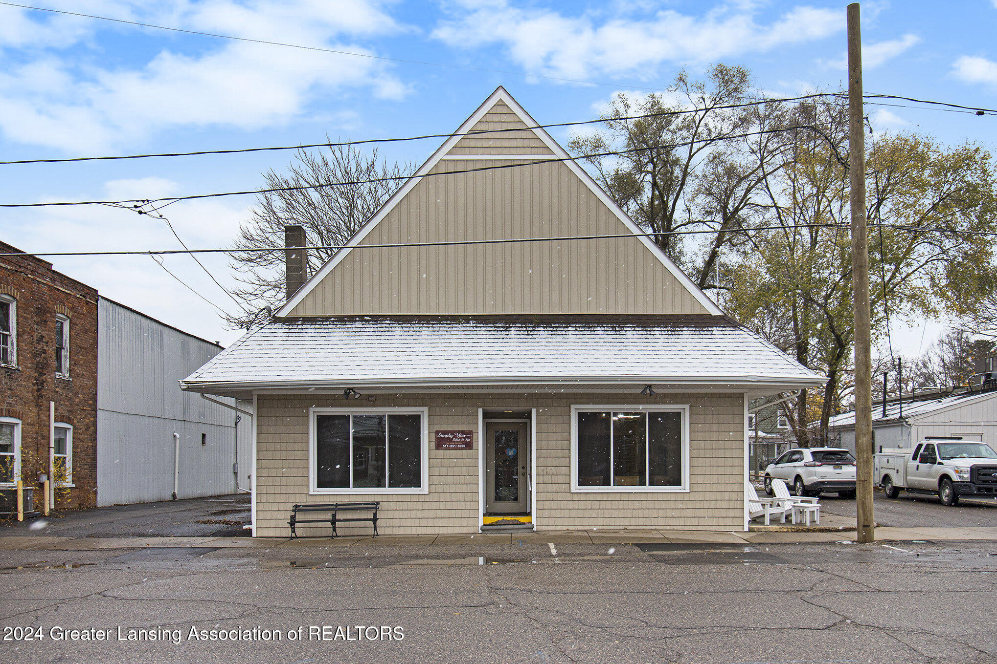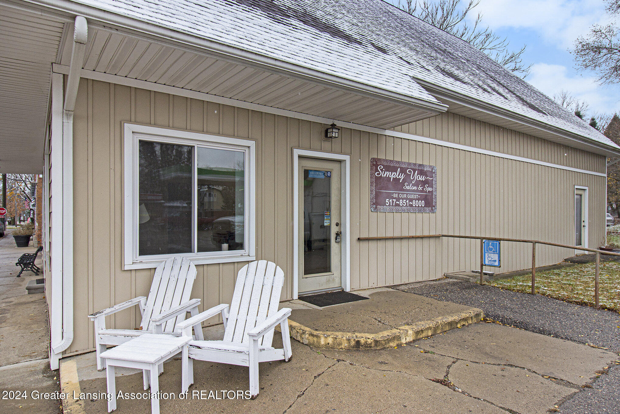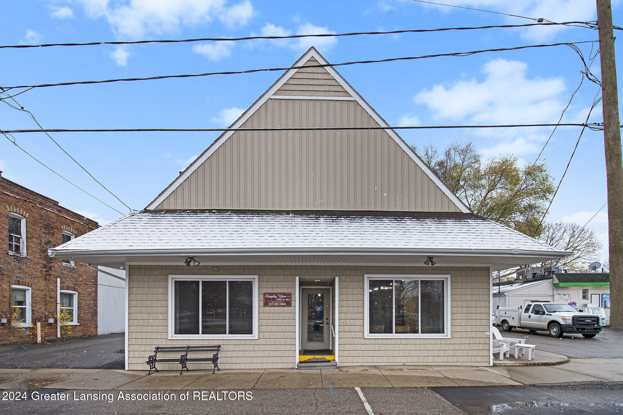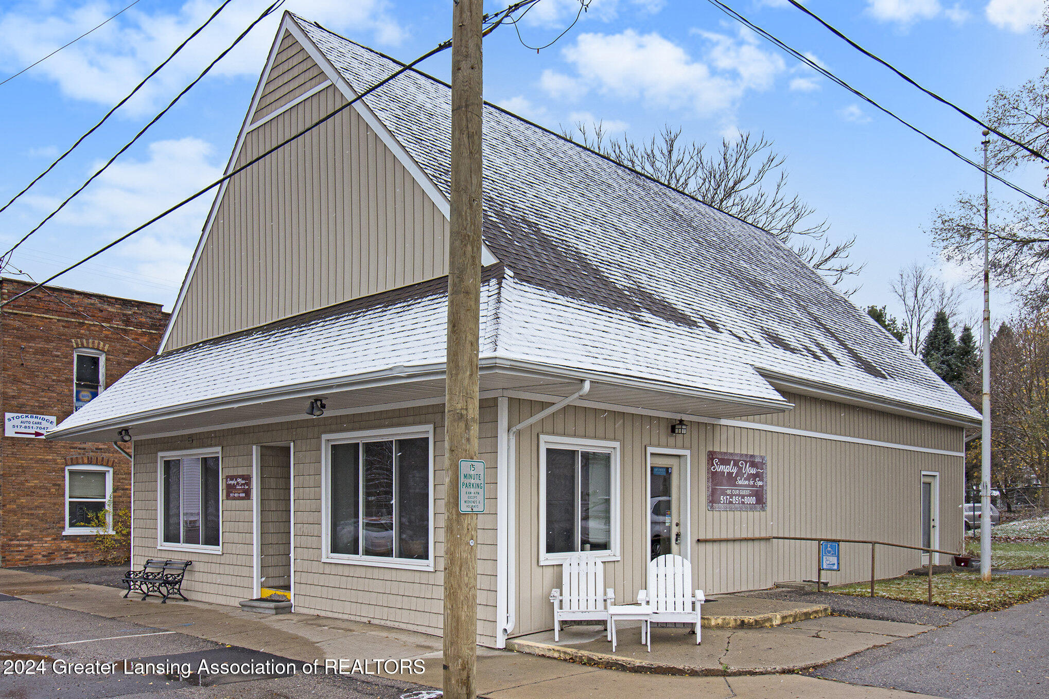 This 2,288 square foot commercial building is located in the village of Stockbridge. The building has undergone updates, including a newer roof, windows, siding, furnace, AC, and water heater. Historically, the building served as a police and fire building, then as the Stockbridge Township office. Most recently, it was used as a salon and spa, and could be operated as a salon again. Multiple entrance points allow for dividing the building into several spaces for multiple business uses. A parking space is included with the parcel, and there is a small fenced green space in the back. The property is located downtown near the town square where community events take place.