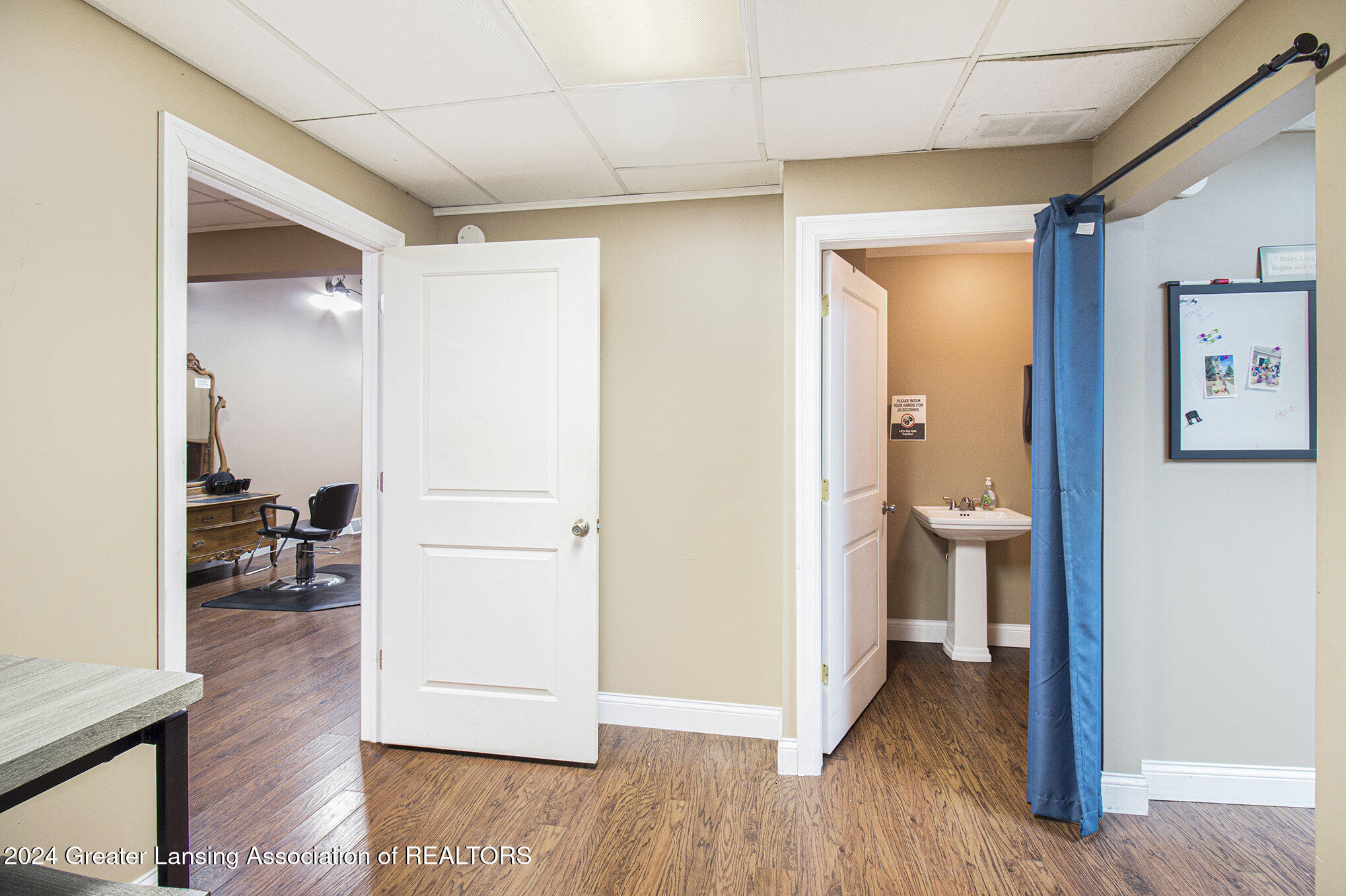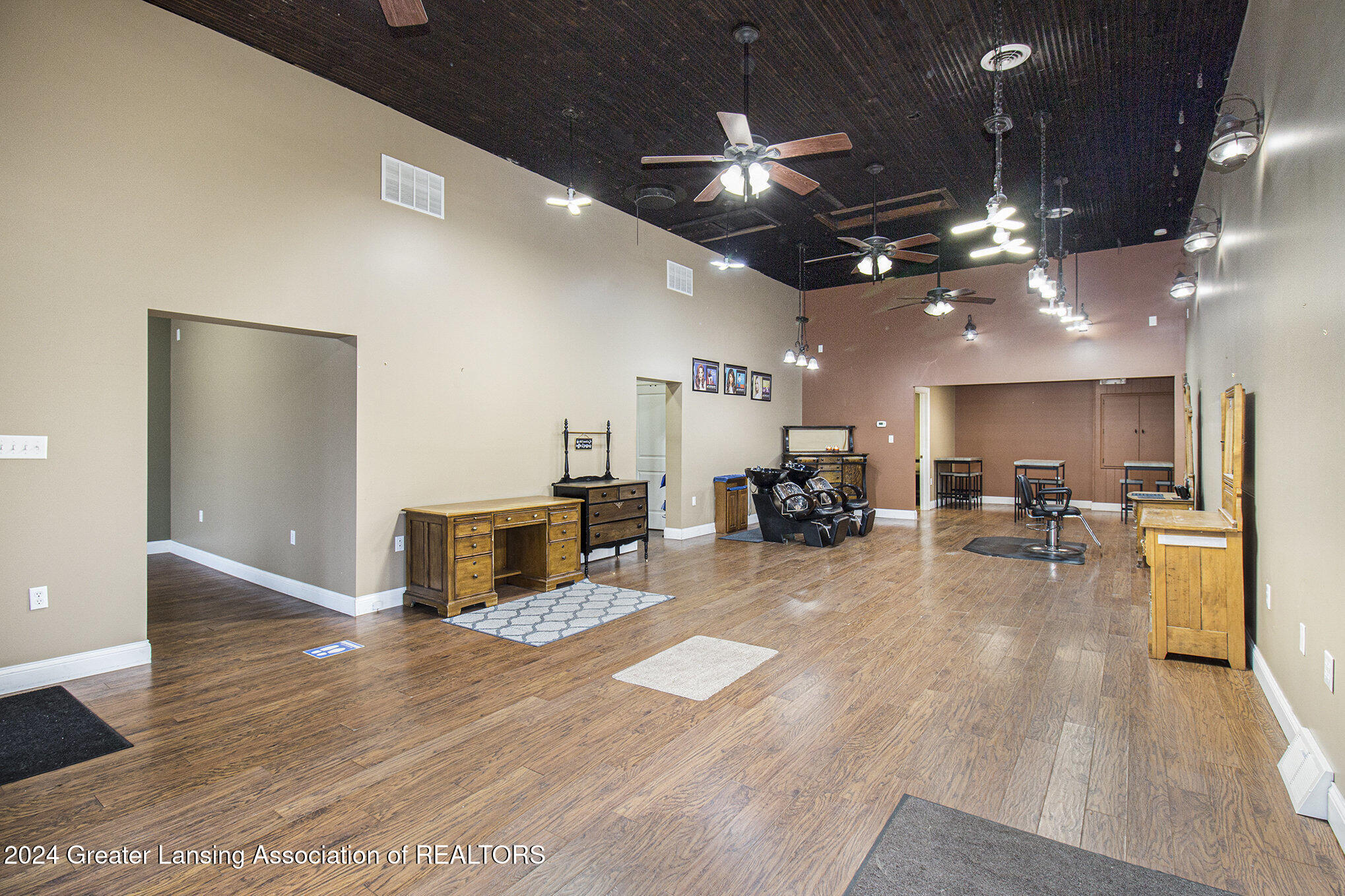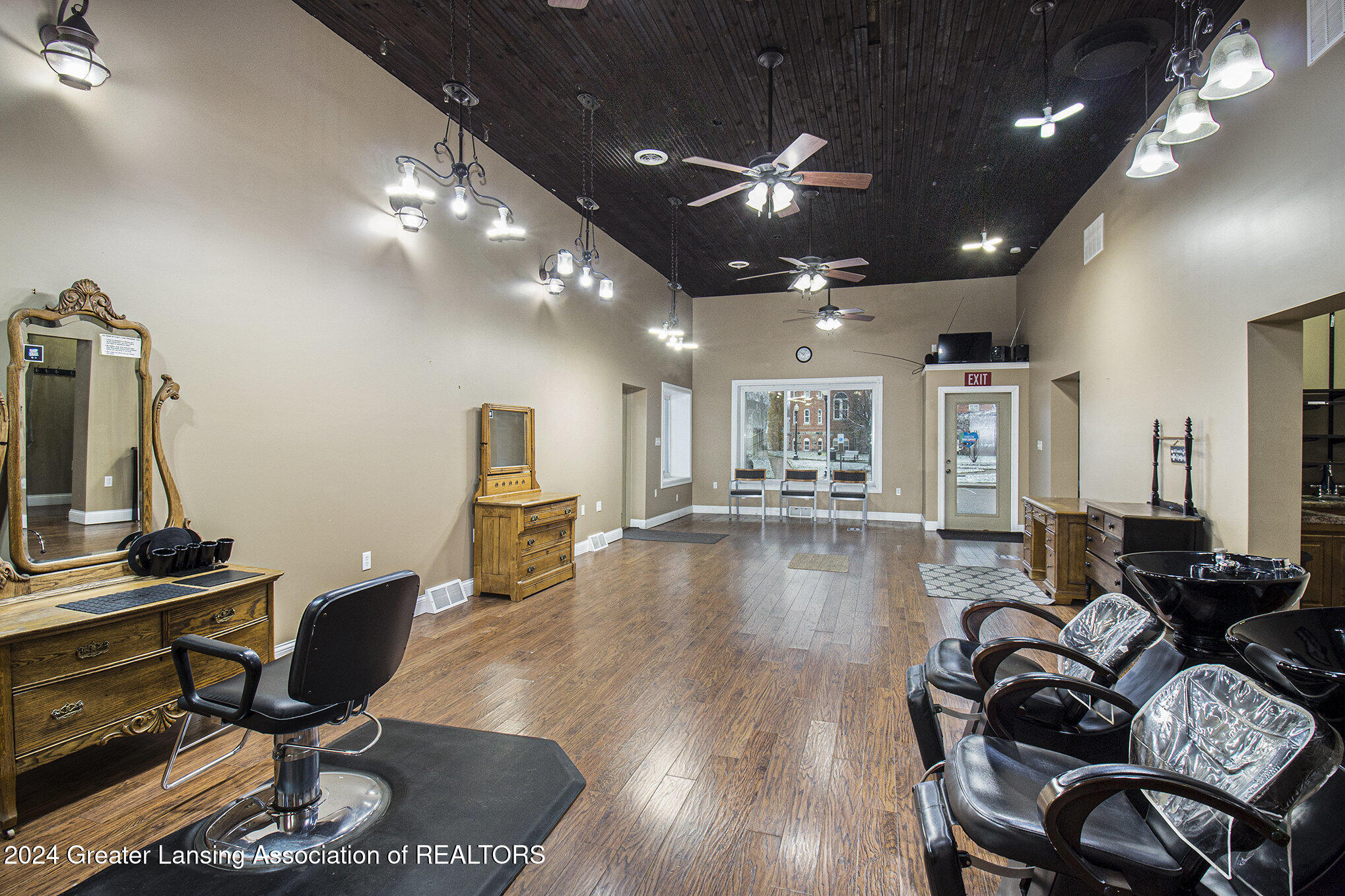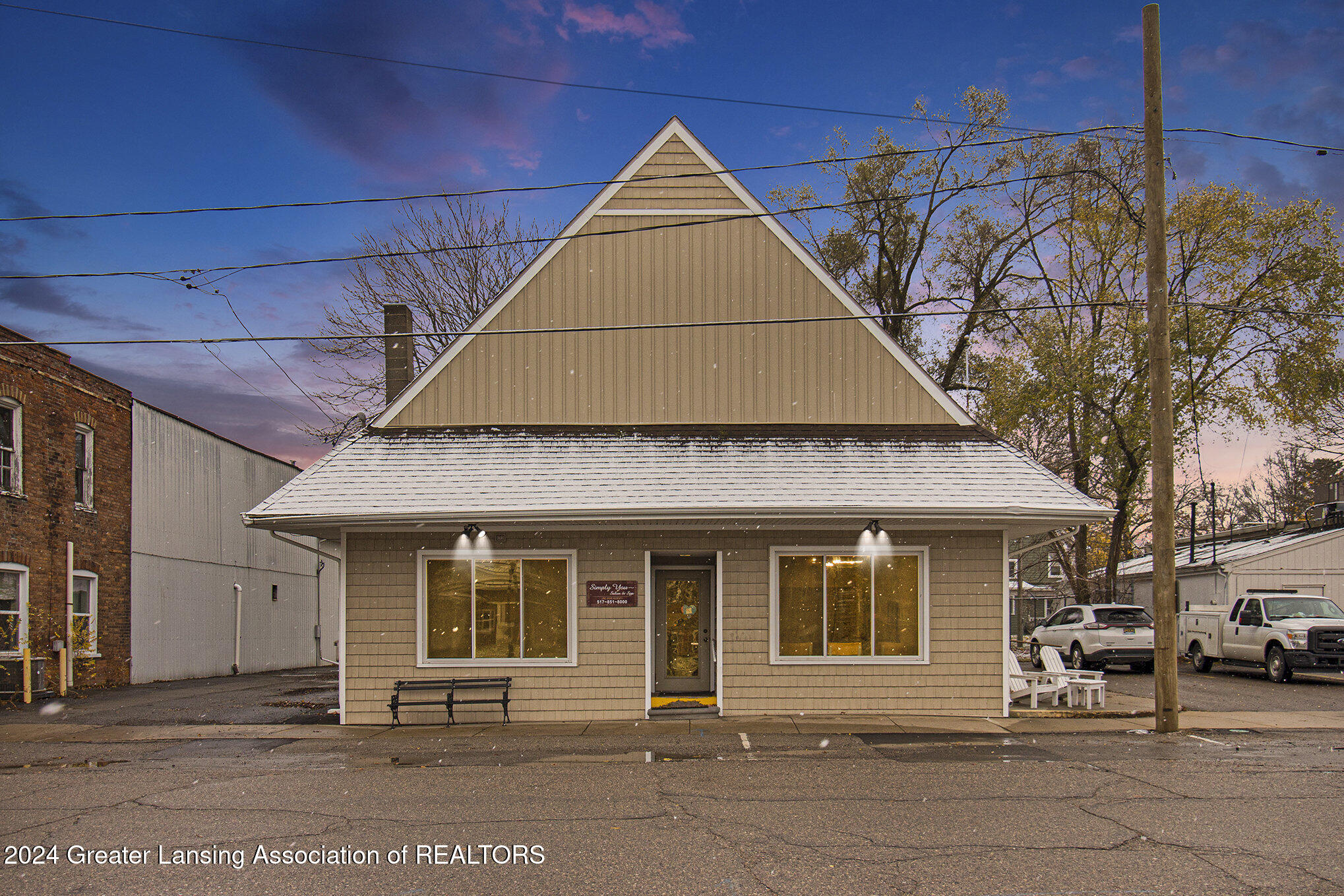 This 2,288 square foot commercial building is located in the village of Stockbridge. The building has undergone updates, including a newer roof, windows, siding, furnace, AC, and water heater. Historically, the building served as a police and fire building, then as the Stockbridge Township office. Most recently, it was used as a salon and spa, and could be operated as a salon again. Multiple entrance points allow for dividing the building into several spaces for multiple business uses. A parking space is included with the parcel, and there is a small fenced green space in the back. The property is located downtown near the town square where community events take place.
