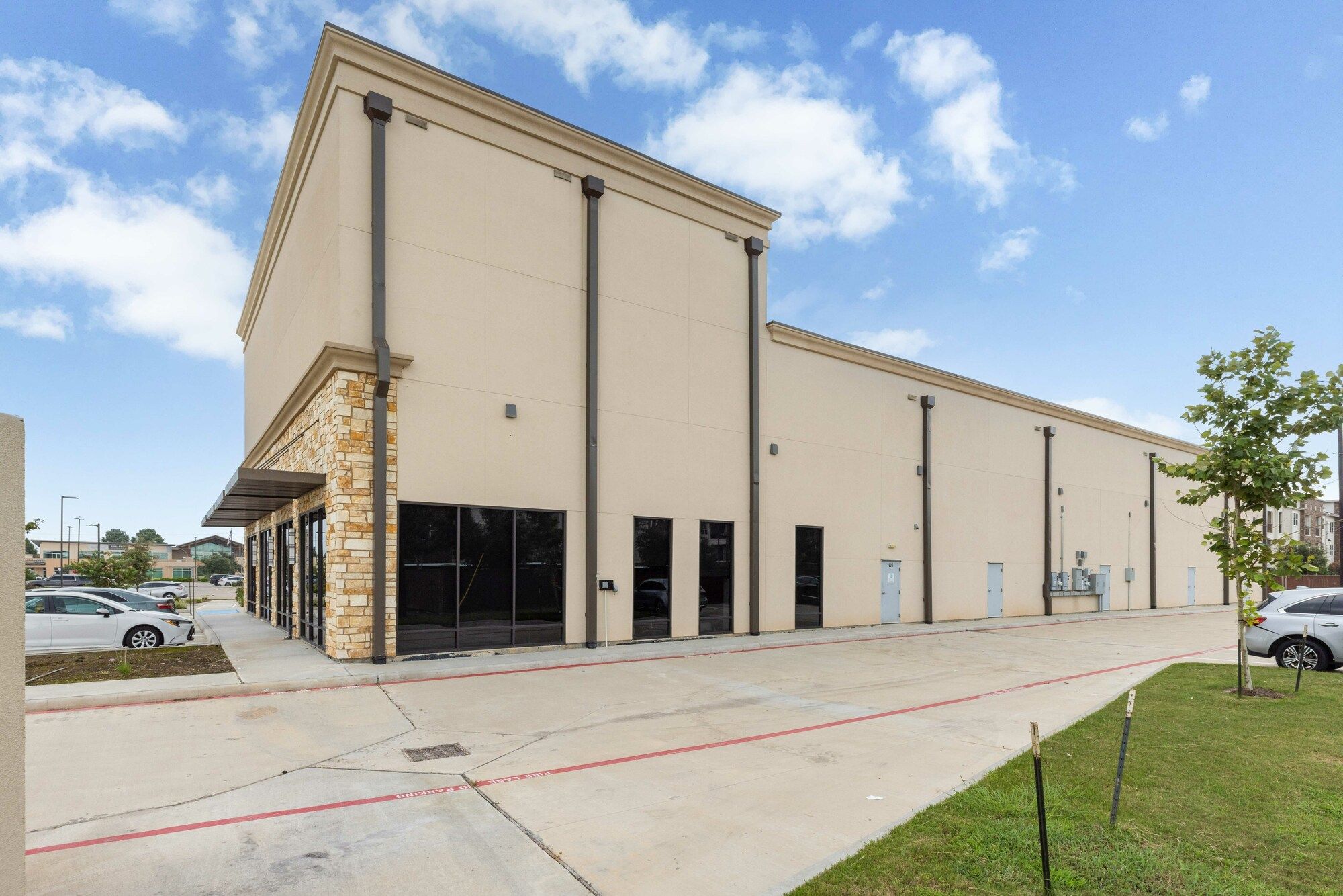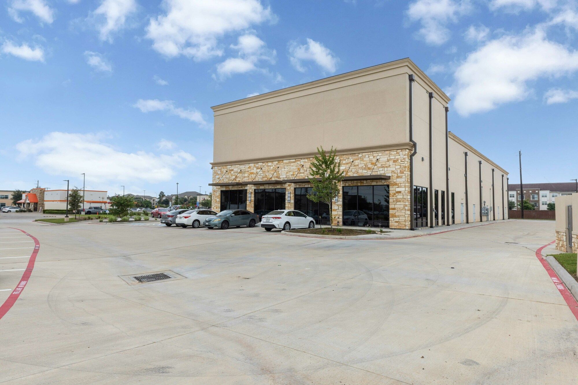 Newly constructed retail space in a mixed-use development.