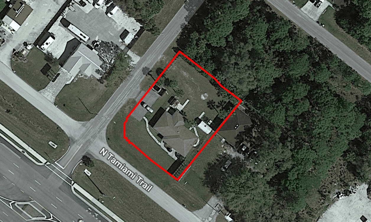 Located in Port Charlotte, FL, this 1,993 square foot building, constructed in 1982, is suitable for office or office building use. The property is zoned CG and features two sheds measuring 60 and 200 square feet. Situated on US 41/Tamiami Trail, the property benefits from frontage on US 41, providing visibility and accessibility. Its location along this major thoroughfare offers high traffic volume, making it an attractive prospect for businesses seeking a strategically positioned commercial property. The corner building's placement enhances its appeal and potential for success.