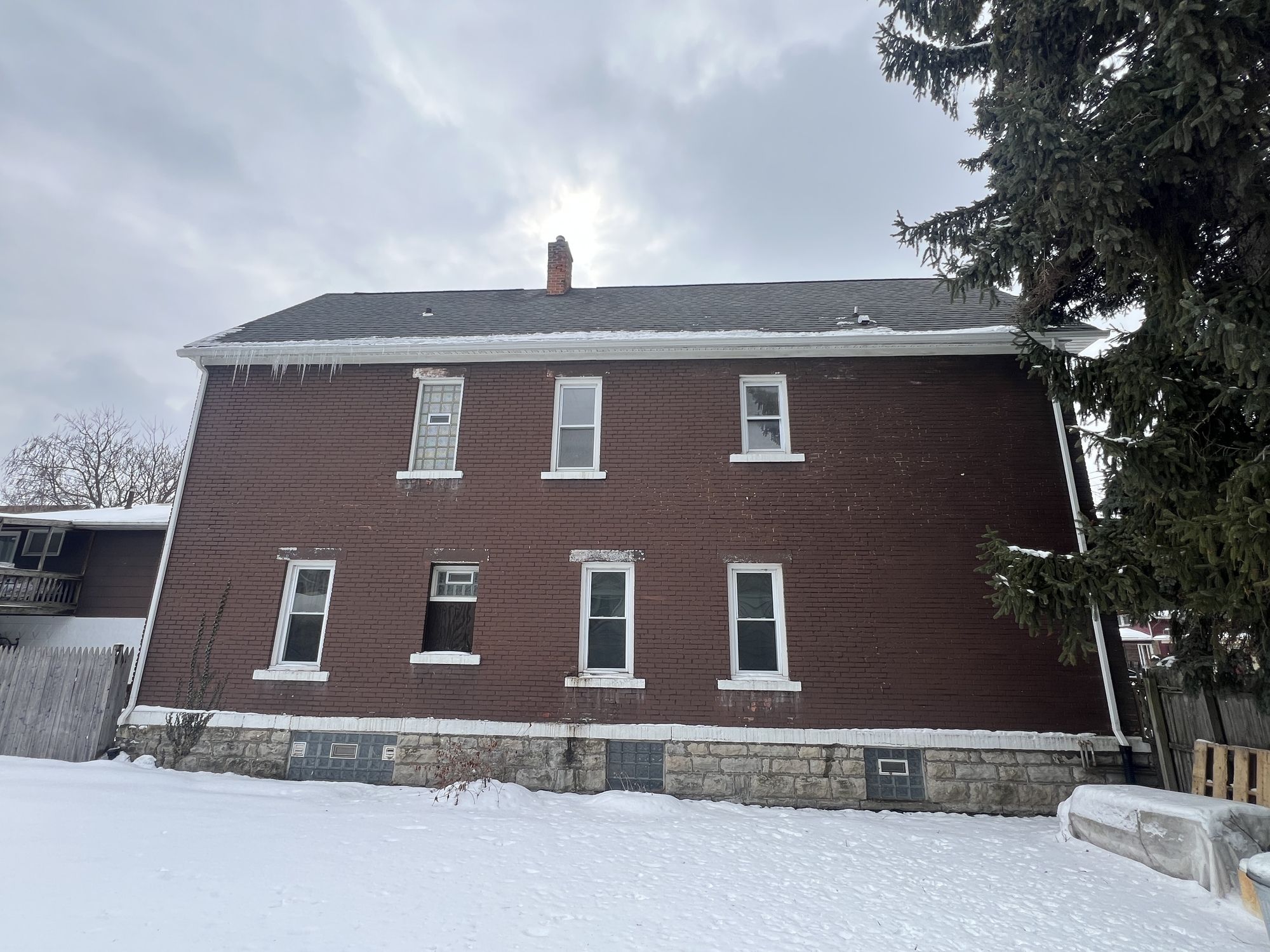This property features a four-unit residential apartment building, offering potential cash flow. The property consists of two buildings with a combined total of 2,428 square feet, including 7 bedrooms and 4 bathrooms. Building 1 contains an upper and lower 2-bedroom, 1-bath apartment, and a 1-bedroom, 1-bath upper studio apartment. Building 2 features a large 2-bedroom, 1-bath apartment situated above three single-car garage bays. Off-street parking is available, and the property includes a backyard. The property is located on Pine Ridge Road near Walden Ave.
