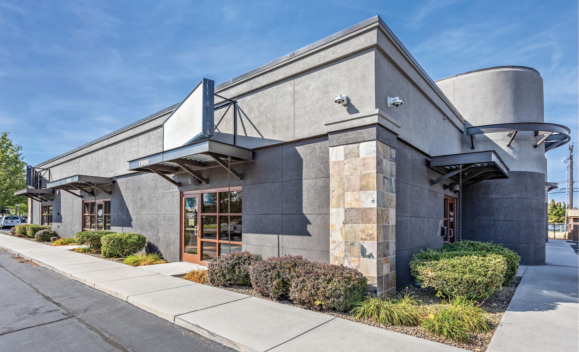 Office space with high visibility and ample shared parking.