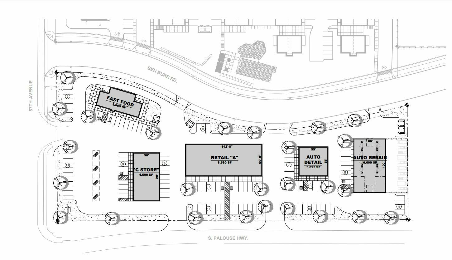 This commercial land is situated on a high-traffic corner, offering build-to-suit opportunities to customize the space to fit specific business needs. The location benefits from additional foot traffic and visibility due to its proximity to a DQ Restaurant. It is also adjacent to a Divines Fasmart 76 gas station, providing conveniences and customer flow. The property is near the Spokane Transit Moran Station Park & Ride, making it ideal for businesses targeting daily commuters. Located just south of E. 57th Ave on S. Palouse Hwy, the property encompasses 76665 square feet.