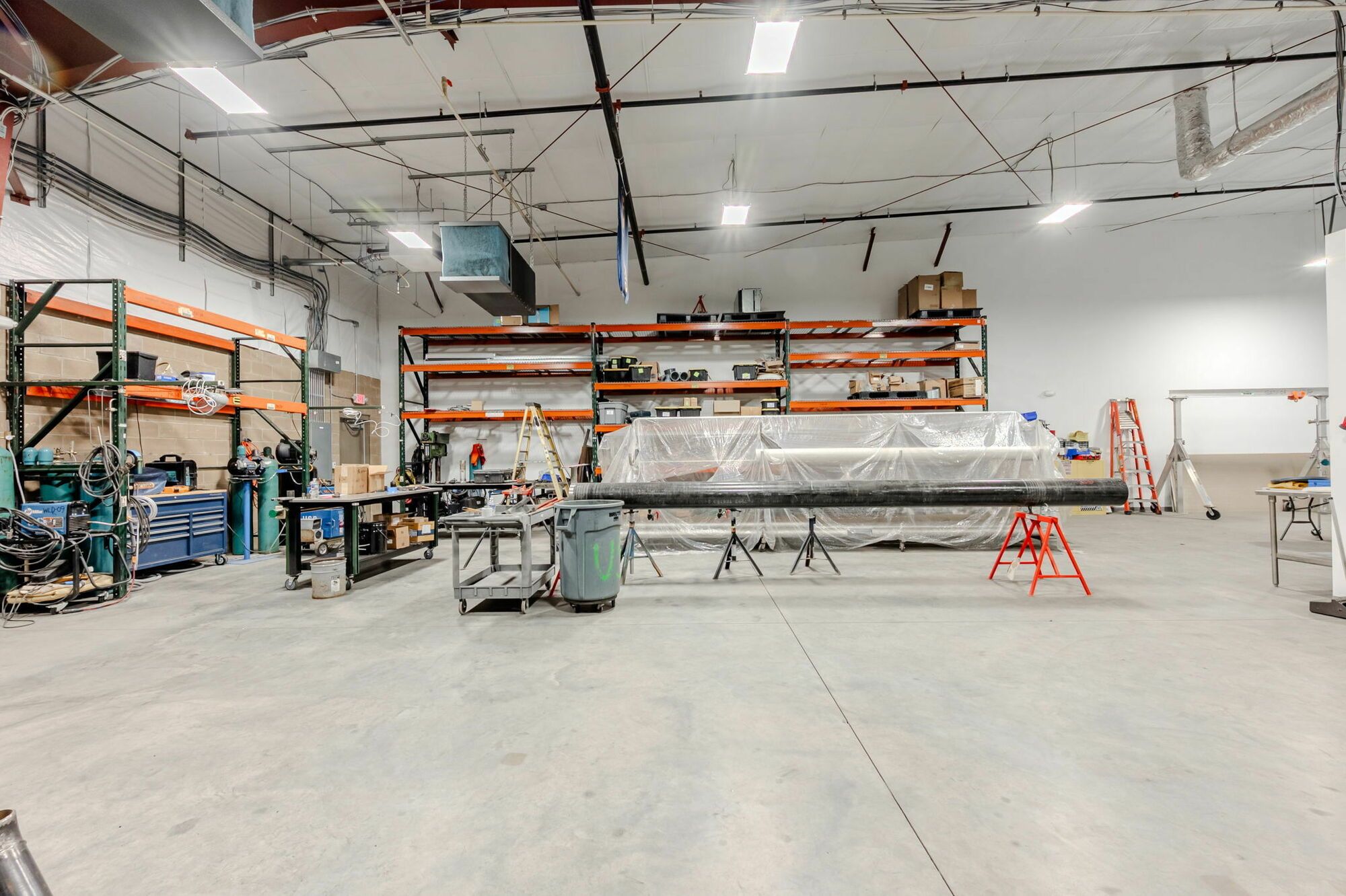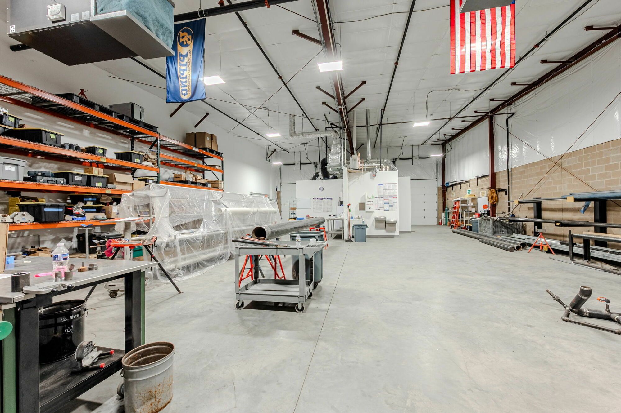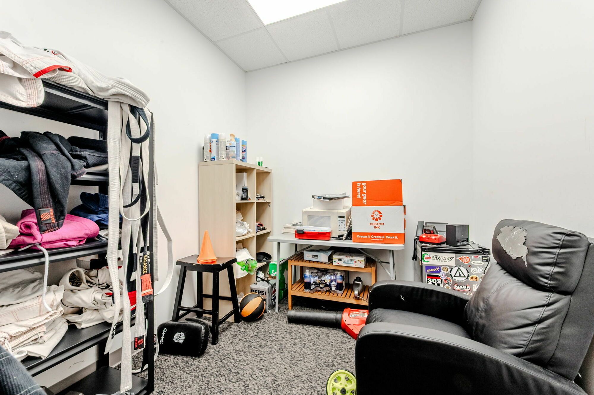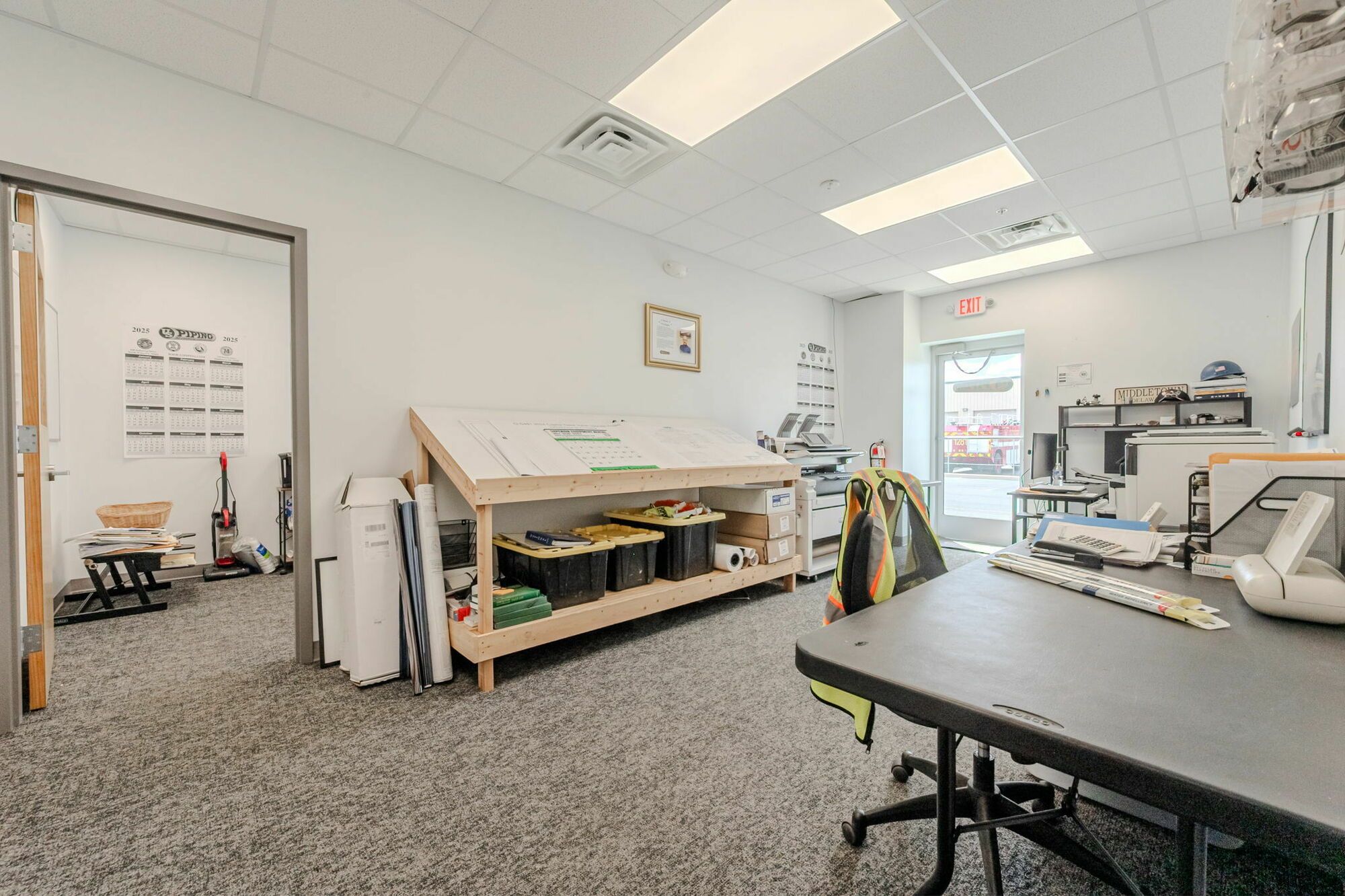 Flex space with HVAC office, restroom, and mop sink.