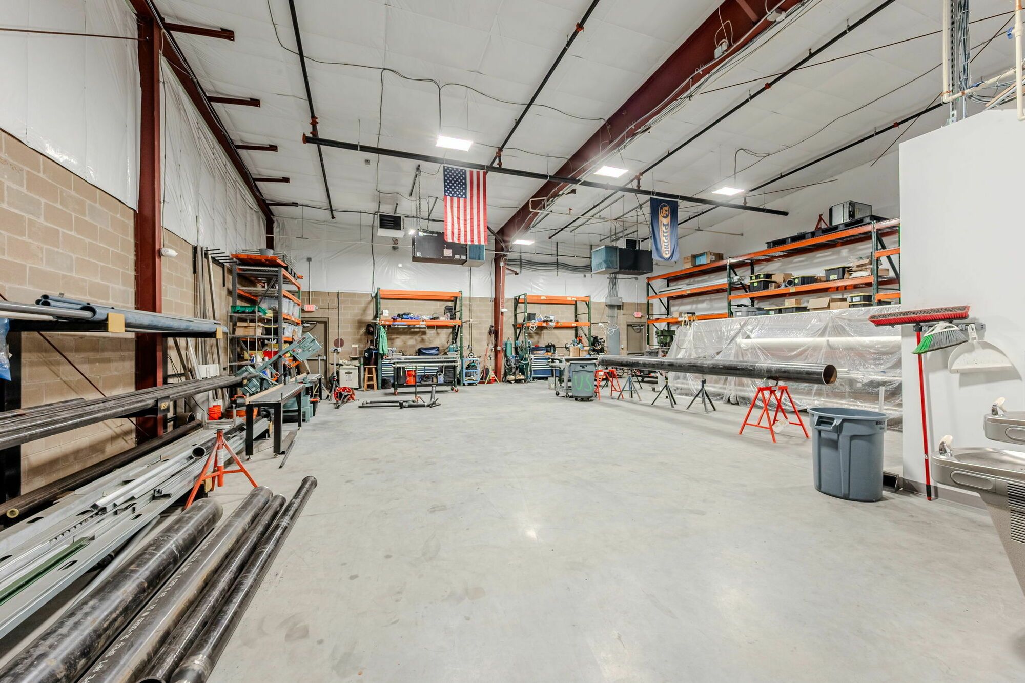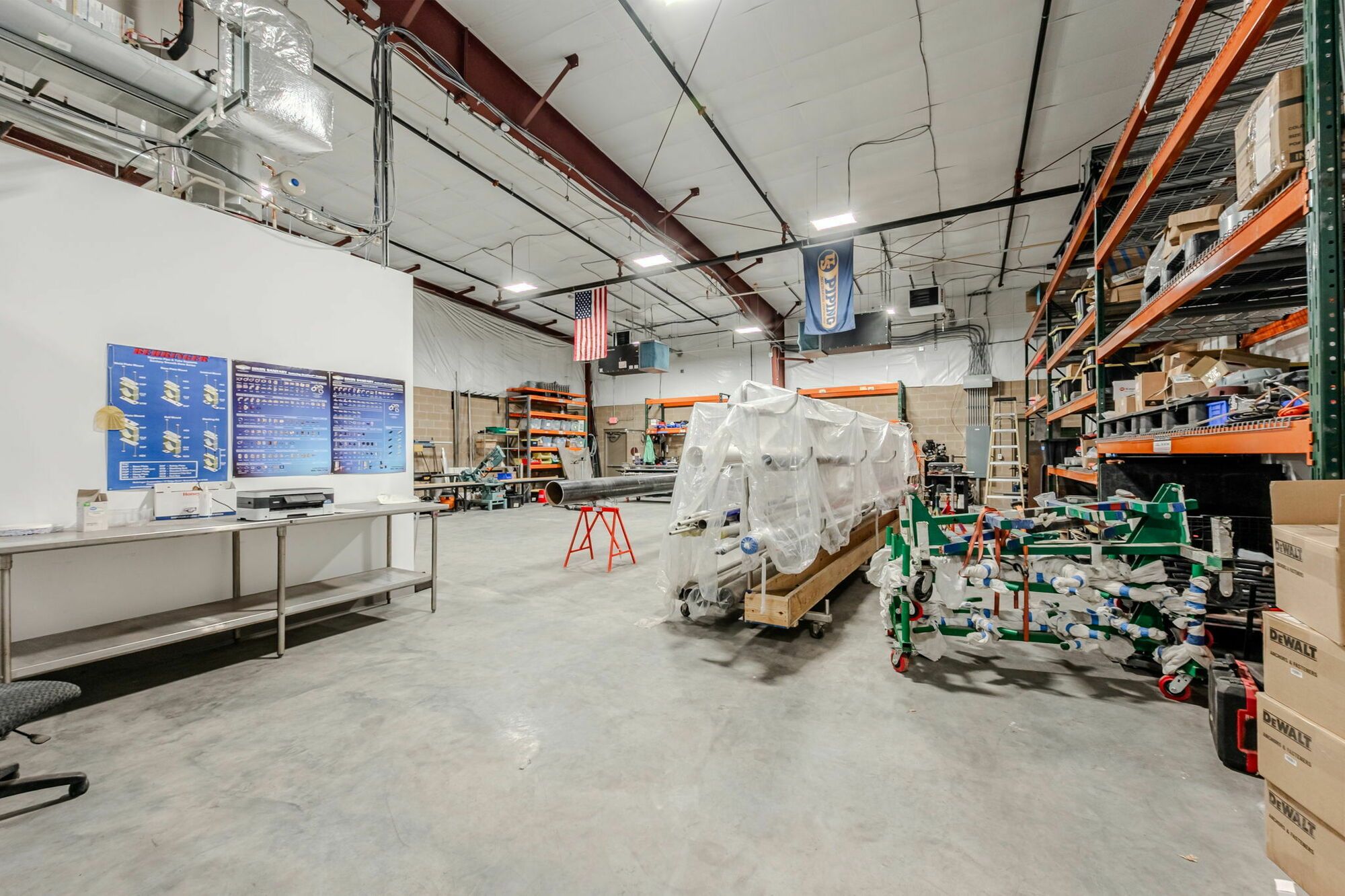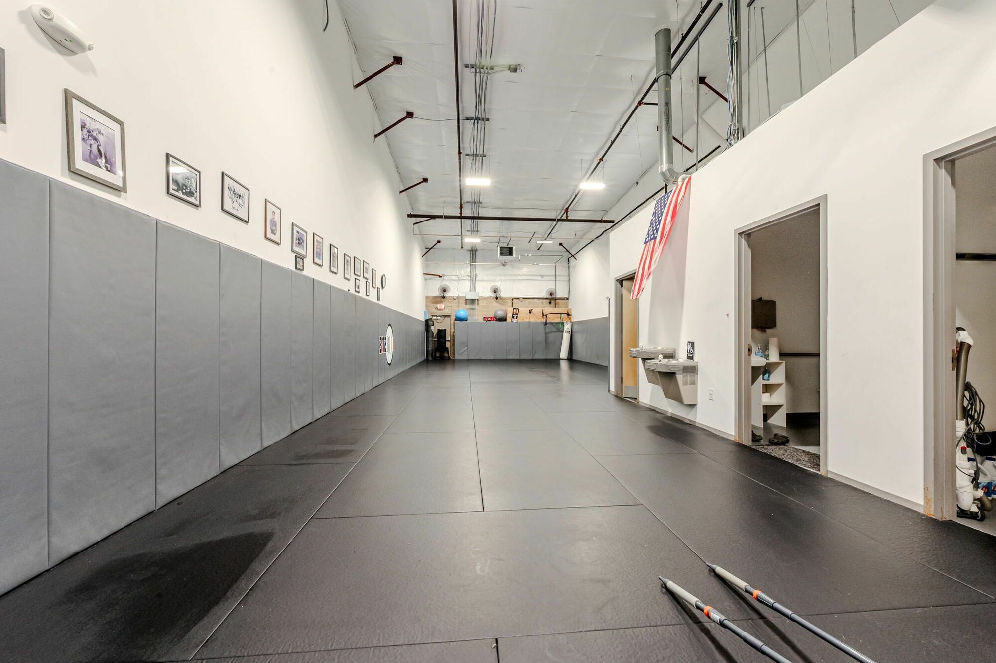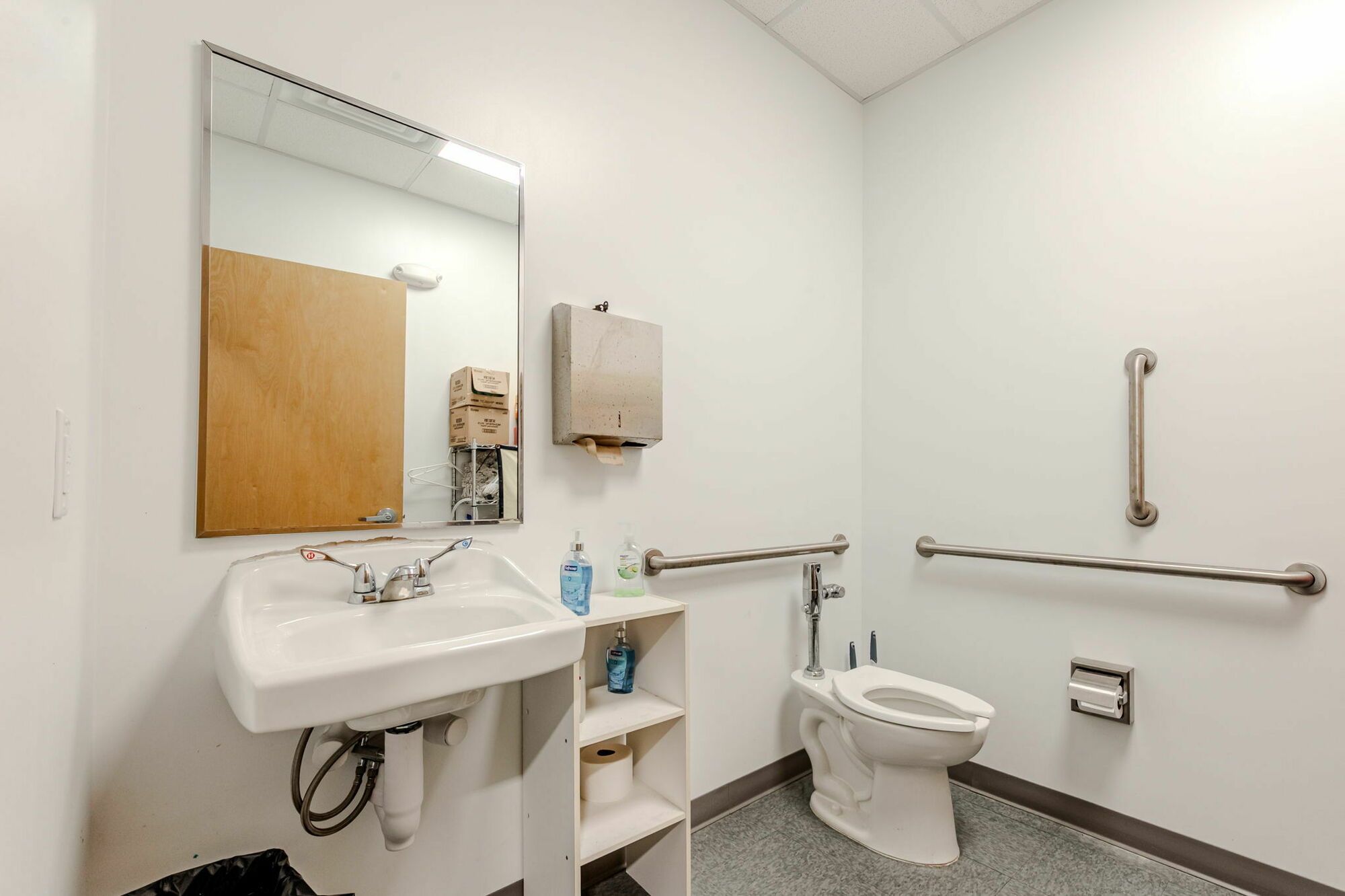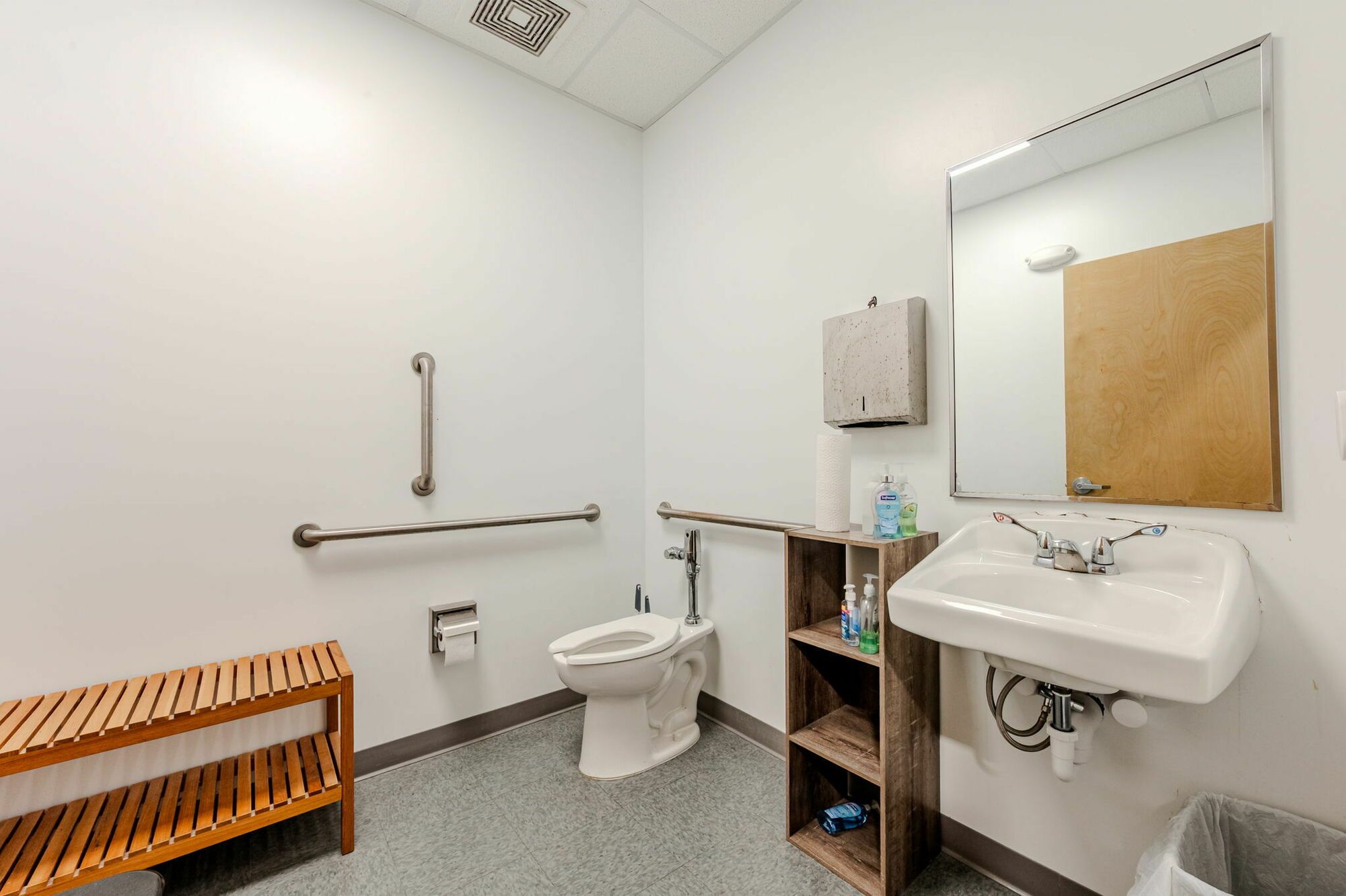Flex space with HVAC office, restroom, and mop sink.