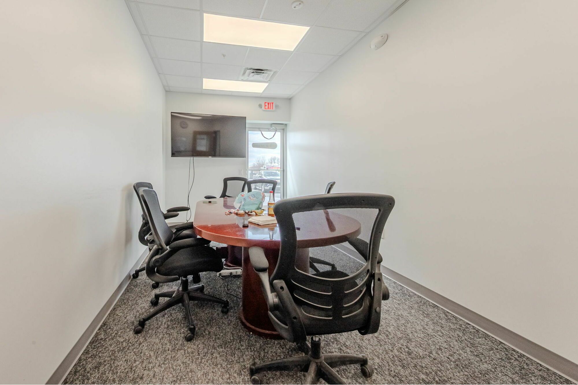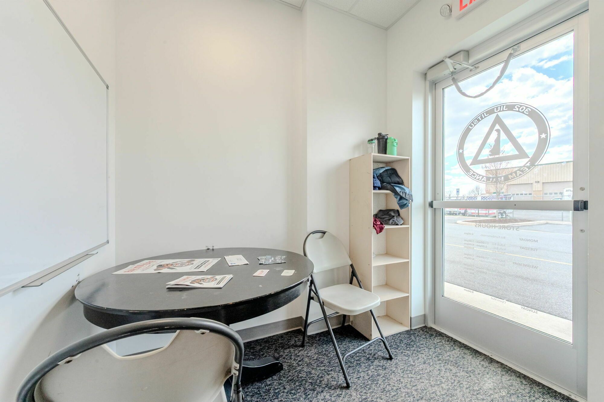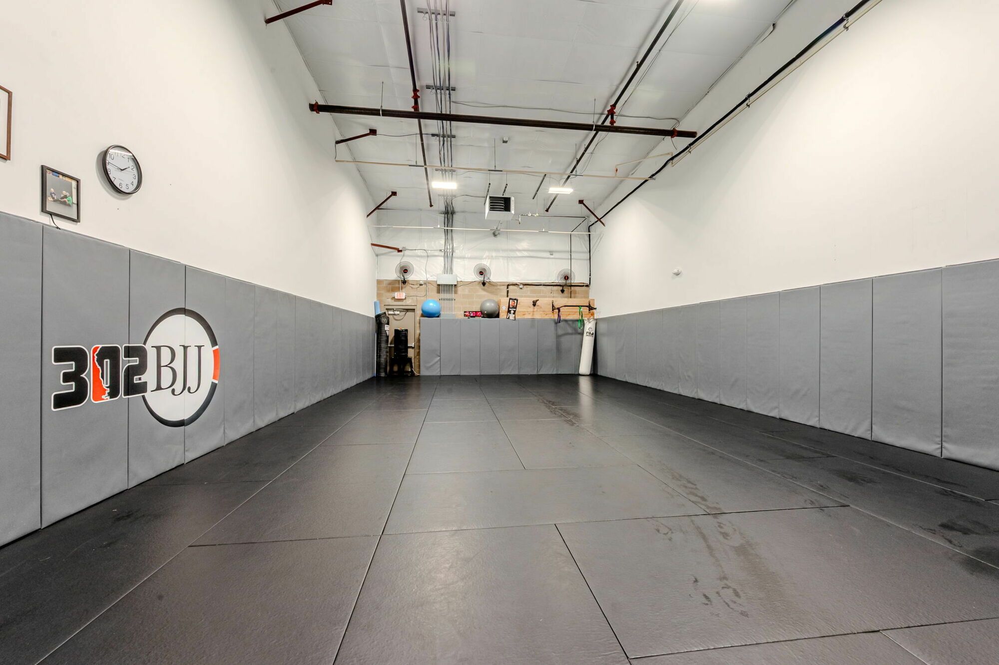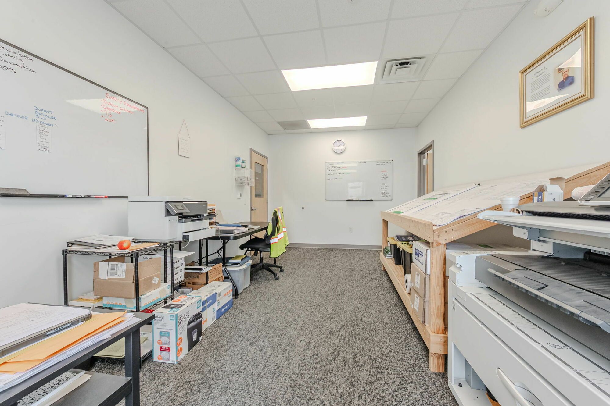 Flex space with HVAC office, restroom, and mop sink.