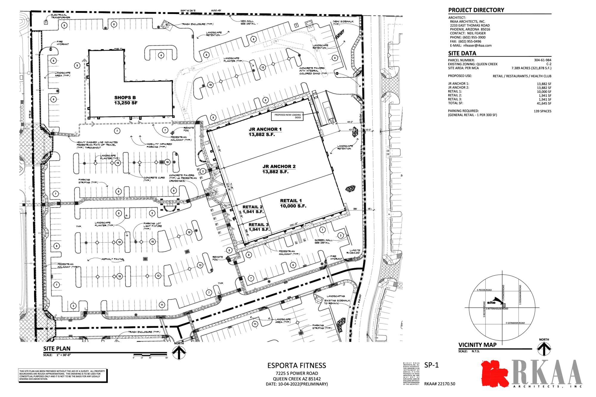 Retail space in Queen Creek, anchored by Esporta Fitness.