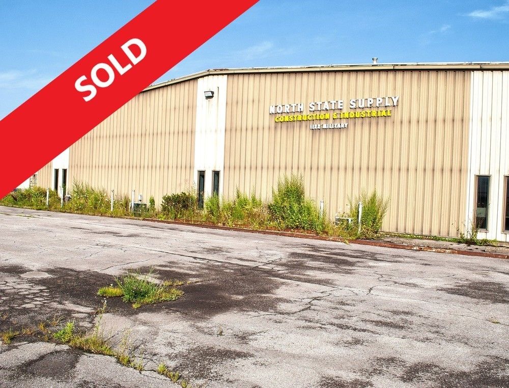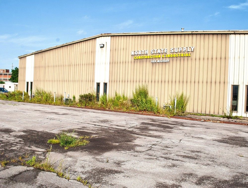 This industrial warehouse, situated at the intersection of Ontario Street and Military Road, offers approximately 25,000 square feet of space. The building includes around 2,000 square feet of office area, along with a mezzanine level equipped with shelving for additional storage. The property features 3-phase power with 200 amp service. Interior columns are spaced 25 feet by 33 feet apart. The insulated metal building is equipped with a sprinkler system and gas air rotation for heating. Loading and access are facilitated by one 14-foot overhead door and two truck docks. The building provides ceiling heights ranging from 16 feet up to 20 feet clear. A newer roof has been installed. The property, constructed in 1978, occupies approximately 1.75 acres and includes a paved and fenced parking lot. The location on Ontario Street, south of the New York Thruway I-290 and east of I-190, provides convenient access to various destinations. It is located within close proximity to Downtown Buffalo, Niagara Falls, and the Canadian border, and within 10 minutes to Niagara Falls Fashion Outlet Mall, Niagara International Airport, Buffalo Zoo, Key Bank Center, University At Buffalo, Buffalo State College, & Canisius College.